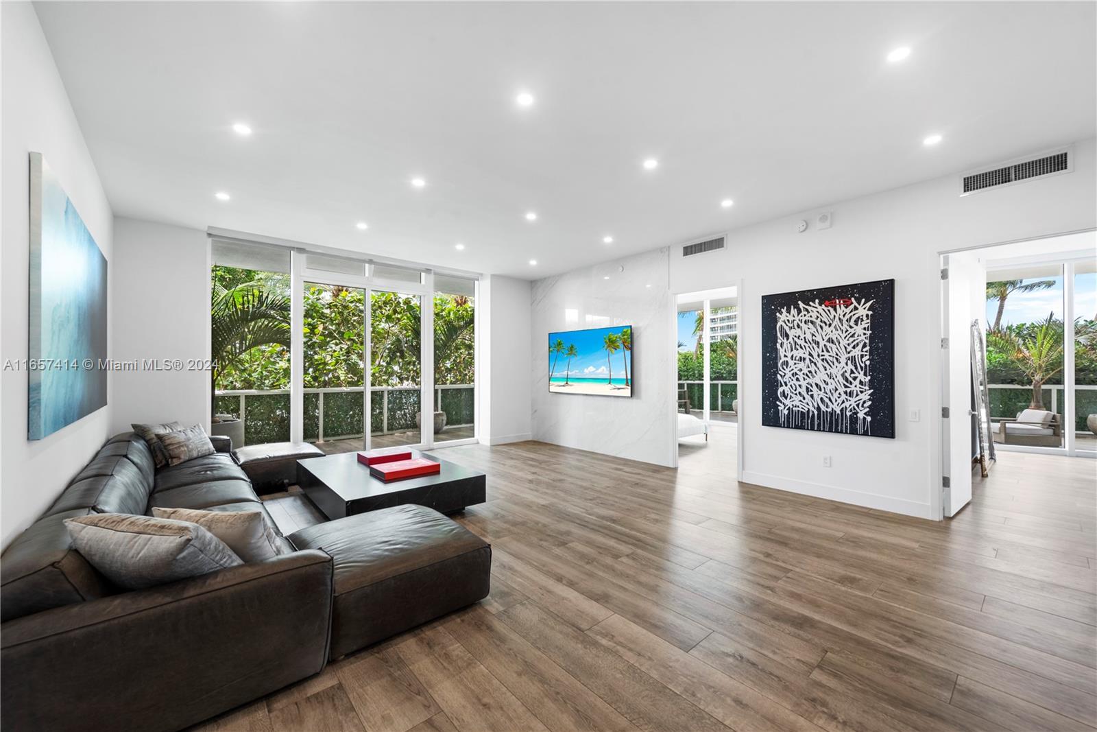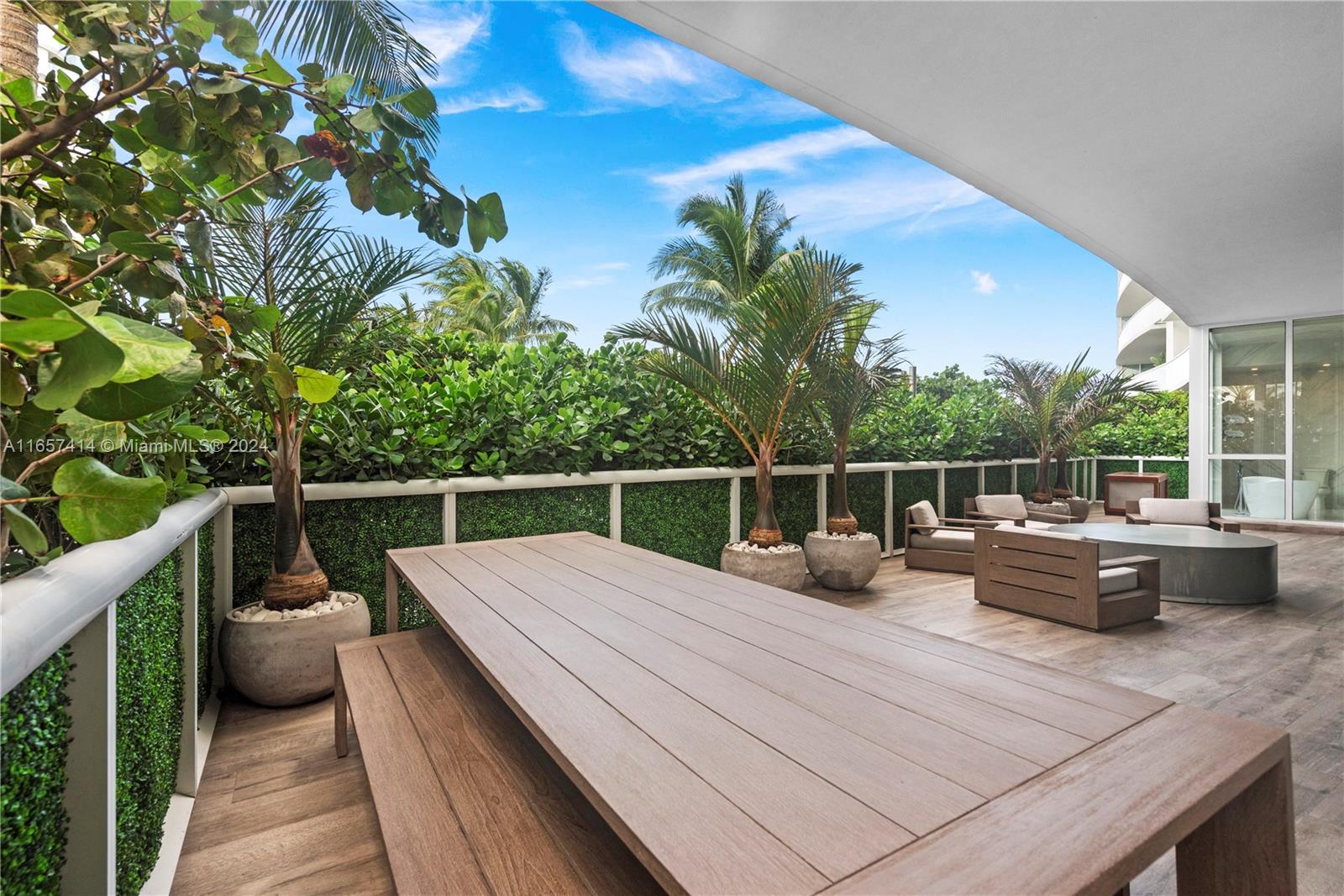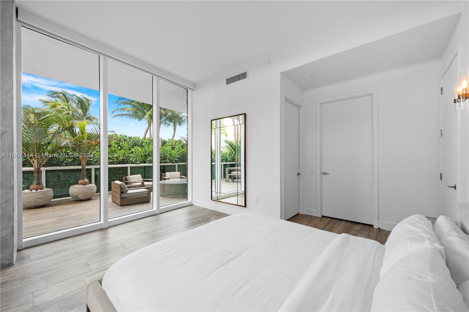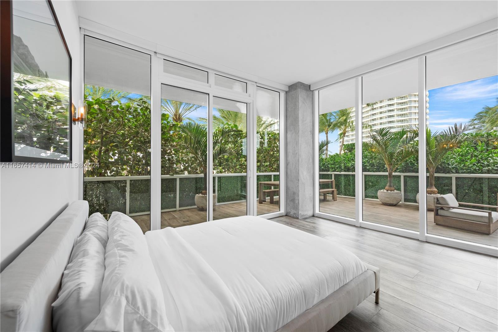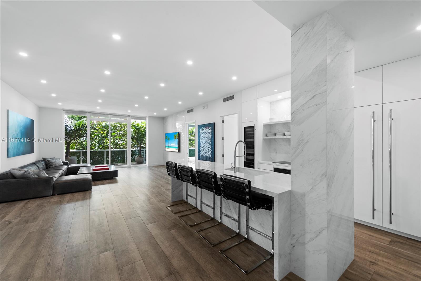 This stunning newly renovated unit was completed this year. Boasting amazing 12-foot ceilings and an additional 1,000 square foot private extended terrace with an outdoor TV area. Custom cabinetry, stonework, and closets elevate the elegant design. Situated on the 6th floor, it offers easy access to all the incredible updated amenities of the Icon. Key features include a 60" double-wide fridge/freezer, a 102-bottle Miele wine cooler, full-size laundry, Emtek hardware, and porcelain flooring throughout. Both full bathrooms are equipped with dual shower heads and individual temperature controls. The guest bath is equally as impressive. Equipped with remote-controlled blackout shades, a new powerful 7-ton AC, and a luxurious 71-inch freestanding tub. A true must see in person.