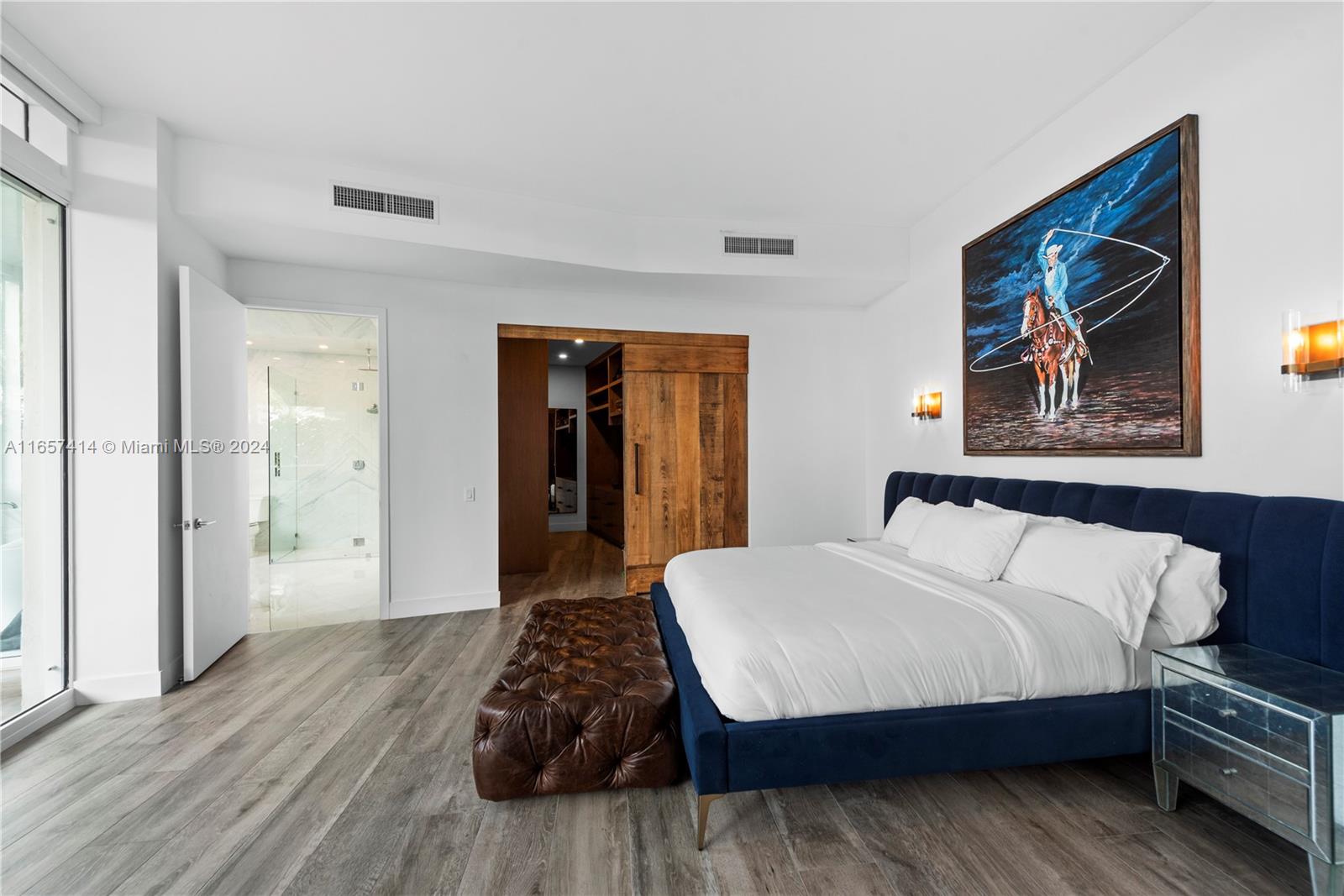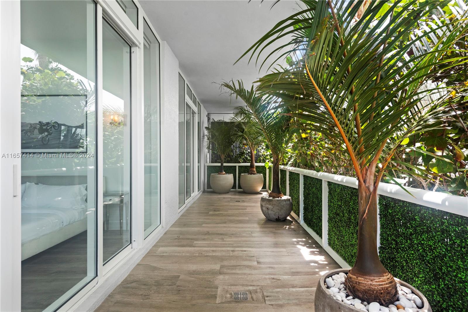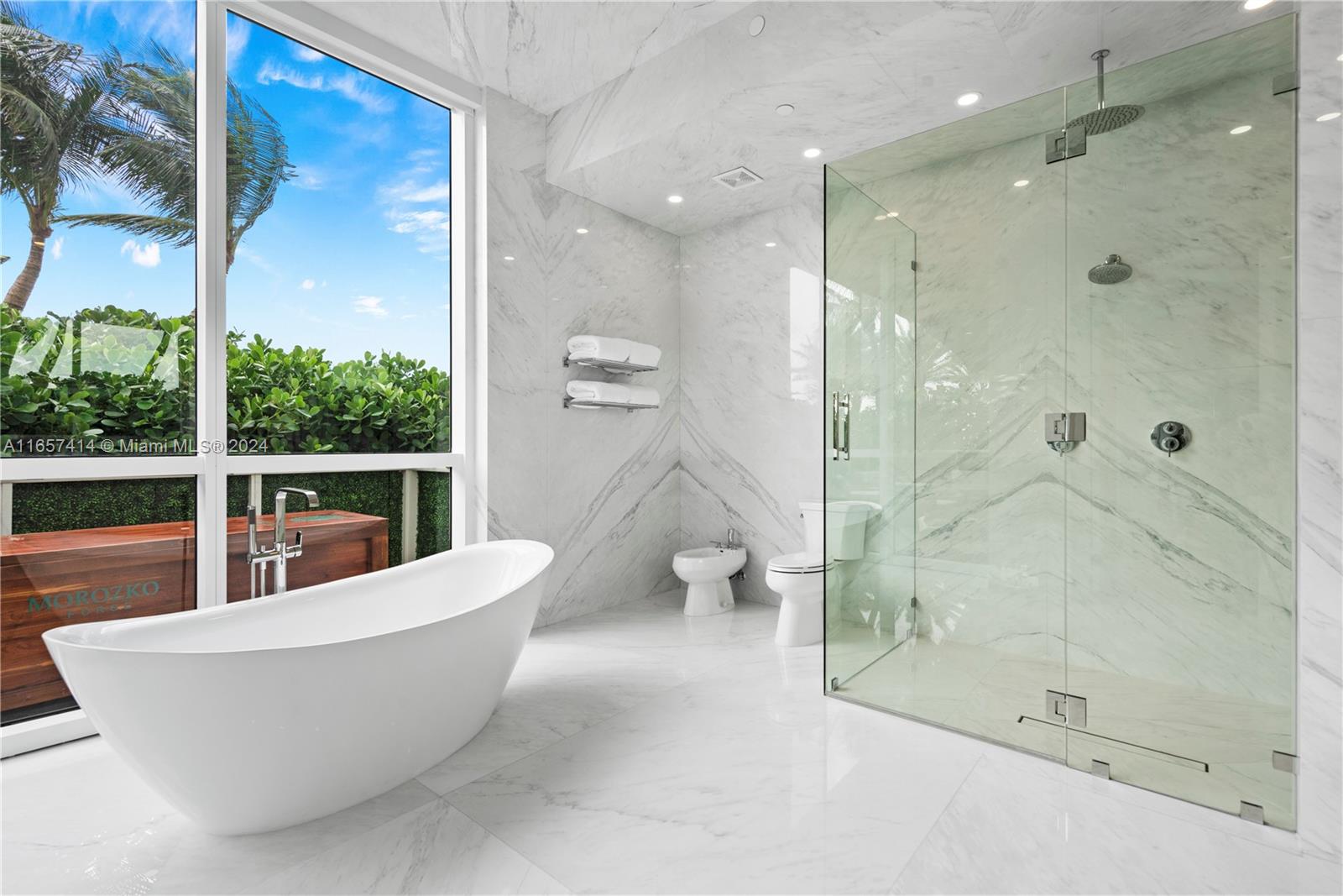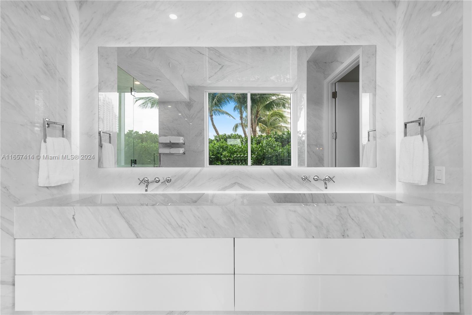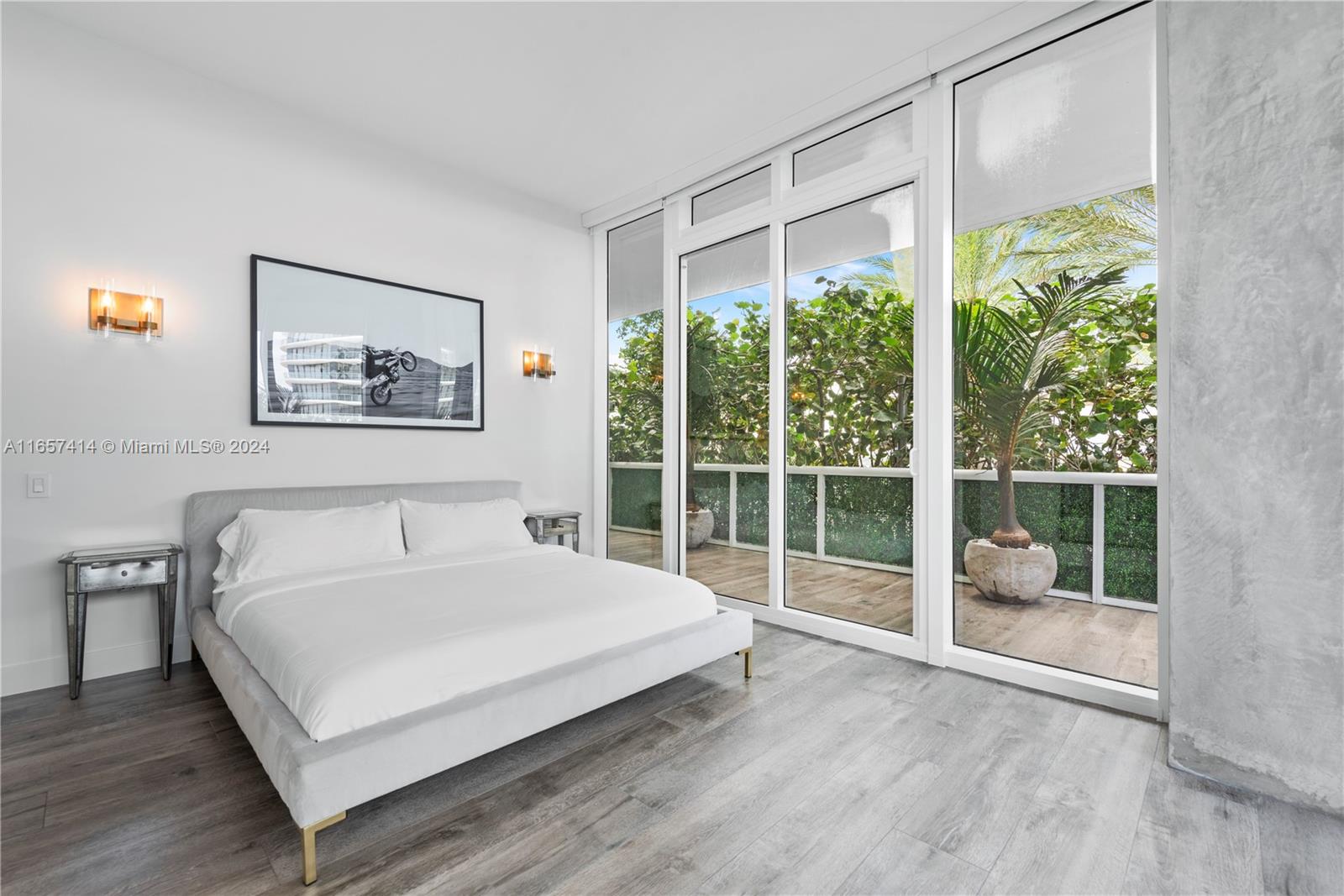This stunning newly renovated unit was completed this year. Boasting amazing 12-foot ceilings and an additional 1,000 square foot private extended terrace with an outdoor TV area. Custom cabinetry, stonework, and closets elevate the elegant design. Situated on the 6th floor, it offers easy access to all the incredible updated amenities of the Icon. Key features include a 60" double-wide fridge/freezer, a 102-bottle Miele wine cooler, full-size laundry, Emtek hardware, and porcelain flooring throughout. Both full bathrooms are equipped with dual shower heads and individual temperature controls. The guest bath is equally as impressive. Equipped with remote-controlled blackout shades, a new powerful 7-ton AC, and a luxurious 71-inch freestanding tub. A true must see in person.