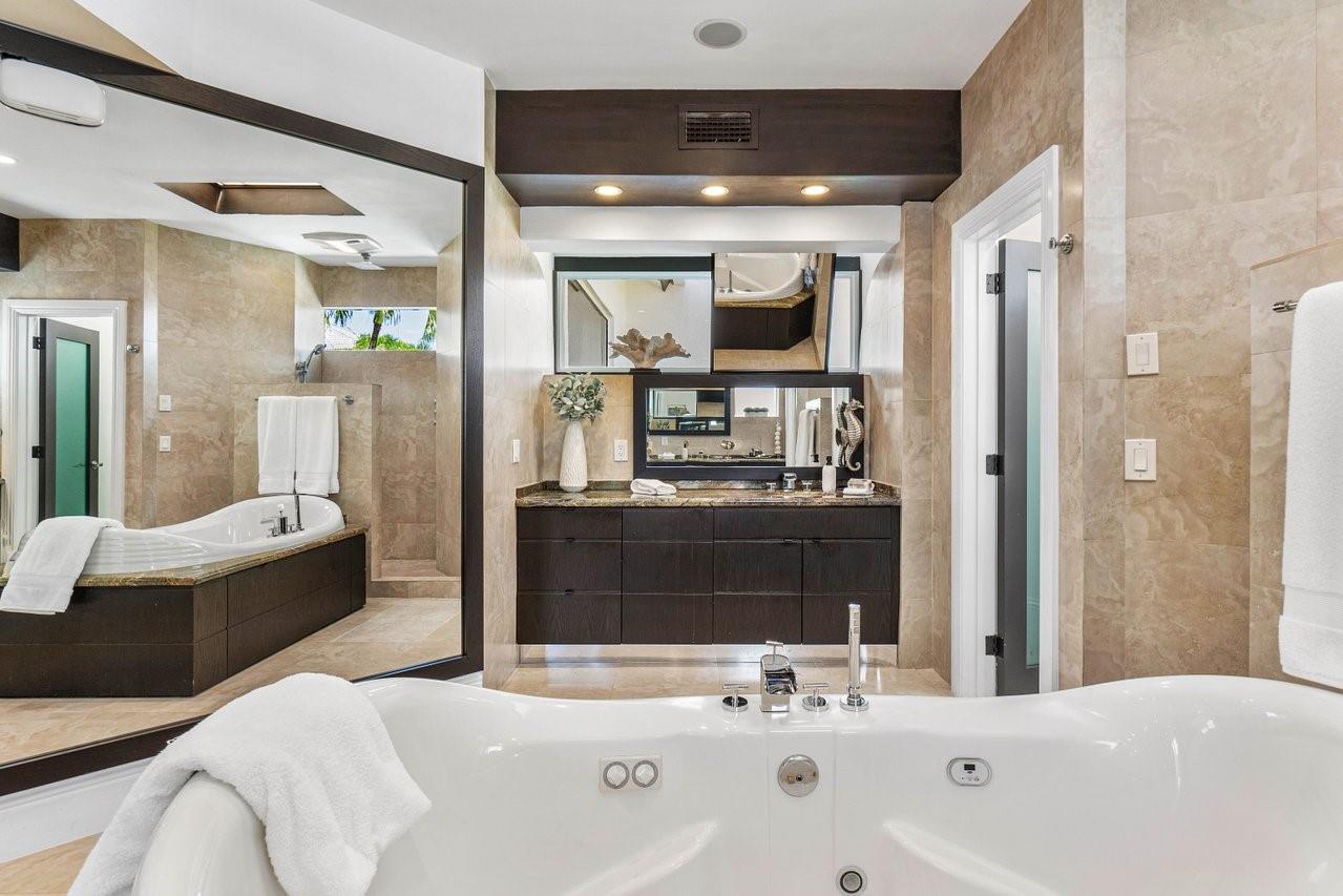 Completely renovated waterfront beauty in the highly sought after Coral Ridge Country Club. This 4 bedroom, 4.5 bathroom home has over 100' of deep water frontage and is only 4 houses from the Intracoastal and just blocks to Coral Ridge Country Club. Enjoy Intracoastal views and ocean breezes from the spacious upper balcony. The exterior upgrades are endless. Spectacular landscaping and landscape lighting, amazing water and fire features, just to name a few, elevate the outdoor living experience. A new roof in 2022, a whole house generator and water filtration system, natural gas, salt water pool conversion, hot tub, and new dock lighting power station add to the endless list of upgrades. This home offers the ultimate South Florida Lifestyle.