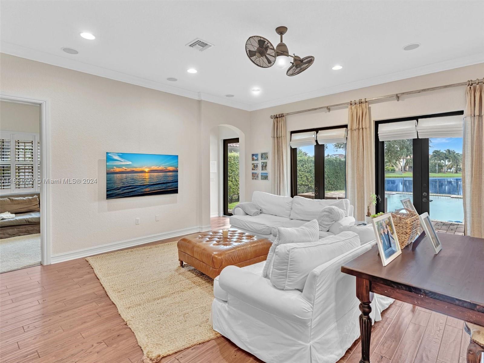 RARELY AVAILABLE CORDOVA MODEL WITH POOL AND WIDE LAKE VIEWS. FEATURES INCLUDE 5 BEDROOMS, 4.5 BATHROOMS * LOFT * 1 BEDROOM AND FULL BATH DOWNSTAIRS * ADDITIONAL BEDROOM / OFFICE / PLAYROOM DOWNSTAIRS * WOOD FLOORING 1ST FLOOR, STAIRS AND LOFT AREA * ALL IMPACT GLASS WINDOWS & DOORS * LARGE OPEN KITCHEN W/REAL WOOD CABINETS, STAINLESS APPLIANCES AND HUGE CENTER ISLAND * LARGE BACKYARD W/CUSTOM POOL & BUILT-IN JACUZZI * LOCATED ON THE QUIETEST STREET IN THE NEIGHBORHOOD. LOW HOA FEE INCLUDES XFINITY CABLE AND INTERNET, ADT ALARM SYSTEM, 24-HOUR SECURITY GUARD, PLAYGROUND AND MORE. A+ COOPER CITY SCHOOL DISTRICT. LOCATED ACROSS THE STREET FROM THE POSNACK SCHOOL AND JCC * MINUTES TO ALL MAJOR HIGHWAYS AND BEACH. HURRY!!