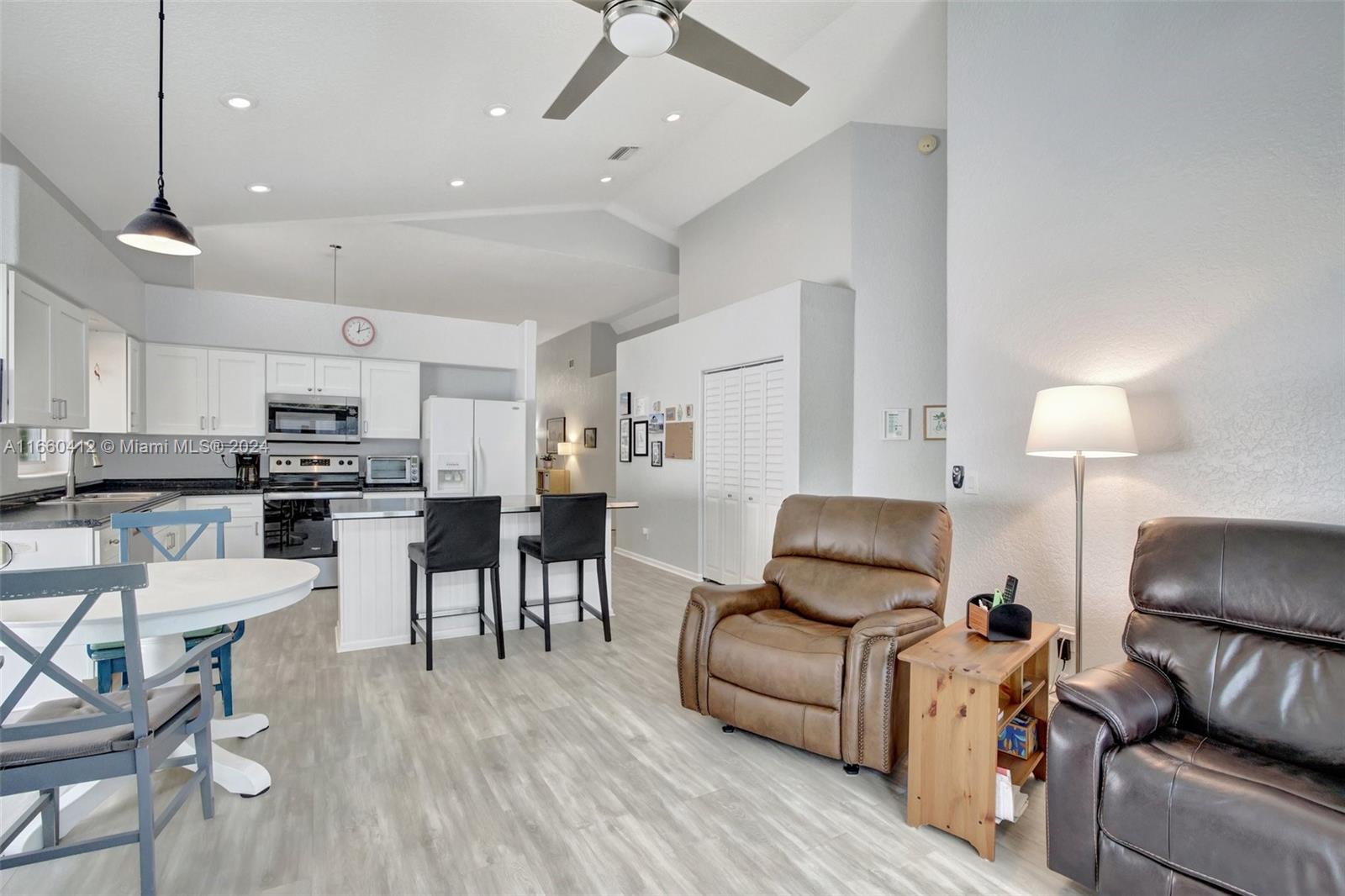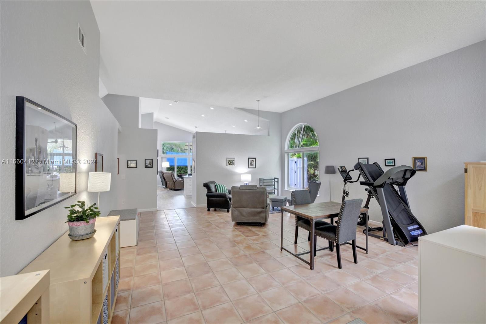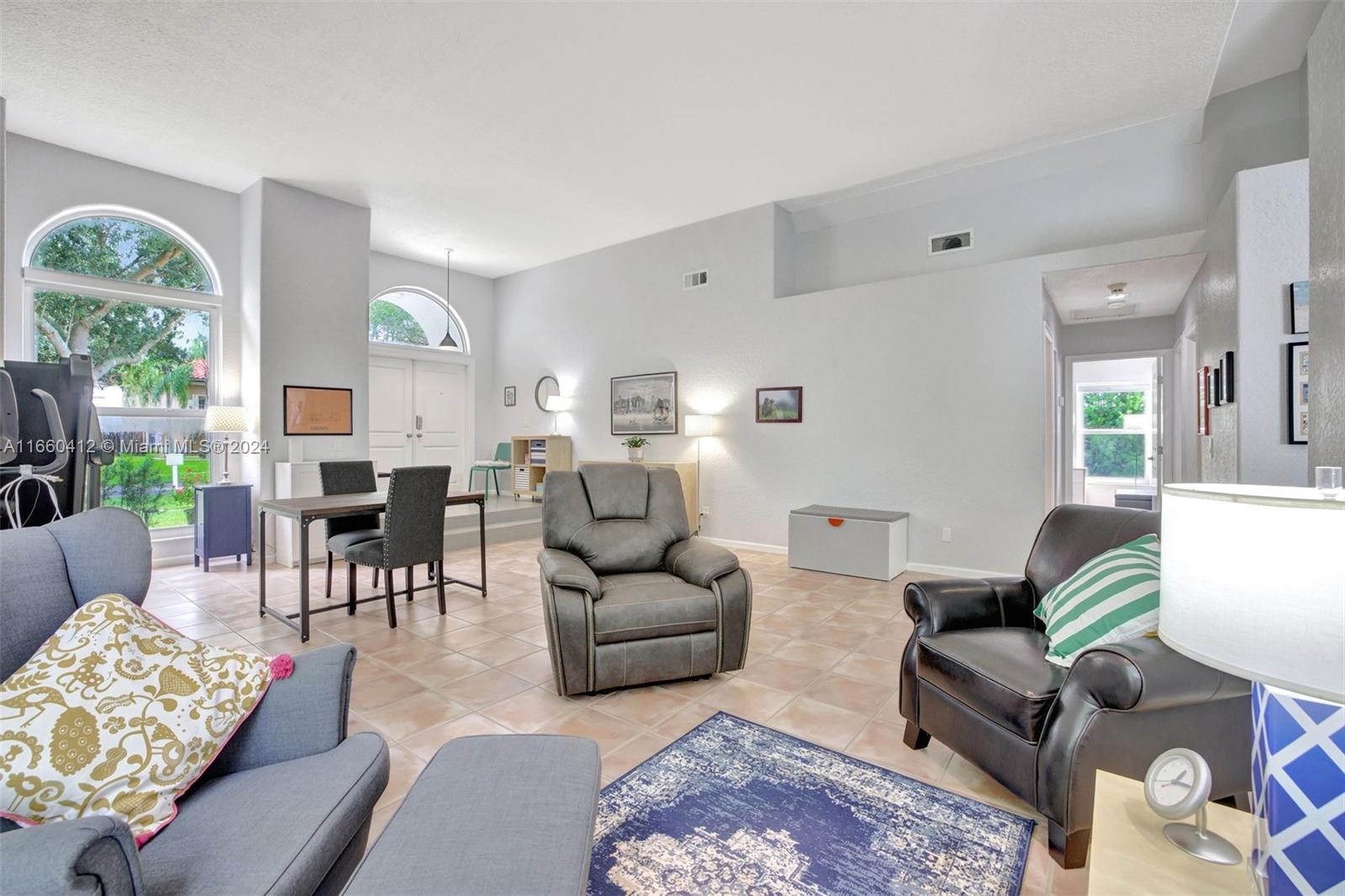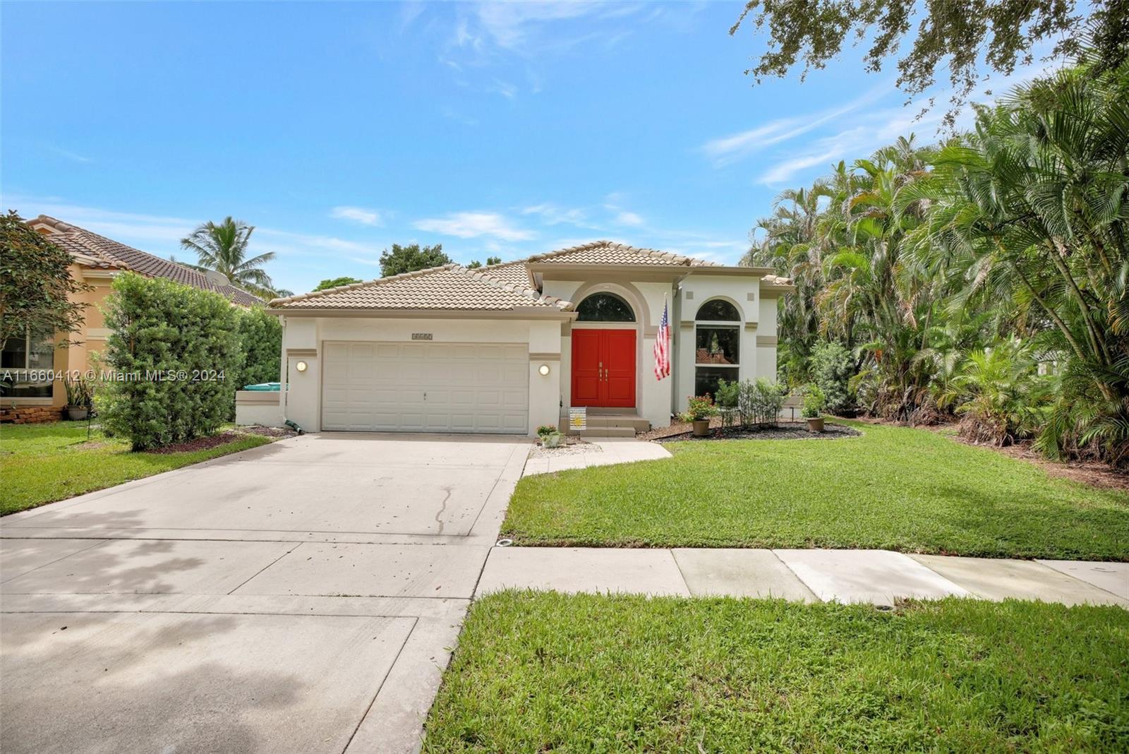 Long time owner has decided to sell their lovely, well maintained, one story Baron model w/2 car garage. Located in desirable Embassy Lakes, this large corner lot has no neighbor on the west side of the home (used as a park & green space).Open, flexible floor plan. Kitchen has white wood cabinets w/ soft close drawers, SS Chef Island w/ storage, opens to the bright & spacious family room. Twelve-foot high ceilings in living & dining rooms Vaulted ceilings in many areas. Large master bedroom w/ huge walk in closet. Master bath has a roman tub, shower & double vanity. Inside laundry room. Impact windows & doors. Private, fully fenced yard has covered patio with extended concrete slab & inflatable spa providing exceptional outdoor space. Community has 24hr security & countless amenities.