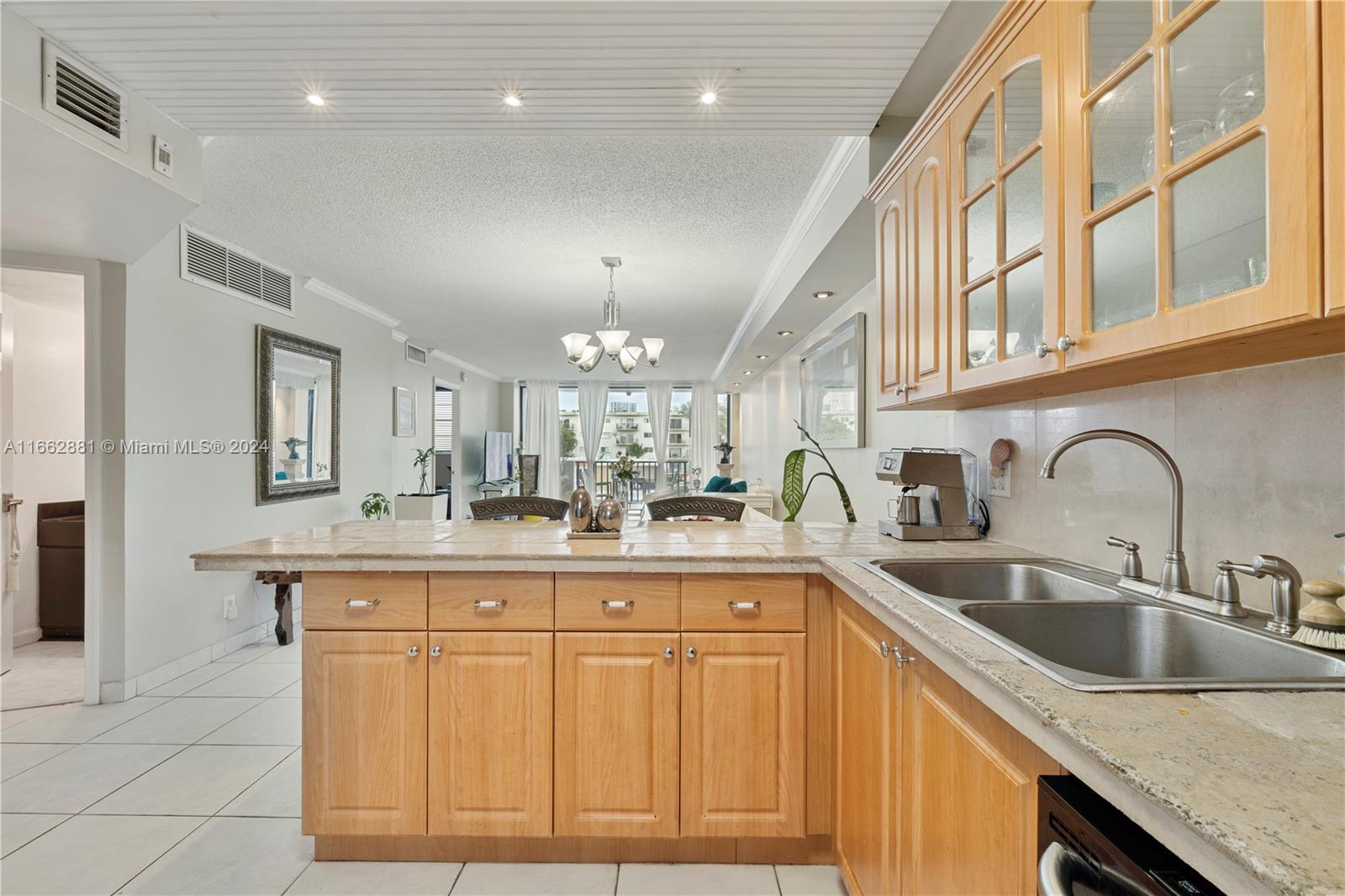 Fabulous Eastern Shores waterfront unit. 24 hour police manned gated security. Spacious open layout overlooks the beautiful views of the Venetian style canal & intracoastal. Updated kitchen w peninsula, natural stone top, marble backsplash, SS appliances, built in pantry. Large primary offers walk in closet, additional double closet. New ensuite bath LED mirror, LED hi hats & LED Bluetooth speaker exhaust fan. Powder room for guests. Freshly painted building with brand new elevators has passed 40 year inspection. Walking distance to supermarket, retails and restaurants. Minutes away from the beach, Aventura Mall and Sunny Isles. Ride your bike to OLETA STATE PARK! Lovely HEATED pool with Club House, sauna, BBQ & library/party room on a residential dead end street. True South FL living!