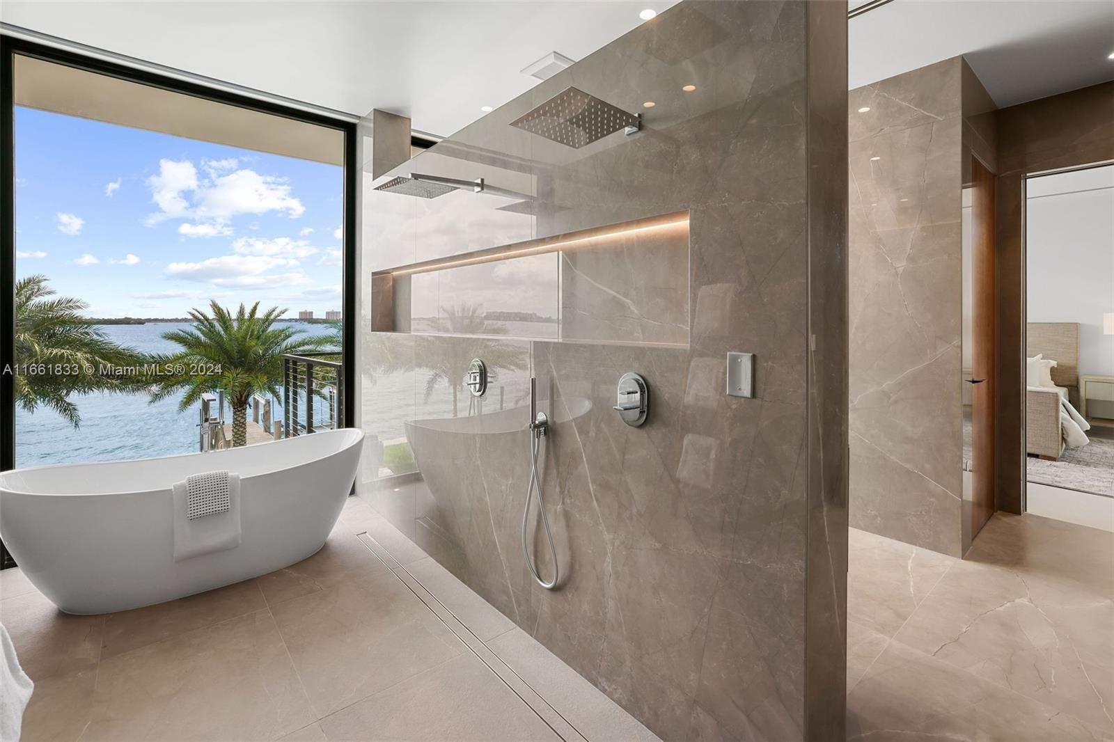 Brand new, custom-built home in Miami Beach's exclusive Normandy Shores neighborhood! This contemporary residence offers 92 feet of waterfront, wide open bay views & direct ocean access. Your new home offers Miele appliances, Lutron Homeworks HQ system that centrally control lighting & shades throughout, a central vacuum system, a Sonos sound system, an air-conditioned garage, which also includes a 220V for your electrical vehicle, an elevator, an expansive wine cooler, outdoor shower, cabana bathroom, heated saltwater pool, and spa. Each bedroom offers a private outdoor patio/balcony. Normandy Shores includes 24/7 guard gate, 18-hole golf course, clubhouse & restaurant, 4 tennis courts, pickle ball, outdoor fitness, basketball, tennis, soccer sports field, party pavilion & a tot lot.