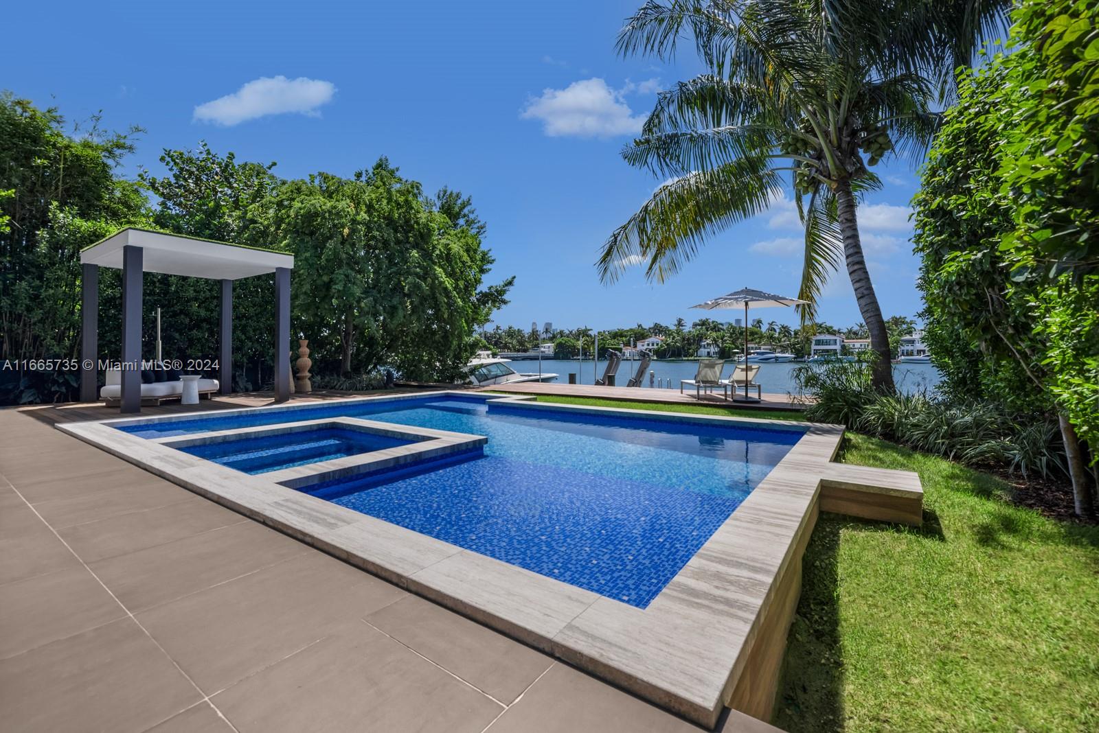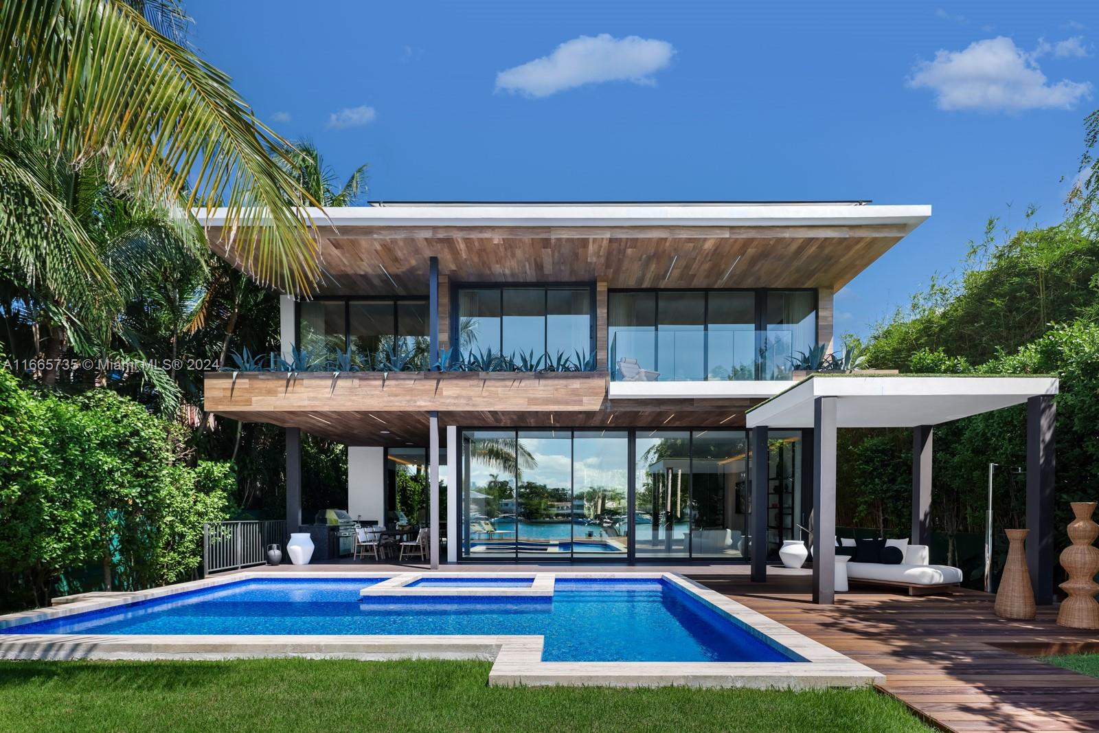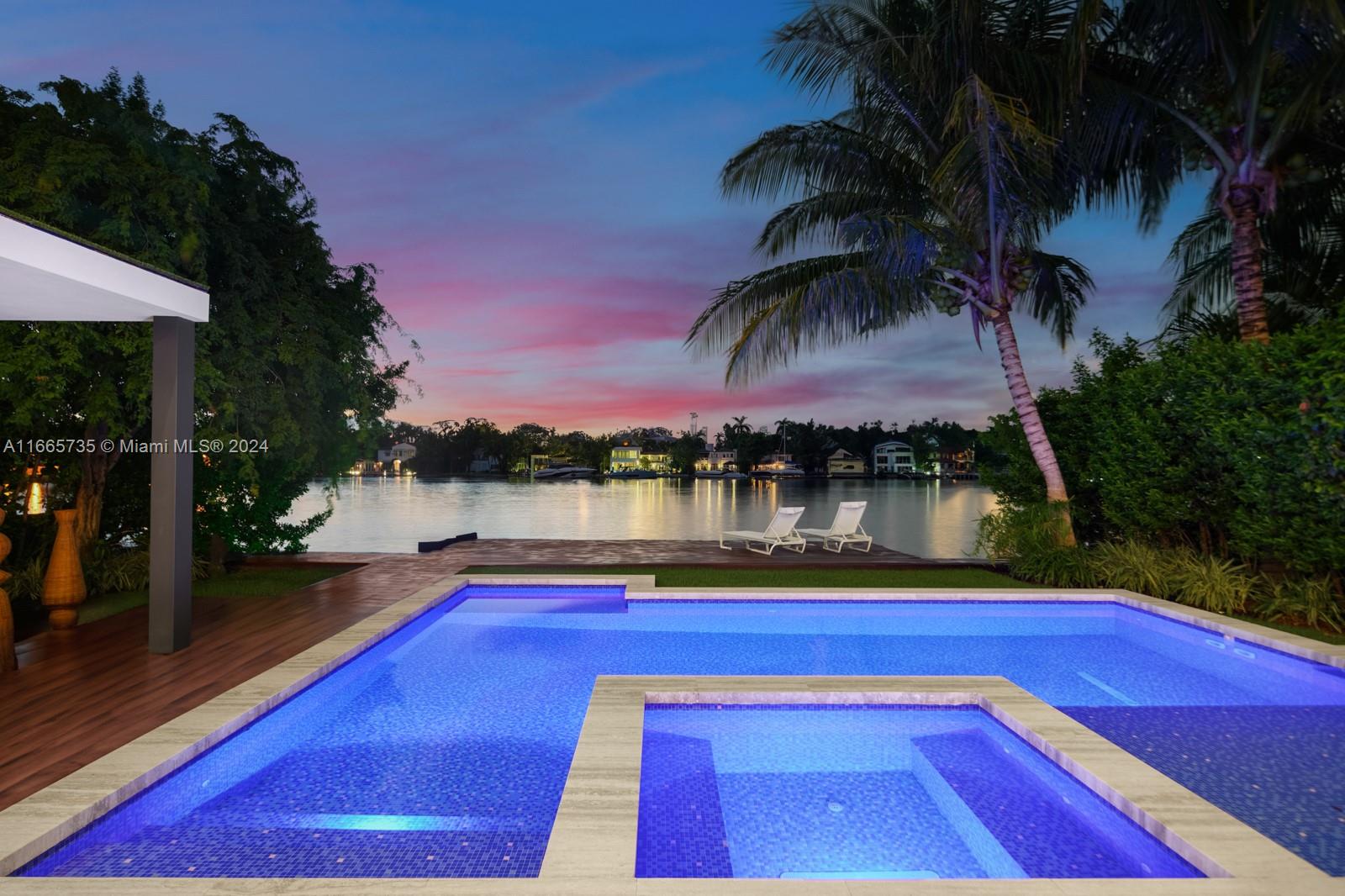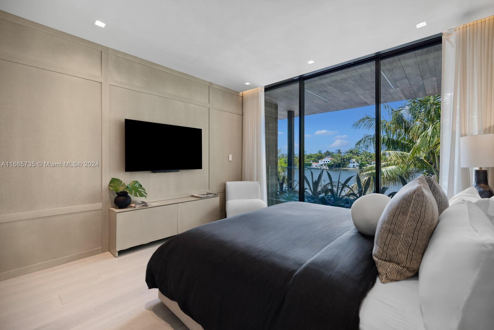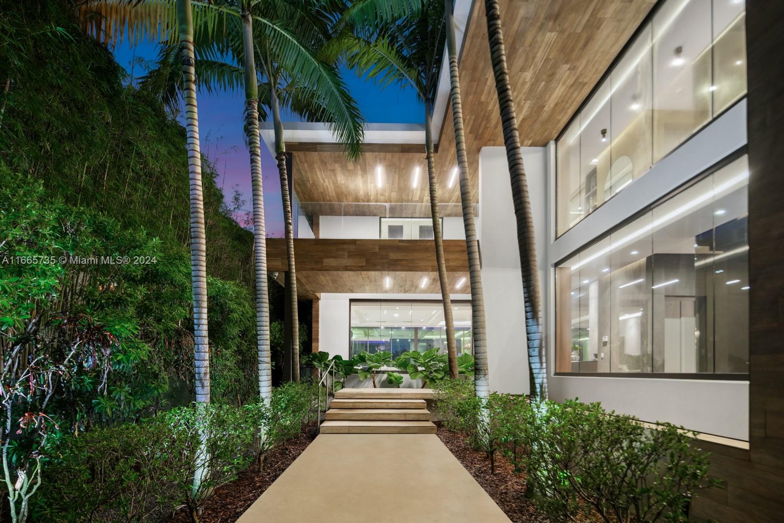 Discover luxury living in this low-impact Tropical Modern estate by renowned architect Max Strang. Located in the prestigious Venetian Islands, this gem blends sophisticated design w/ cutting-edge technology & waterfront living. The open-concept layout features a gourmet kitchen w/ custom Italian walnut cabinetry,Miele appliances, twin Sub-Zero refrigerators, & a wine fridge?ideal for entertaining. With 4 elegant bedrooms and 4.5 bathrooms, the primary suite boasts a spa-like en-suite with water views.Enjoy a Sony home theater, elevator, & Crestron smart home system.This Tesla solar-powered home emphasizes sustainability.Step outside to a tropical paradise with a mosaic-tiled pool, outdoor kitchen, & a private dock with 60' waterfrontage, showcasing breathtaking views of the Miami sunsets.