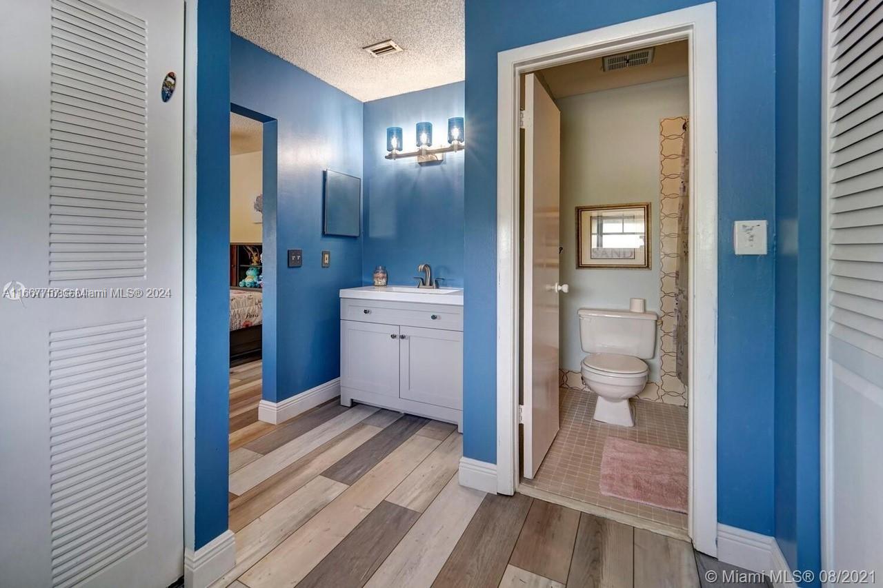 Beautiful updated townhome in the quiet family community of Flamingo Gardens Townhomes. One bedroom and bathroom downstairs and two bedrooms upstairs, each with private ensuite bathrooms. NO CARPET! All major appliances, A/C, washer/dryer are newer. Master Bathroom and kitchen are completely remodeled. Beautiful fenced in back patio-yard with a raised wooden deck. Updated attic insulation makes for SUPER LOW Electric Bill. Updated light fixtures and fans and much more. Shopping Center with Publix and restaurants are within walking distance, A Rated schools, places of worship and conveniently located close to major expressways. More photos are coming soon!