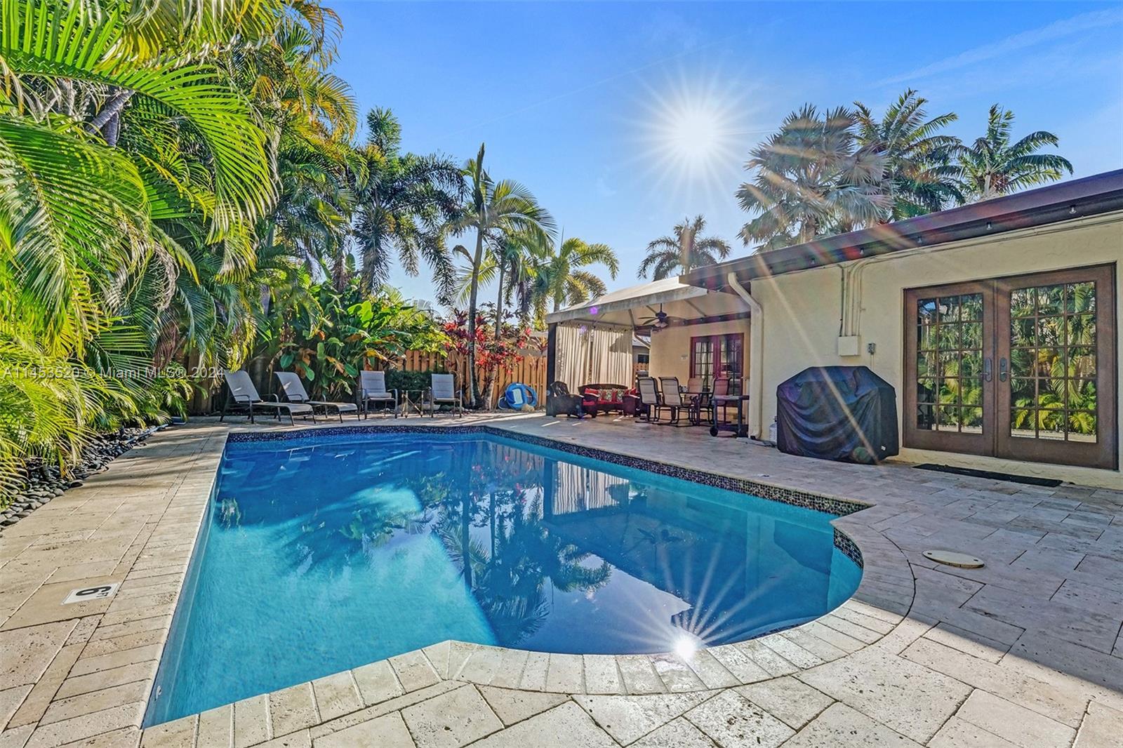 WELCOME TO PARADISE IN THIS SPACIOUS 2 BED, 2 BATH PLUS SPACIOUS STORAGE/BONUS ROOM, WITH A POOL ON A CORNER LOT! THE BACKYARD IS YOUR TROPICAL OASIS FEATURING A LARGE COVERED PATIO WITH SUMMER KITCHEN, PERFECT FOR ENTERTAINING AND IMPRESSIVE RESORT STYLE POOL THAT'S HIGHLIGHTED BY TROPICAL LANDSCAPING. THIS PROFESSIONALLY DESIGNED AND DECORATED HOME OFFERS A GOURMET KITCHEN FEATURING STAINLESS STEEL APPLIANCES, FORMAL DINING, FAMILY ROOM AND 2 SPACIOUS BEDROOMS. ADDITIONAL FEATURES INCLUDE LAUNDRY AREA, BEAUTIFUL WOOD FLOORING, COVERED FRONT PORCH AND CURVED DRIVEWAY. LOCATED JUST MINUTES FROM THE BEACH, DOWNTOWN HOLLYWOOD, AVENTURA MALL, FTL AIRPORT, I95 AND MORE! FURNISHINGS AVAILABLE FOR PURCHASE.
