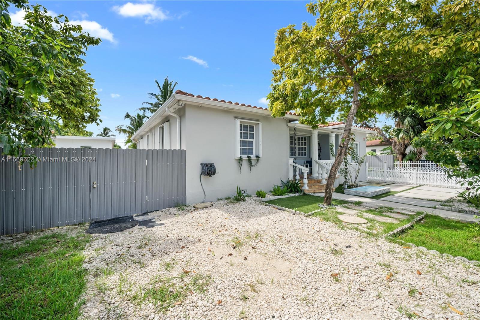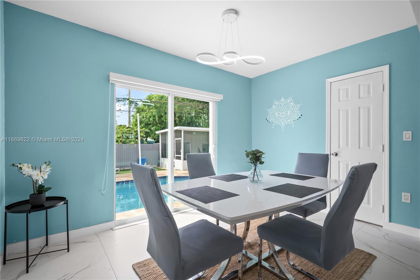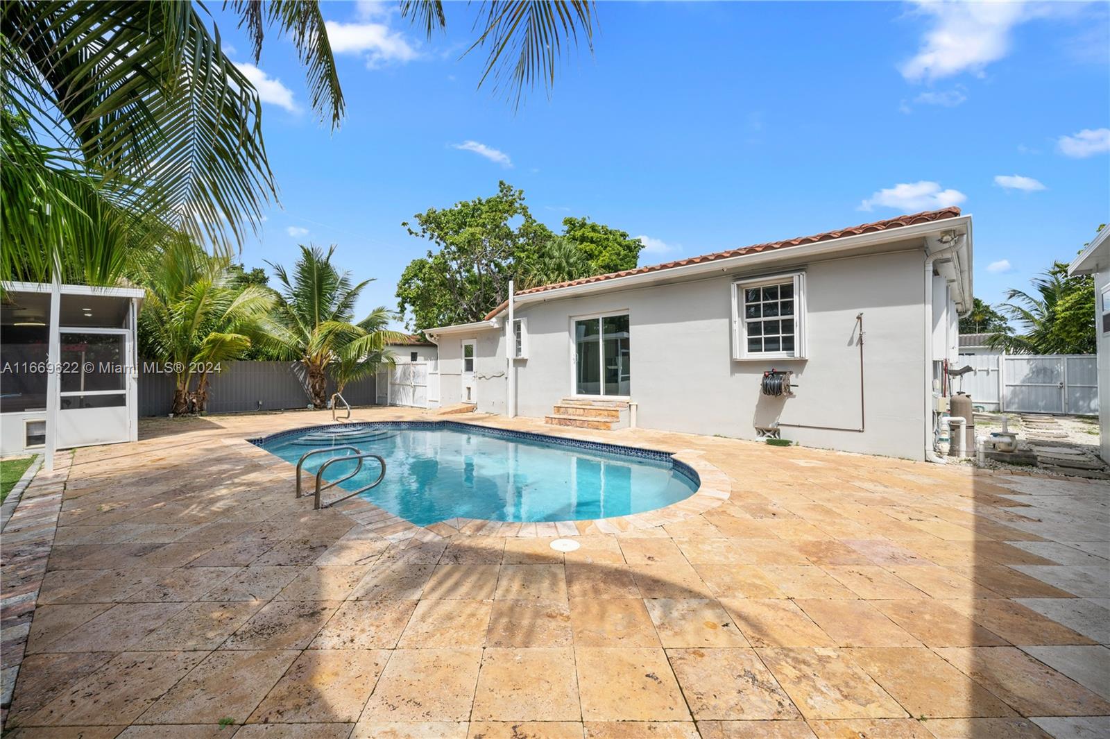 Gorgeous 3 bedrooms 2 baths home that is turn key ready. Marble floors throughout, beautiful kitchen cabinets, quartz countertop, all high quality appliances including Samsung refrigerator with door screen. Impact windows and french doors. Stunning back patio with salt water pool with fairly new pump, grilling area, entertainment area and a space with weight-lifting equipment. Attic is accessible with pull down stairs. The pool deck is paved with travertine pavers and all fenced for maximum privacy. Septic tank drain fill changed in 2020. Paved driveway accommodates 5 vehicles and secured with rolling iron fence. Fruits trees . Property is located 3.6 miles from beach, easily accessible to highways and malls. A must see immaculate home that will not last that is ready for move in.