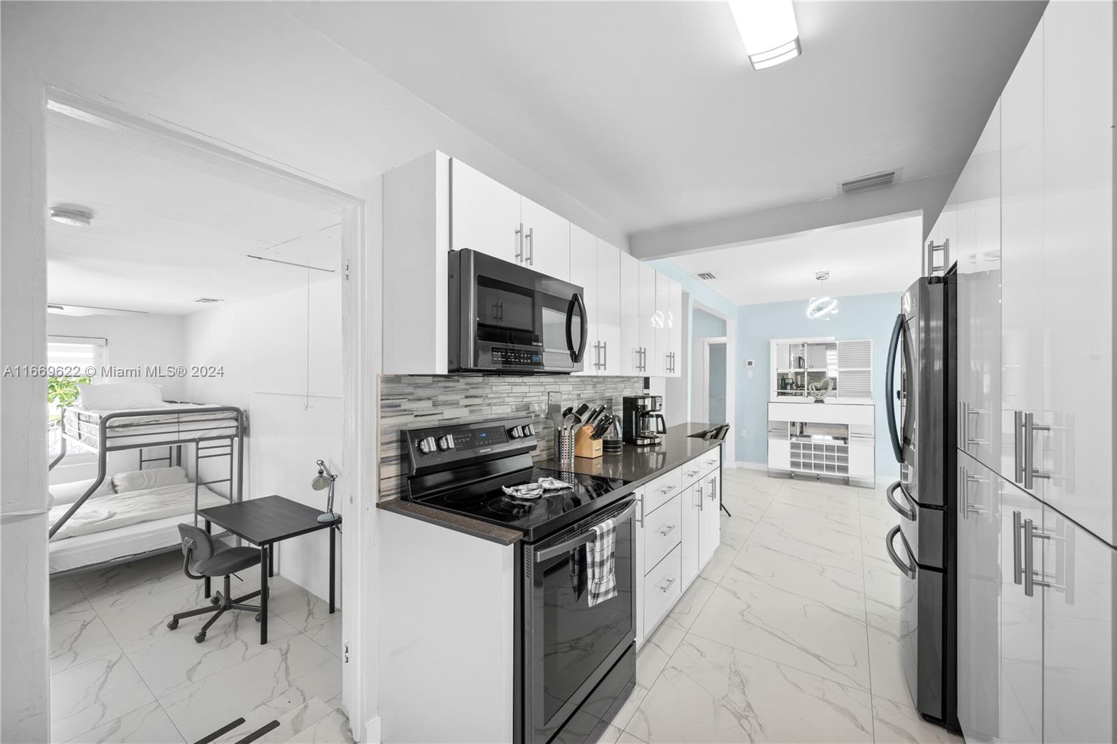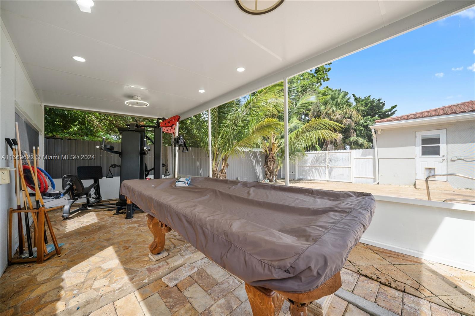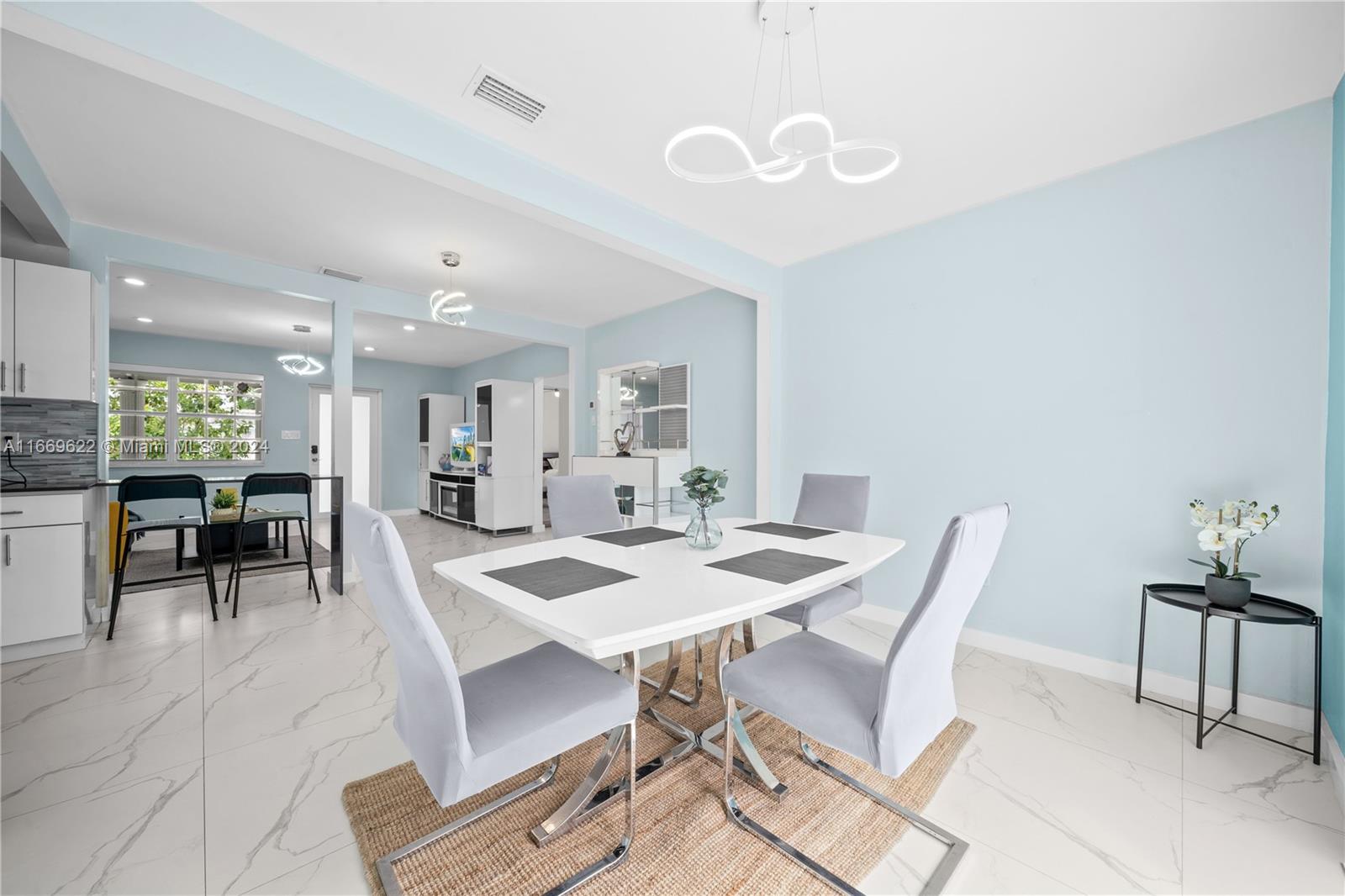 Gorgeous 3 bedrooms 2 baths home that is turn key ready. Marble floors throughout, beautiful kitchen cabinets, quartz countertop, all high quality appliances including Samsung refrigerator with door screen. Impact windows and french doors. Stunning back patio with salt water pool with fairly new pump, grilling area, entertainment area and a space with weight-lifting equipment. Attic is accessible with pull down stairs. The pool deck is paved with travertine pavers and all fenced for maximum privacy. Septic tank drain fill changed in 2020. Paved driveway accommodates 5 vehicles and secured with rolling iron fence. Fruits trees . Property is located 3.6 miles from beach, easily accessible to highways and malls. A must see immaculate home that will not last that is ready for move in.