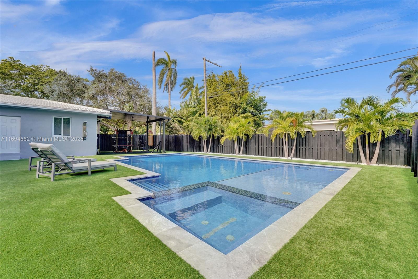 This beautiful 4 bedroom 3 bath home has been completely and tastefully renovated and is ready to welcome you. Filled with natural light flowing through impact windows that bring the outdoors in, this home was designed for entertaining as well as family living. It sits on huge double 15,012 sq/ft, fully fenced, corner lot.The care free back yard boasts a new pool with hot tub, gym and patio that add to the "resort living at home" vibe. The 4 bedrooms and 3 full bathrooms are arranged in a functional 3 way split to maximize the space. The amazing location invites you to explore the vibrant downtown scene filled with great restaurants and quaint shops, or to enjoy the beach just 1 mile away. Stroll to sparkling South Lake 1 block away. The Fort Lauderdale Airport is only 10 minutes away.
