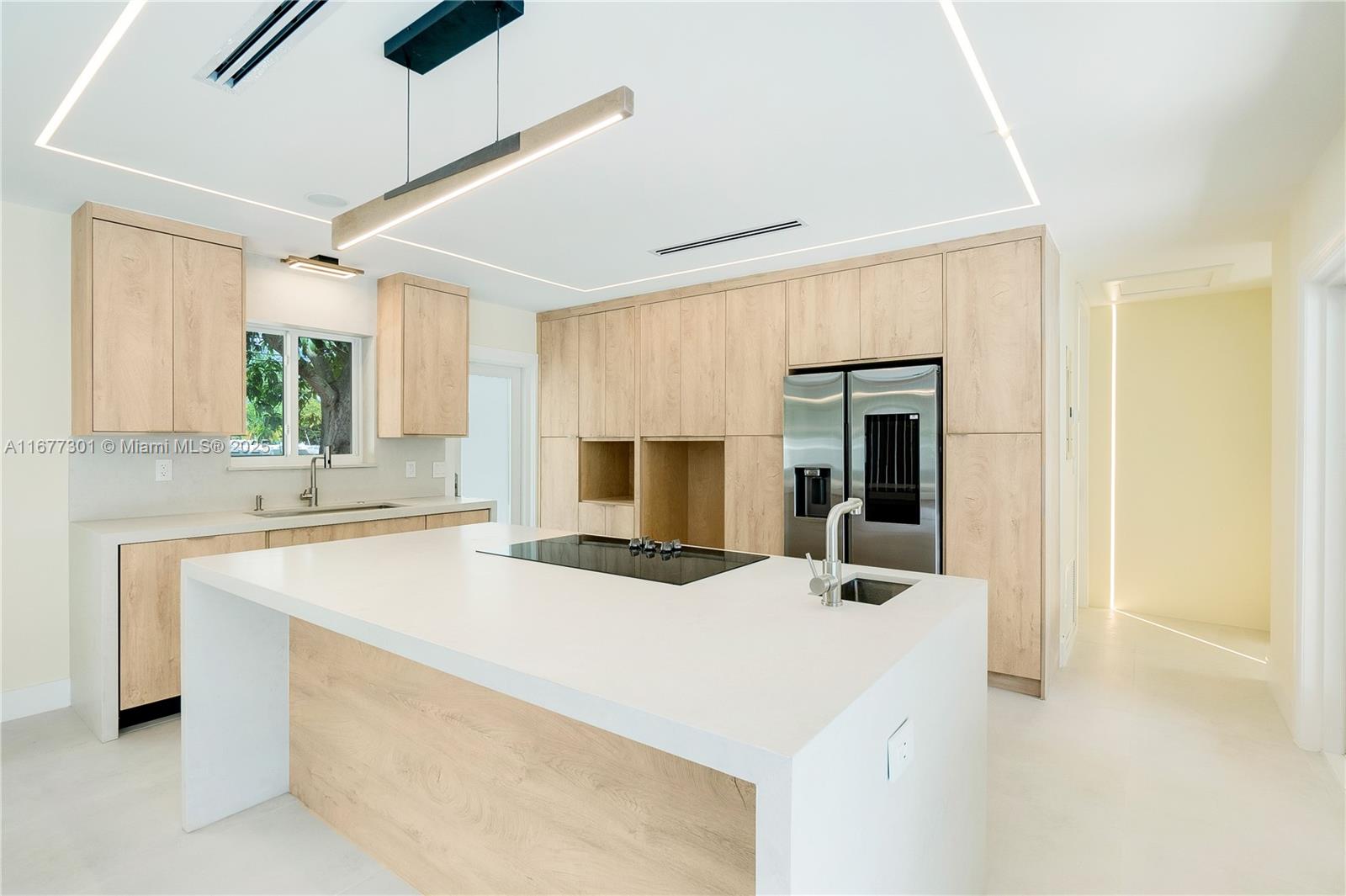 A beautiful modern home in a prime location of Hollywood Hills featuring 4 beds, 3 full baths and half a bath overlooking a beautiful pool and huge beautiful backyard. The pool enclosure glimmering in the heart of your home makes your outdoor experience so much enjoyable with much less maintenance required. This 3,000 soft gorgeous property with one of a kind architectural design also has a one bedroom guest house with private entrance.The house is equipped with hurricane impact doors and windows, custom wood detailing and LED lighting, modern kitchen, top quality appliances, vanities and cabinets. You are a walking distance to great private and public schools, parks, very close to Memorial Hospital, shopping, Hollywood downtown, beach and major highways.