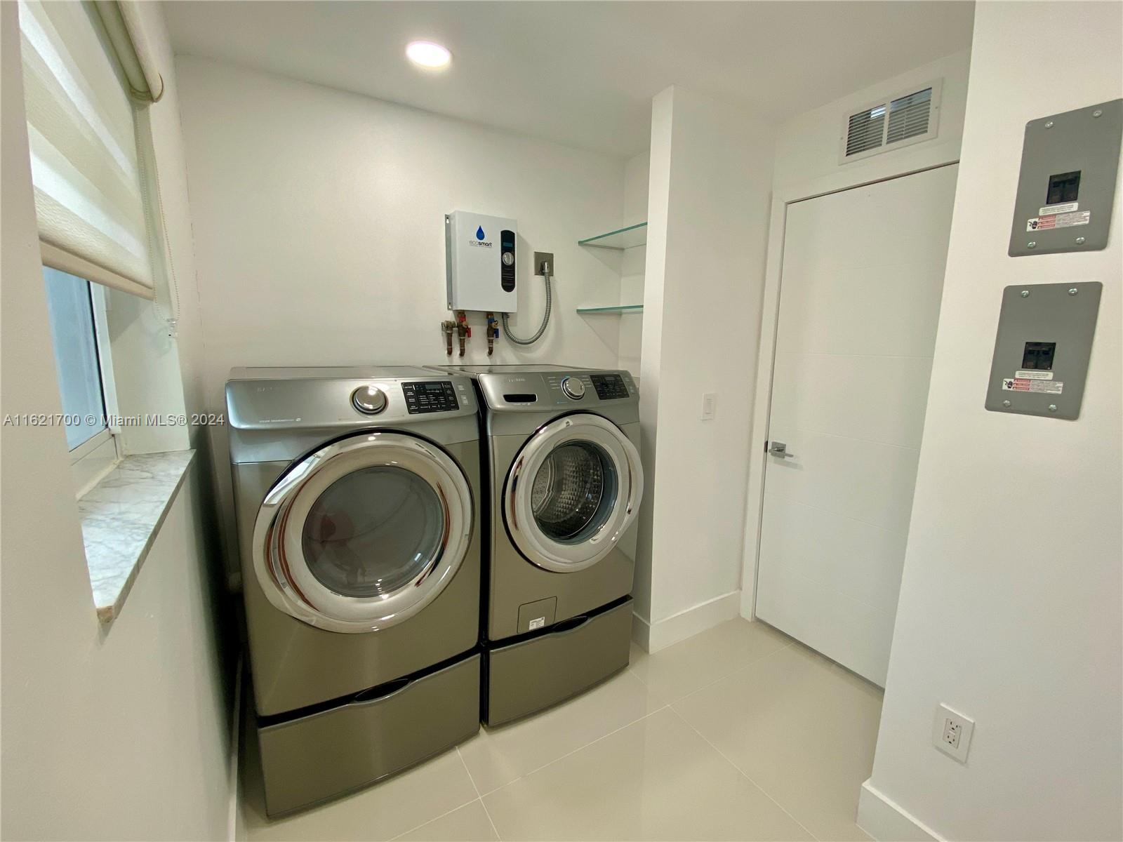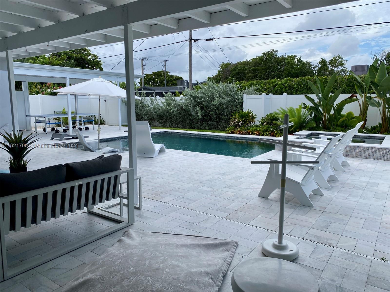 Stunning and spacious 3/2 home in the prestigious Hollywood Lakes area with a spectacular backyard oasis featuring a contemporary pool/spa, covered patio with misting system, impeccable landscaping and more! Fully renovated, with 100% new plumbing system, floors, kitchen, bathrooms, driveway, impact doors and windows -- all done with permits. Laundry room inside and storage room outside. A truly unique home, virtually re-built completely and tastefully with the highest quality finishes. Located minutes from the beach, 2 public golf courses and downtown Hollywood.