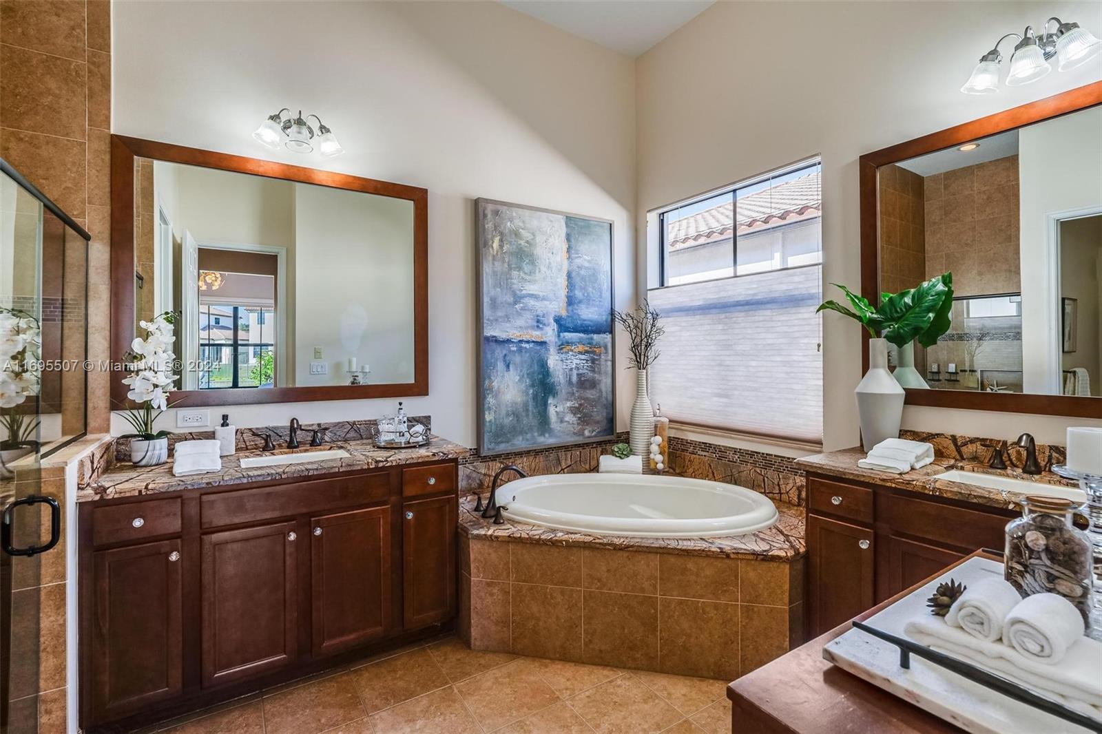 Nestled in the exclusive, 24-hour guard-gated La Costa enclave of the prestigious Monterra community, this exceptional 3000SF lakefront home exudes luxury at every turn. Elegantly appointed with crown molding, personalized built-in closets, and custom shelving, the residence offers unparalleled comfort. The gourmet kitchen is a culinary haven, featuring premium appliances, wine fridges, and a dedicated meal prep island. Outdoors, a heated pool with a removable baby fence invites relaxation in a European-inspired retreat. Additional upgrades include a full-house generator, new AC units, motorized blackout blinds, surround sound, Google cameras, and a Tesla charger. Custom garage cabinetry and advanced home automation complete this extraordinary property. Monterra has unparalleled amenities.