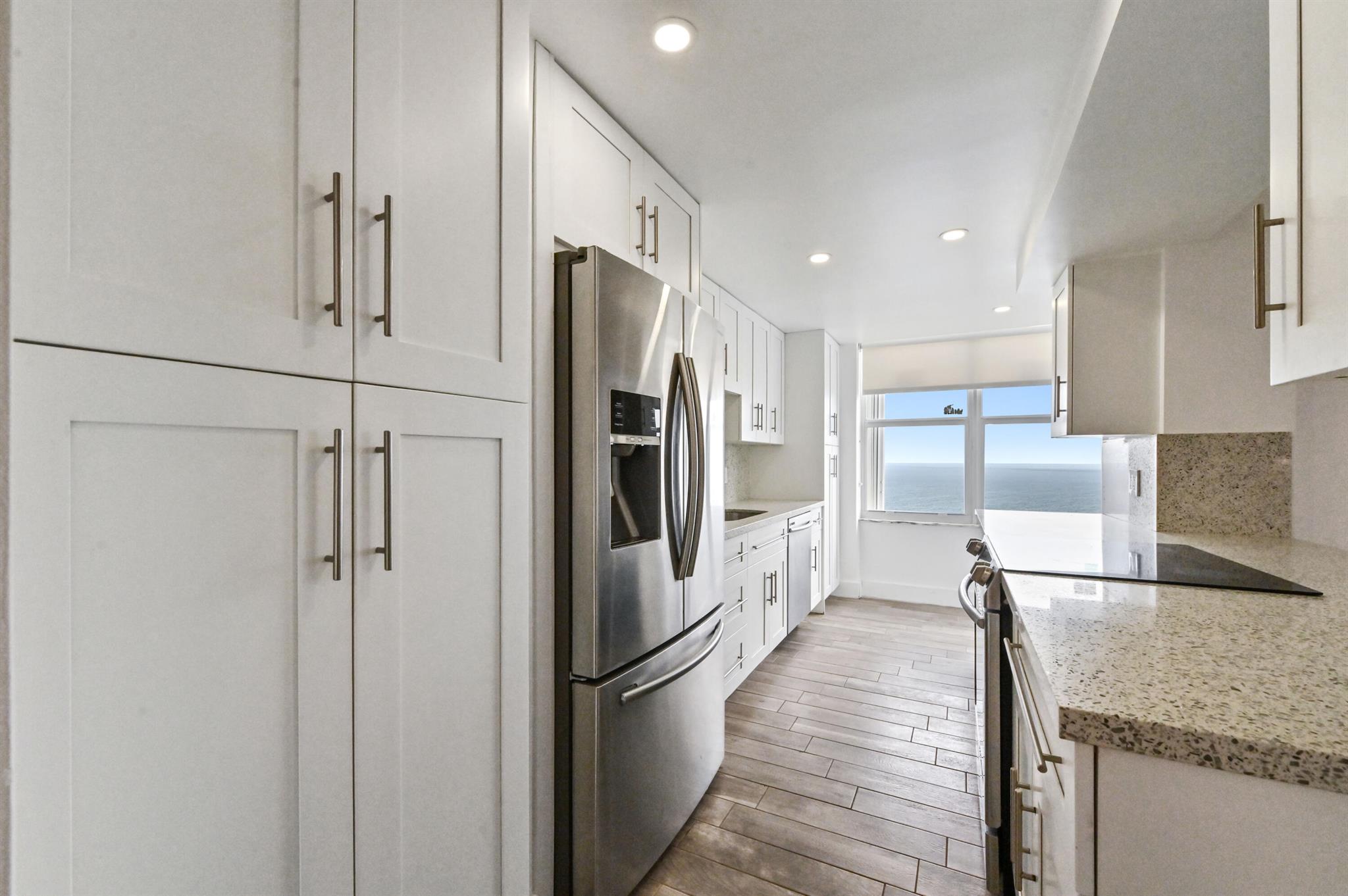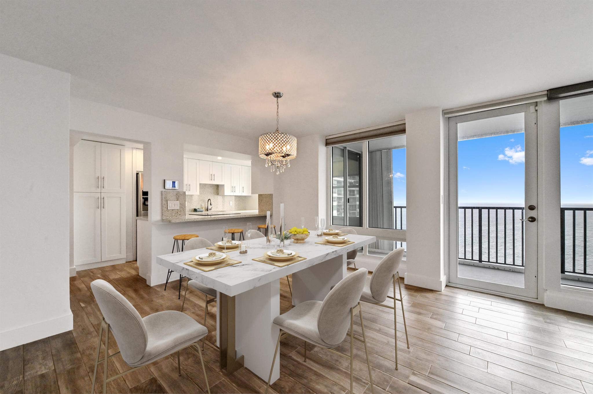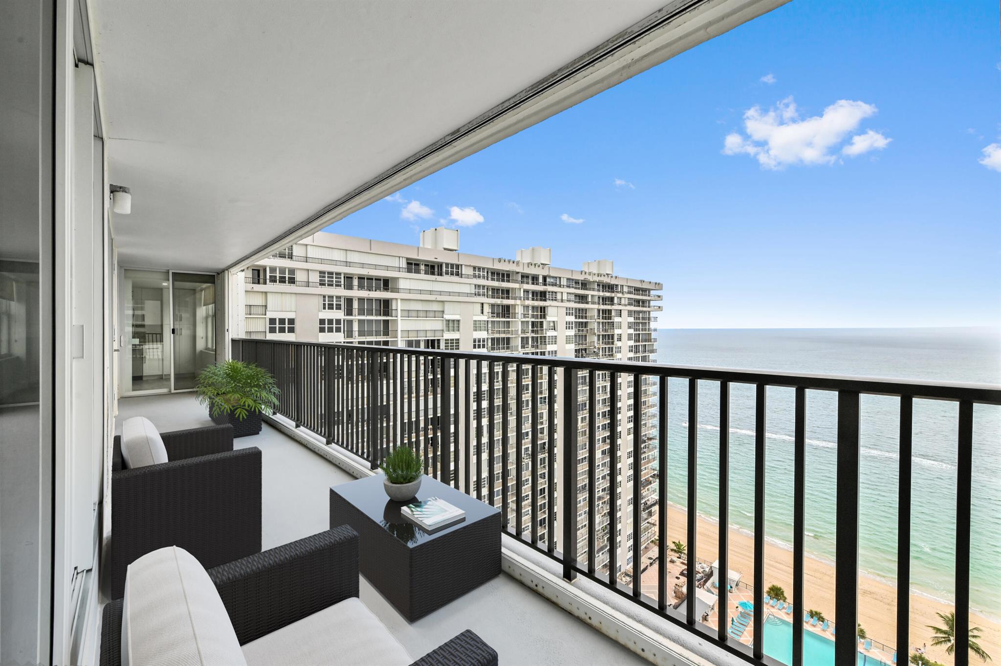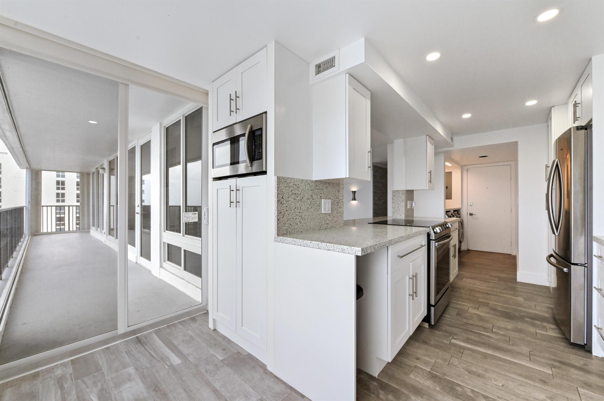 Step into beachfront luxury with this fully updated condo offering custom features and breathtaking views and semi-private elevator. This unique unit boasts 3 bedrooms, 2.5 bathrooms, and a versatile den/sunroom that can serve as a fourth bedroom or home office. Floor-to-ceiling impact windows showcase sweeping oceanfront views from the wraparound balcony, while the other side of the unit offers serene intracoastal vistas. The spacious, open-concept kitchen is perfect for entertaining, with a seamless flow into the living areas. A full washer and dryer are tucked away in the laundry room for added convenience.