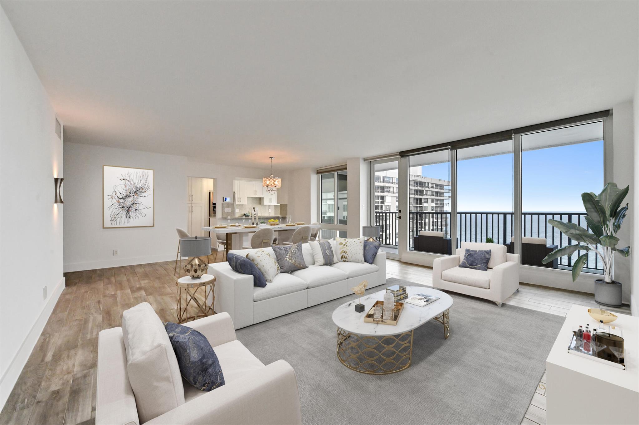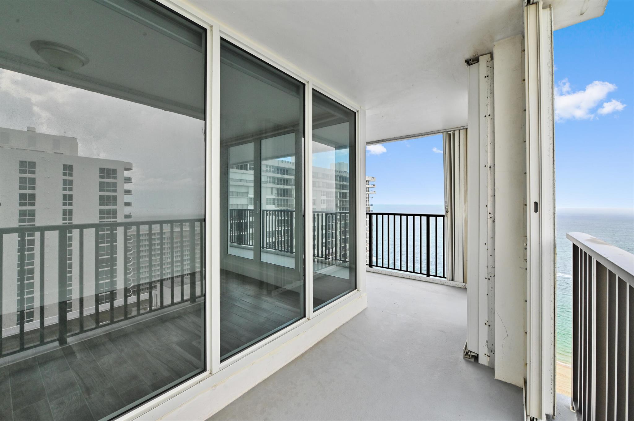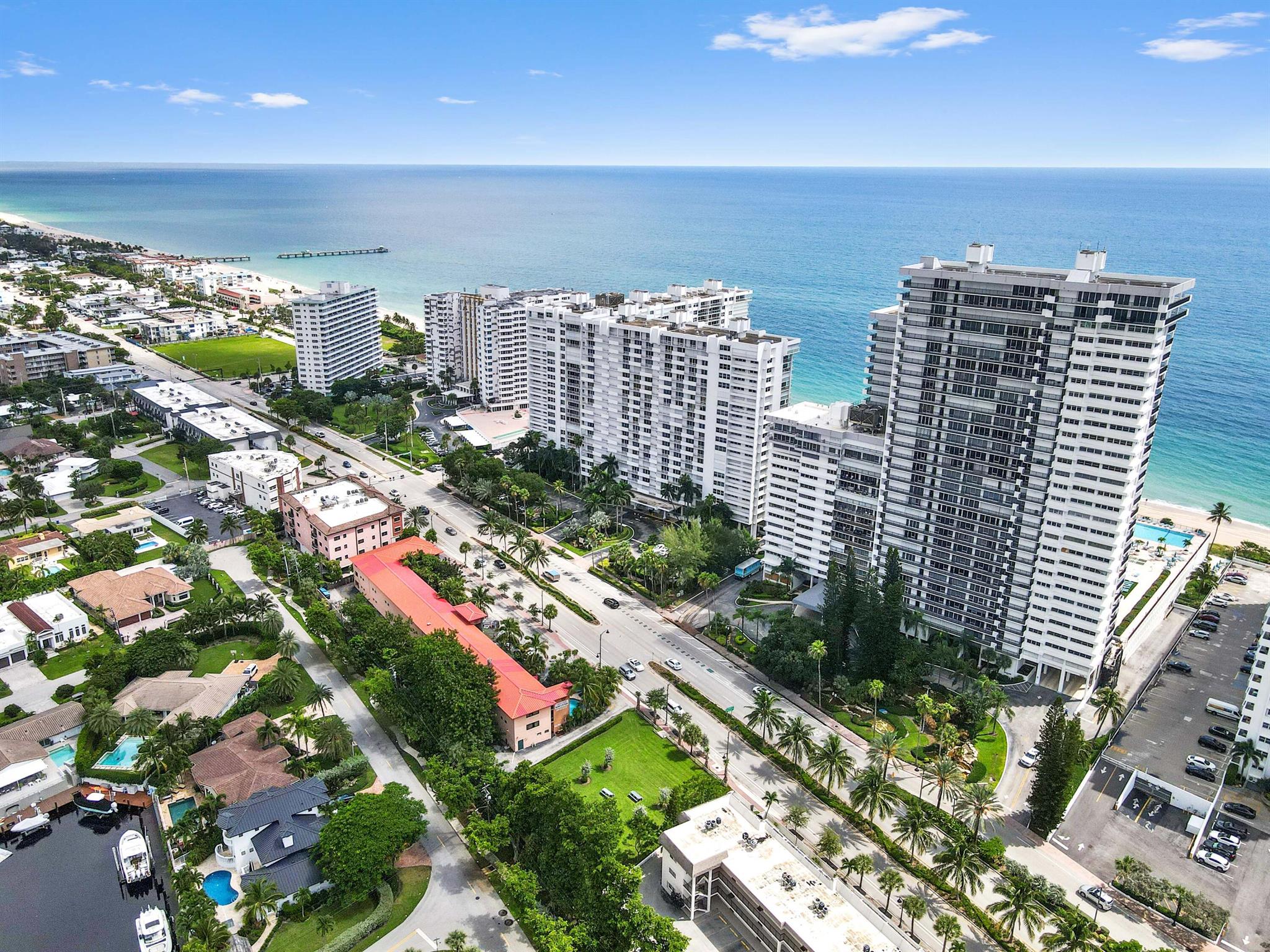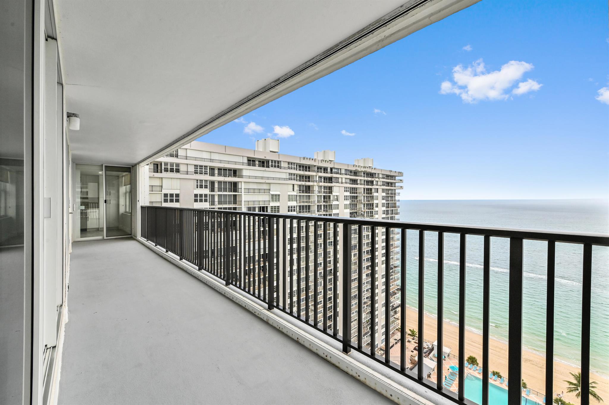 Step into beachfront luxury with this fully updated condo offering custom features and breathtaking views and semi-private elevator. This unique unit boasts 3 bedrooms, 2.5 bathrooms, and a versatile den/sunroom that can serve as a fourth bedroom or home office. Floor-to-ceiling impact windows showcase sweeping oceanfront views from the wraparound balcony, while the other side of the unit offers serene intracoastal vistas. The spacious, open-concept kitchen is perfect for entertaining, with a seamless flow into the living areas. A full washer and dryer are tucked away in the laundry room for added convenience.