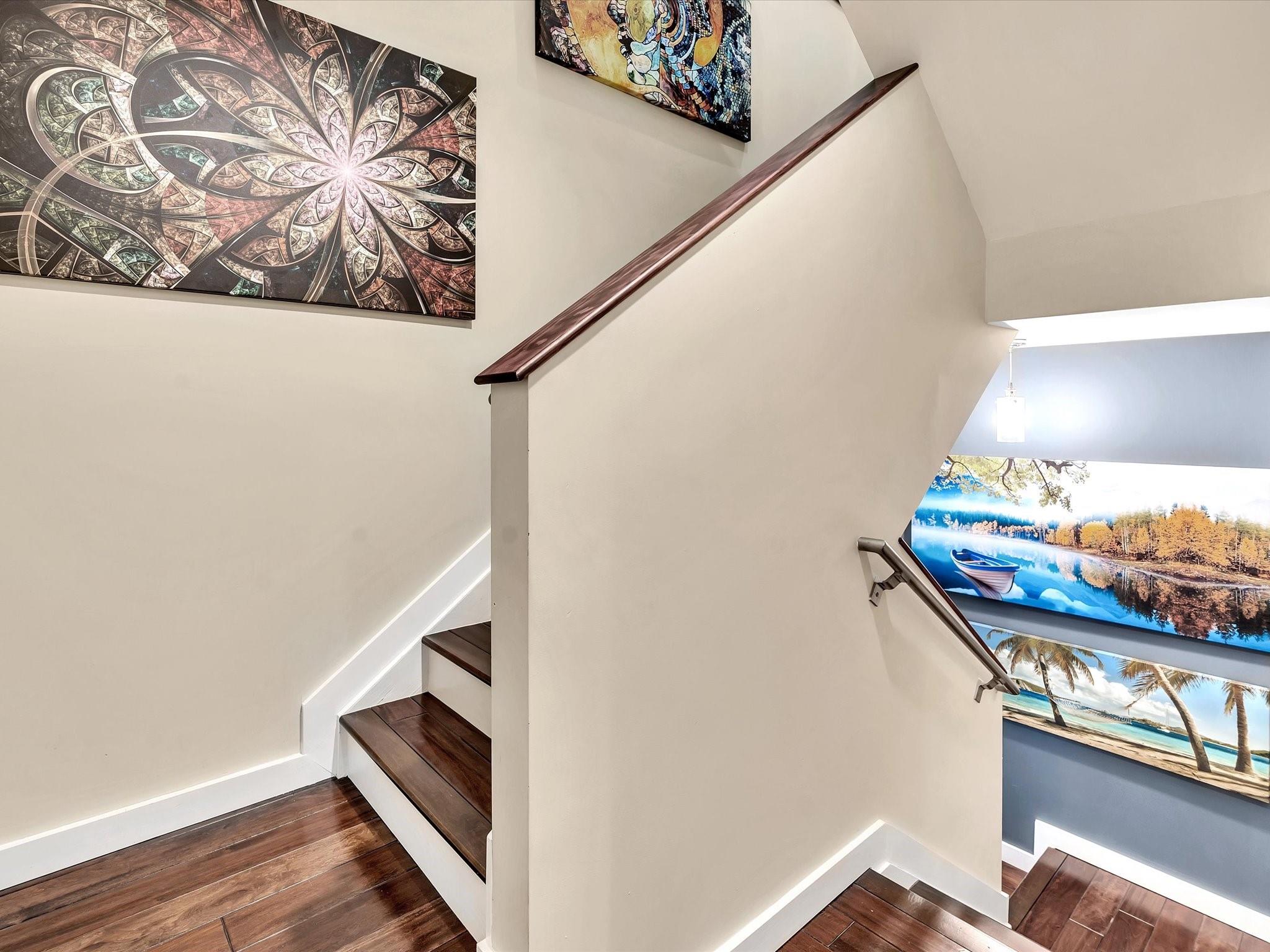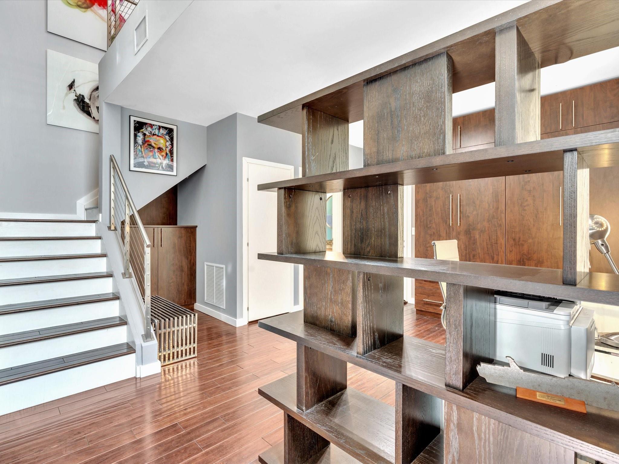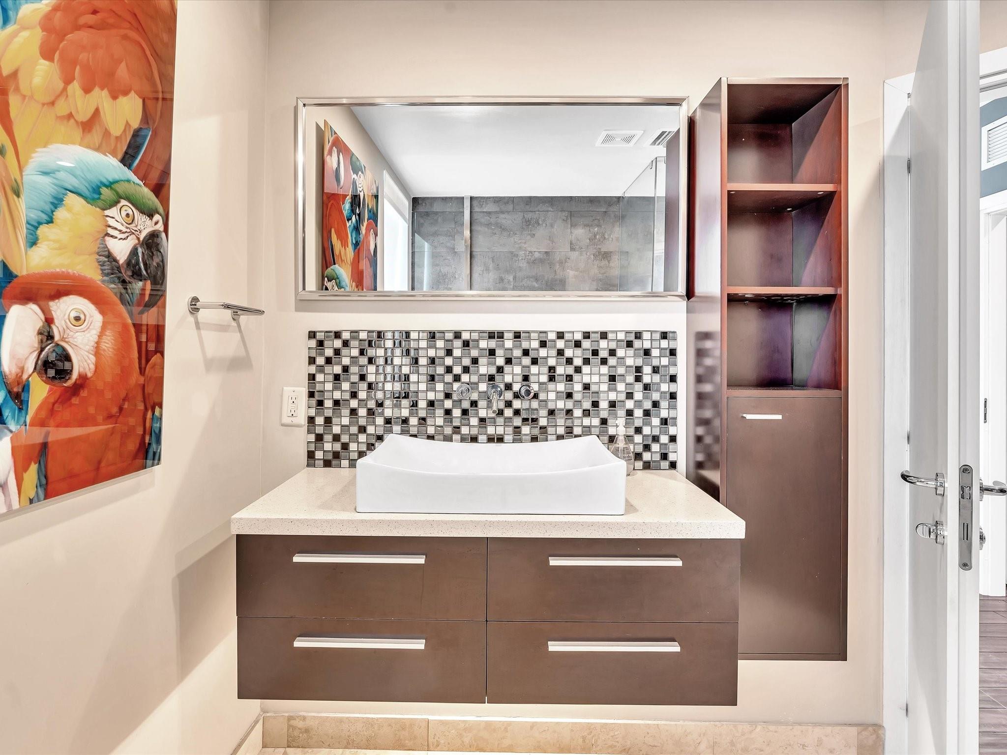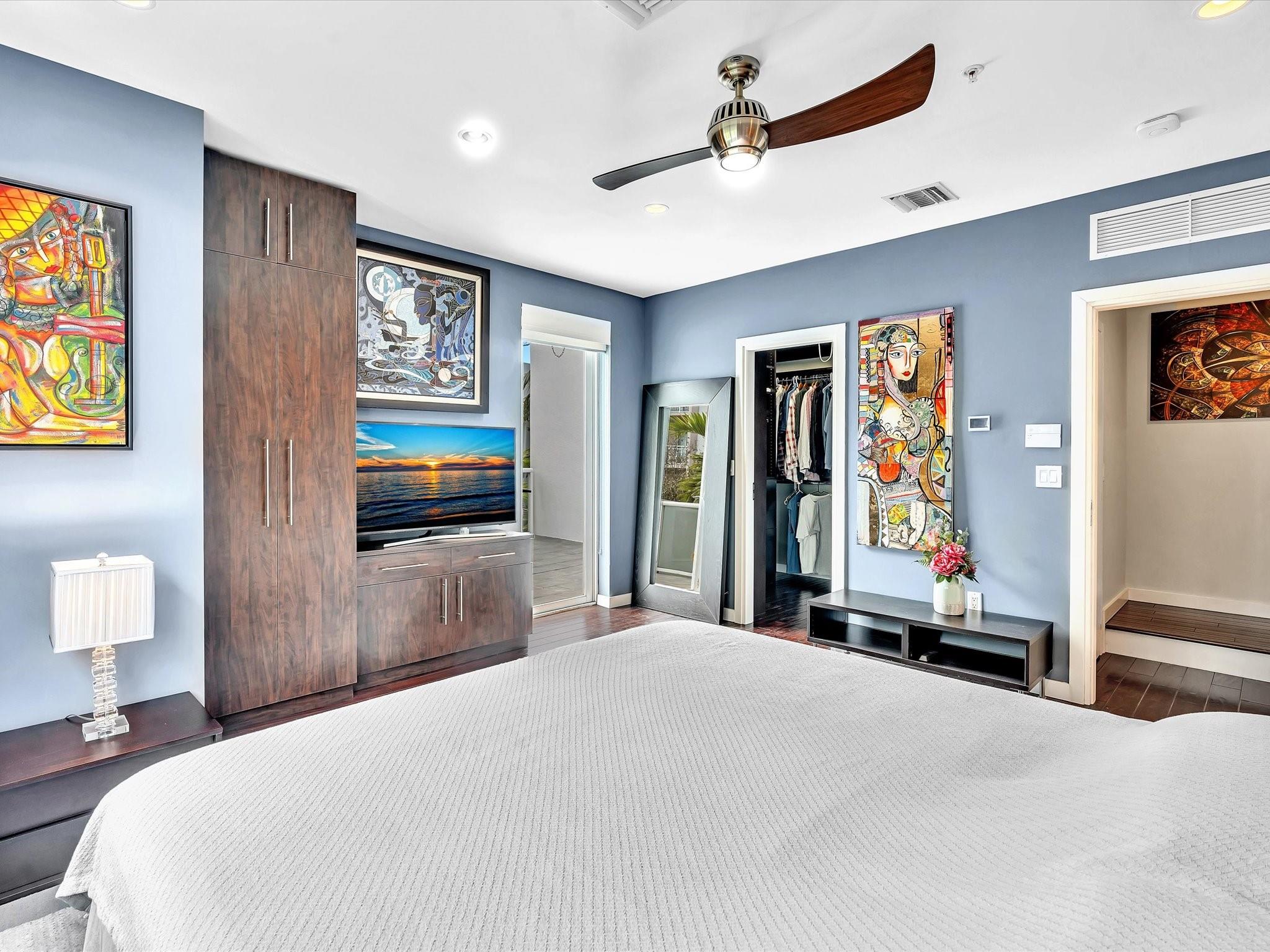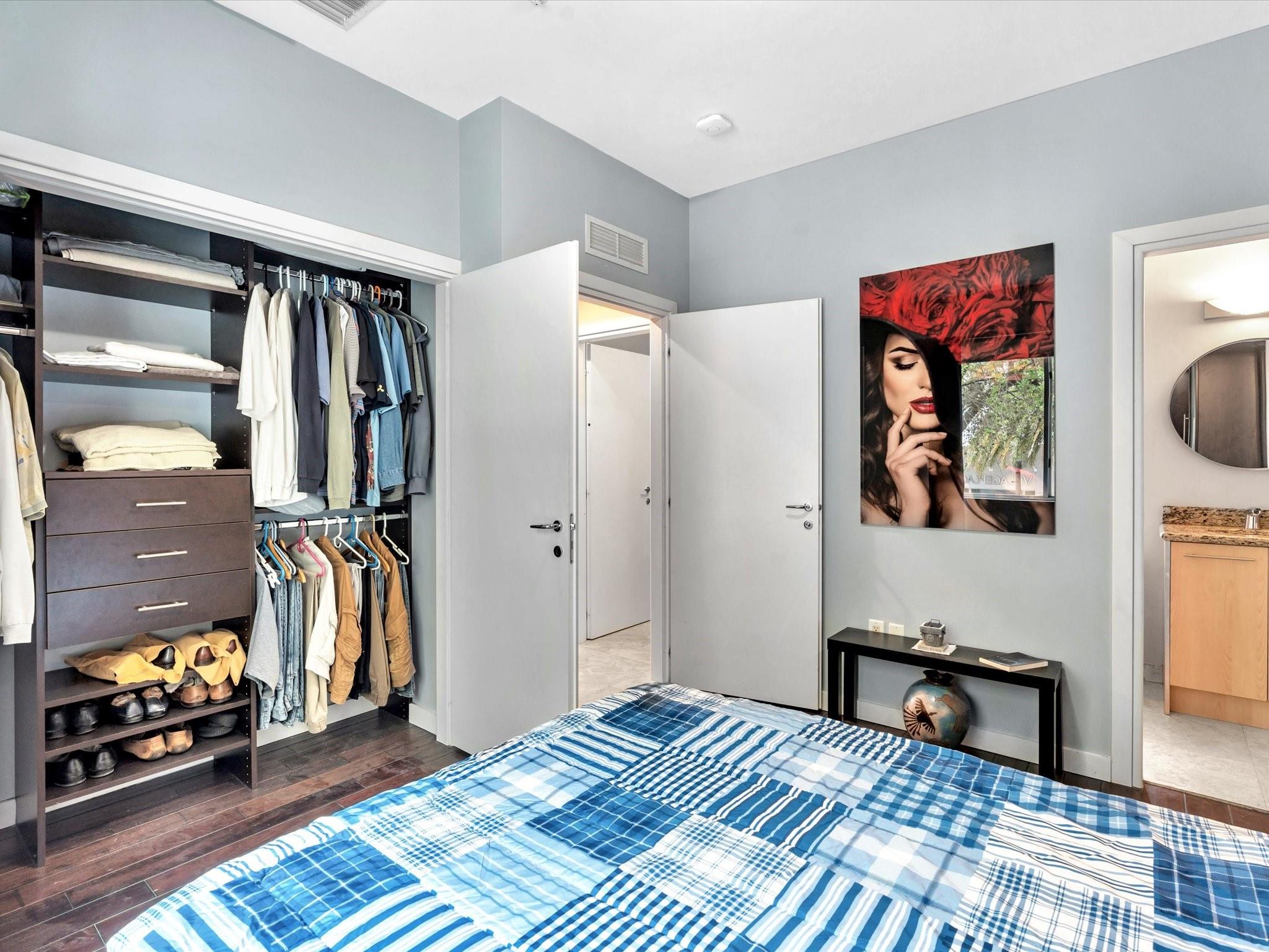Elegant 4-story, fully furnished townhome with 50 paintings. Bamboo Flats community in the vibrant Flagler Village, downtown FTL. This property features 3 bedrooms, one could be used as office space on the ground floor, 3 full bathrooms, and a half bath, all designed with a modern aesthetic. The home boasts open, spacious living areas with 9 to 11-foot ceilings, large windows, and abundant natural light, complemented by custom-built cabinetry. The layout includes a 2-car garage and an office/den on the 1st floor, a kitchen and living area, plus one bedroom on the 2nd floor, and the master bedroom with ensuite bathroom, walk-in closet, terrace, washer/dryer (3rd floor). A large rooftop terrace (4th floor). Secure, gated community with lush tropical gardens and a beautiful pool area.