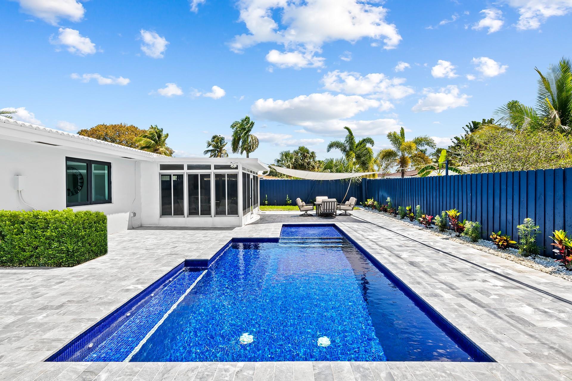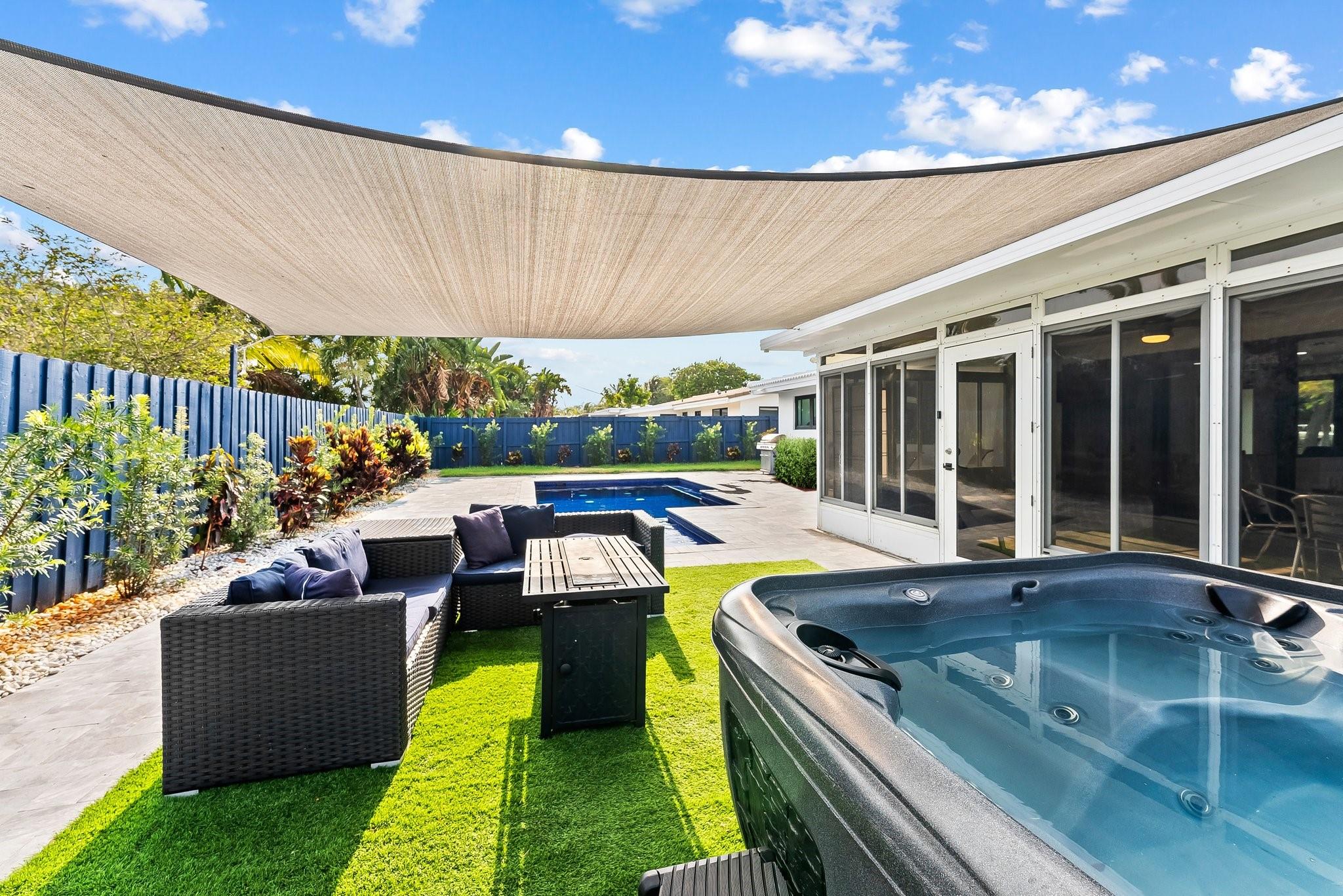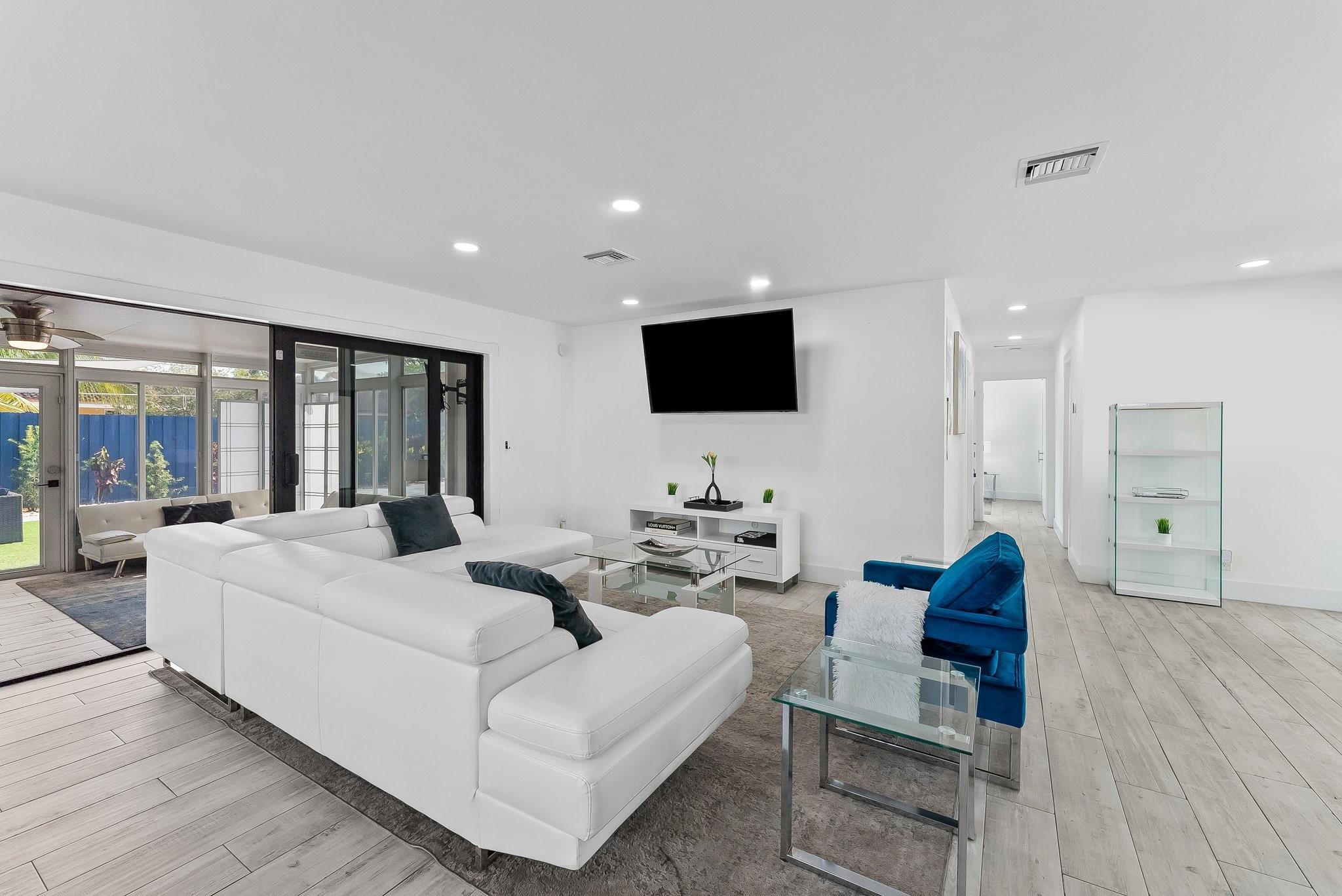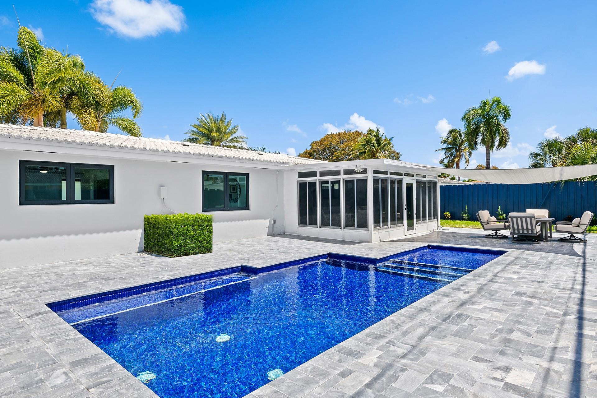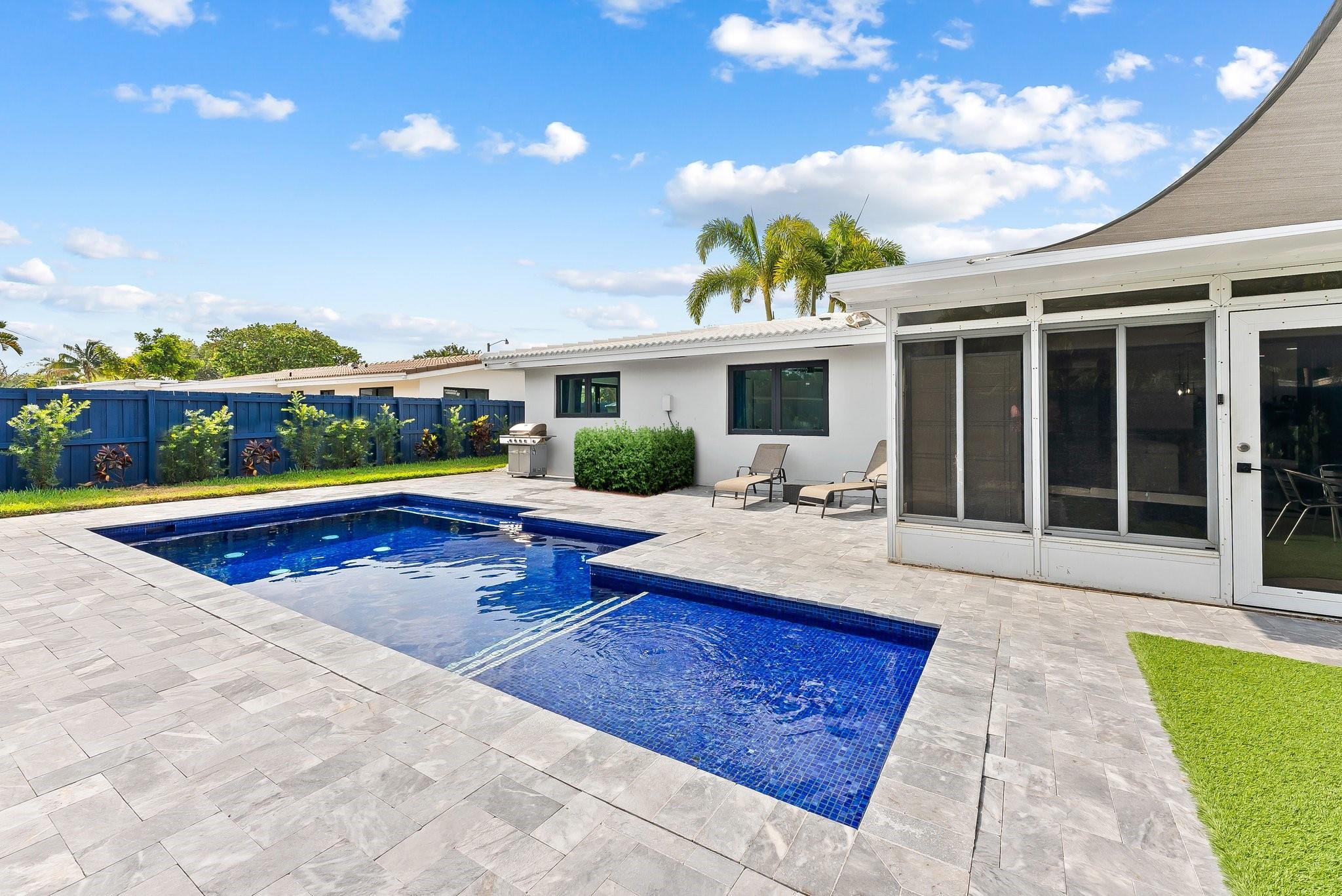 PERFECT FOR BUYERS LOOKING FOR A TURNKEY HOME & INVESTORS! INCREDIBLE LOCATION JUST MINUTES FROM THE BEACH! 1031 EXCHANGE WELCOME! NO HOA FEES! This LUXURY FULLY REMODELED open-concept property in the heart of Imperial Point in EAST FORT LAUDERDALE offers 2 BD, 2 BA + BONUS ROOM. Featuring a new kitchen w/ quartz countertops & Samsung Smart Appliances. New AC & ducts, tankless water heater, new bathrooms, porcelain tile & LED lighting throughout. Fabulous backyard: mosaic heated pool & jacuzzi ledge, salt water system, hot tub, new landscaping & travertine patio. Impact windows & doors, well water sprinkler system, oversized paver driveway & carport w/ EV charger. House is leased for $5,775/month through June 30, 2025. IF PREFERRED HOUSE CAN BE DELIVERED VACANT AT CLOSING. NO FLOOD ZONE!!