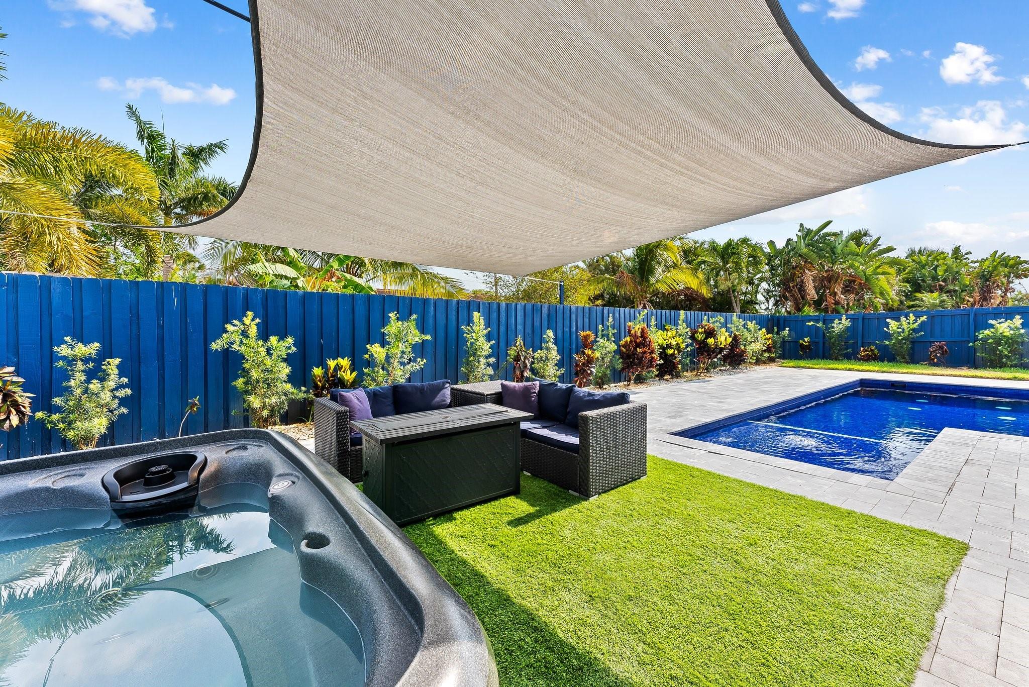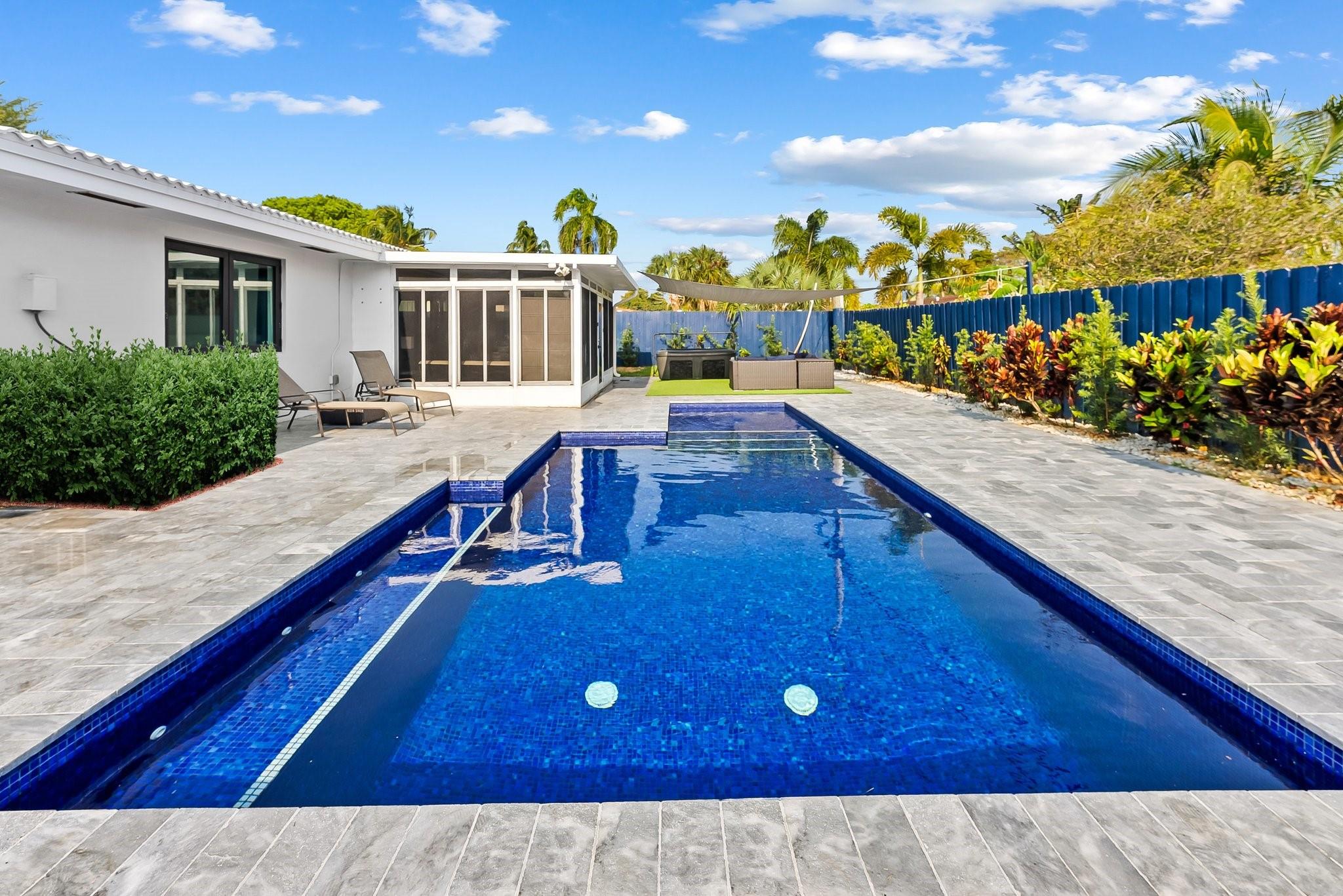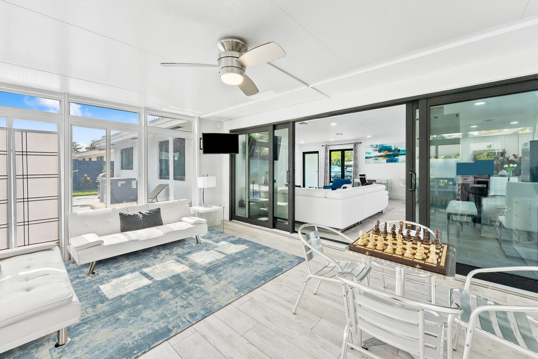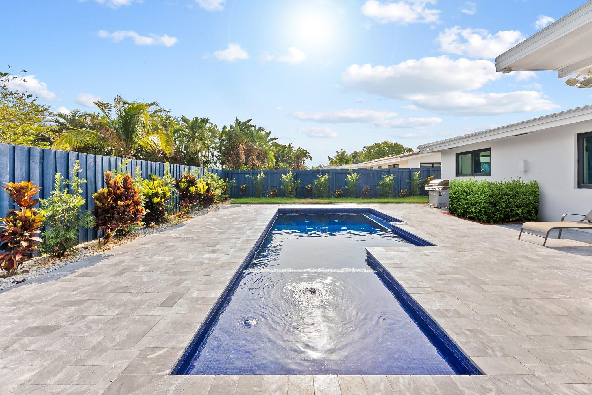 PERFECT FOR BUYERS LOOKING FOR A TURNKEY HOME & INVESTORS! INCREDIBLE LOCATION JUST MINUTES FROM THE BEACH! 1031 EXCHANGE WELCOME! NO HOA FEES! This LUXURY FULLY REMODELED open-concept property in the heart of Imperial Point in EAST FORT LAUDERDALE offers 2 BD, 2 BA + BONUS ROOM. Featuring a new kitchen w/ quartz countertops & Samsung Smart Appliances. New AC & ducts, tankless water heater, new bathrooms, porcelain tile & LED lighting throughout. Fabulous backyard: mosaic heated pool & jacuzzi ledge, salt water system, hot tub, new landscaping & travertine patio. Impact windows & doors, well water sprinkler system, oversized paver driveway & carport w/ EV charger. House is leased for $5,775/month through June 30, 2025. IF PREFERRED HOUSE CAN BE DELIVERED VACANT AT CLOSING. NO FLOOD ZONE!!