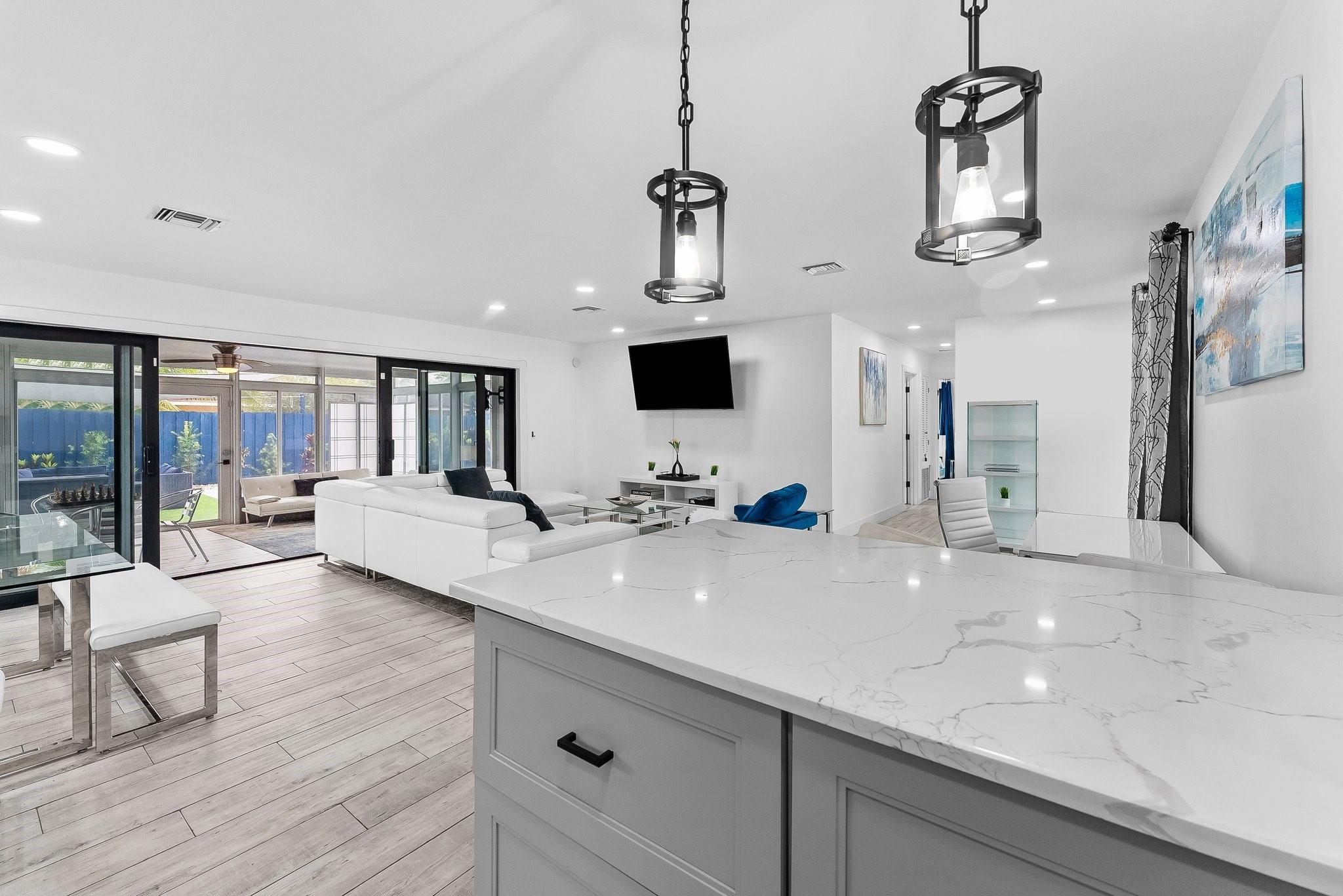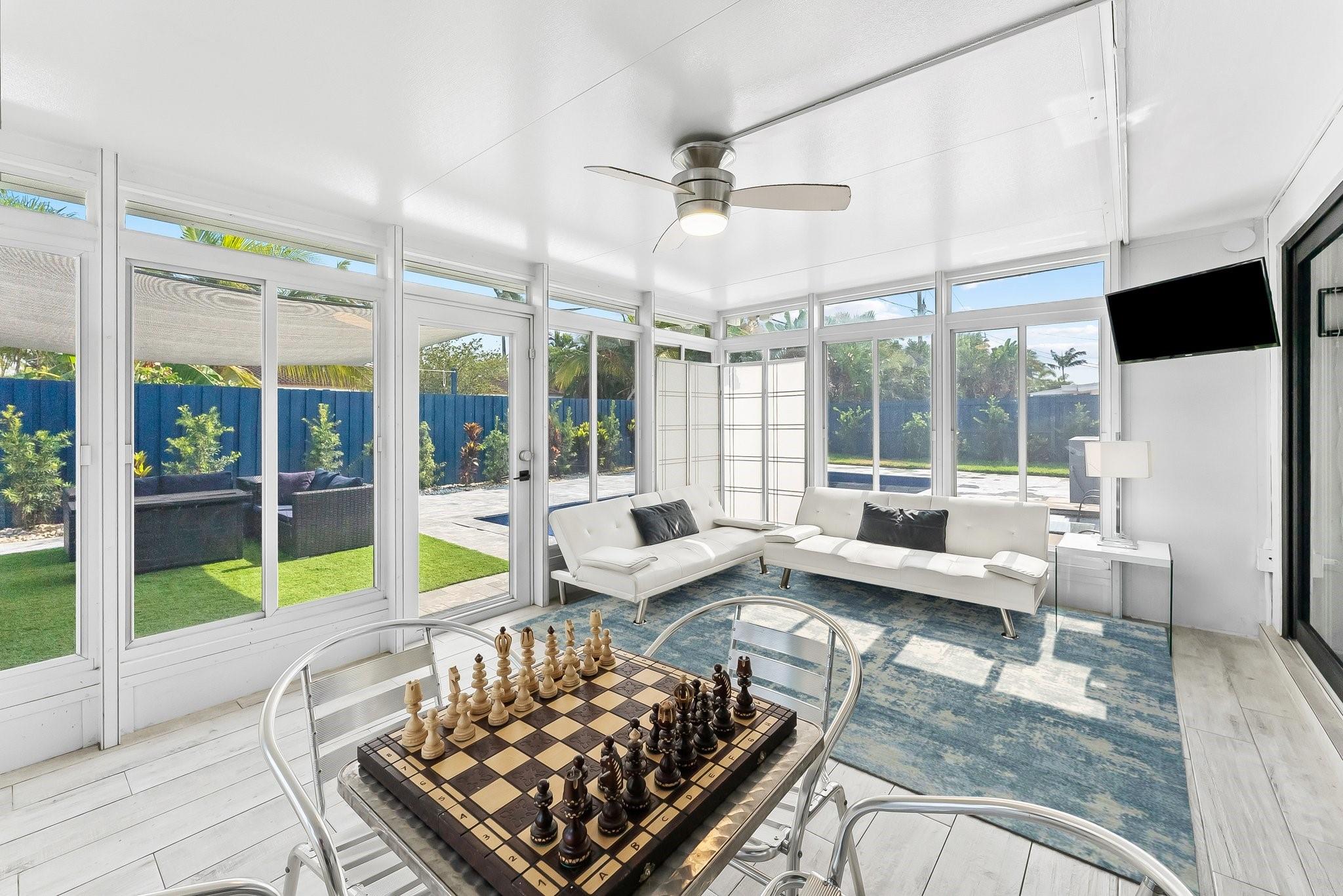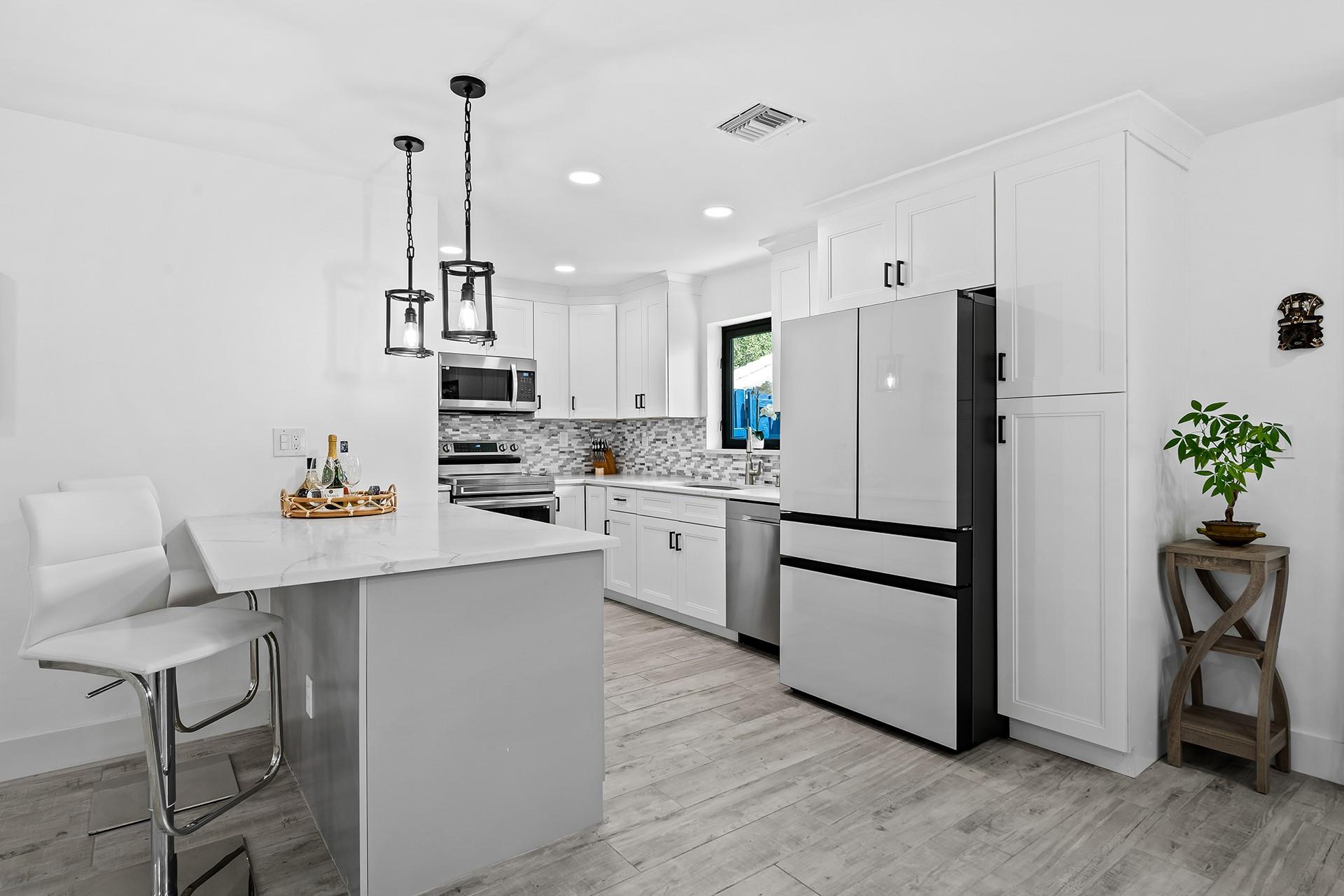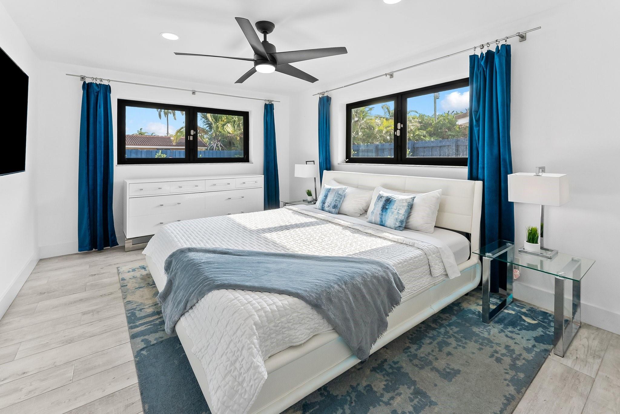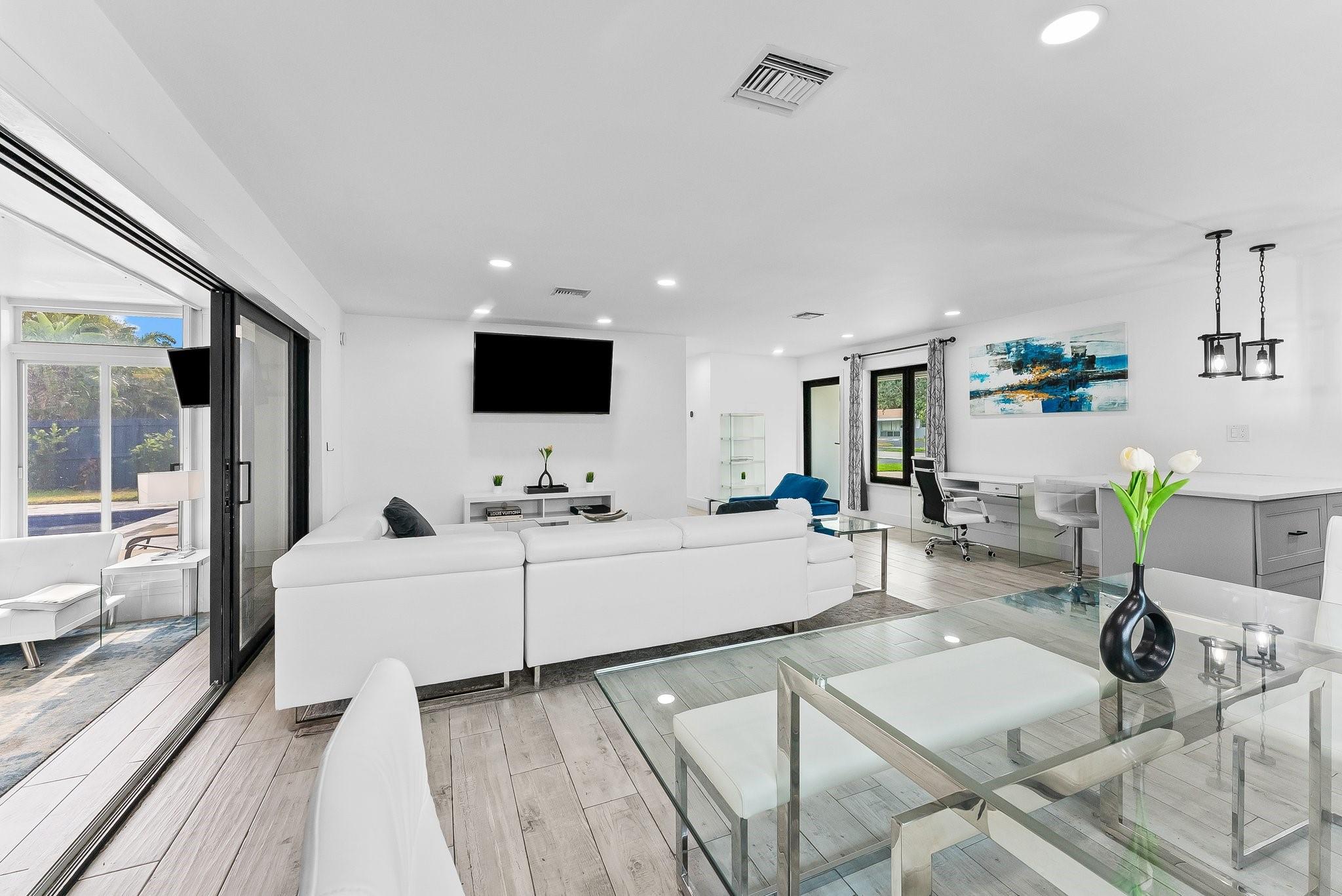 PERFECT FOR BUYERS LOOKING FOR A TURNKEY HOME & INVESTORS! INCREDIBLE LOCATION JUST MINUTES FROM THE BEACH! 1031 EXCHANGE WELCOME! NO HOA FEES! This LUXURY FULLY REMODELED open-concept property in the heart of Imperial Point in EAST FORT LAUDERDALE offers 2 BD, 2 BA + BONUS ROOM. Featuring a new kitchen w/ quartz countertops & Samsung Smart Appliances. New AC & ducts, tankless water heater, new bathrooms, porcelain tile & LED lighting throughout. Fabulous backyard: mosaic heated pool & jacuzzi ledge, salt water system, hot tub, new landscaping & travertine patio. Impact windows & doors, well water sprinkler system, oversized paver driveway & carport w/ EV charger. House is leased for $5,775/month through June 30, 2025. IF PREFERRED HOUSE CAN BE DELIVERED VACANT AT CLOSING. NO FLOOD ZONE!!