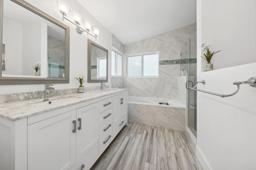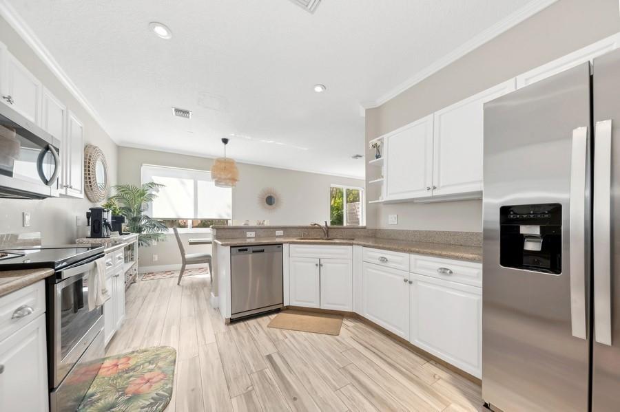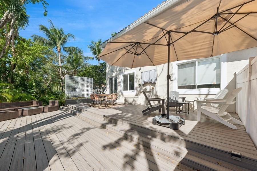 Welcome to your dream home! This stunning corner-unit townhouse boasts the space and privacy of a single-family residence, complete with a huge backyard and expansive 900 square foot deck area—perfect for outdoor gatherings and relaxation. Step inside to discover soaring vaulted ceilings that fill the living space with natural light. This beautifully updated home features three spacious bedrooms and two and a half bathrooms, providing ample room for family and guests. The home boasts beautiful, wood-plank, porcelain tile through out, a beautifully renovated master bathroom with separate tub/shower and all impact windows/doors. Don’t miss this true gem—experience the perfect blend of comfort and style!