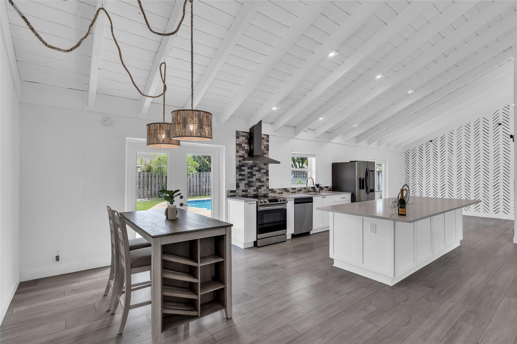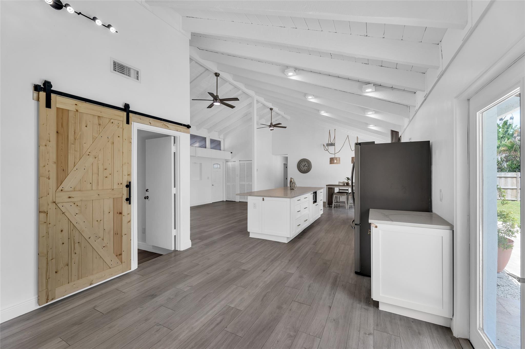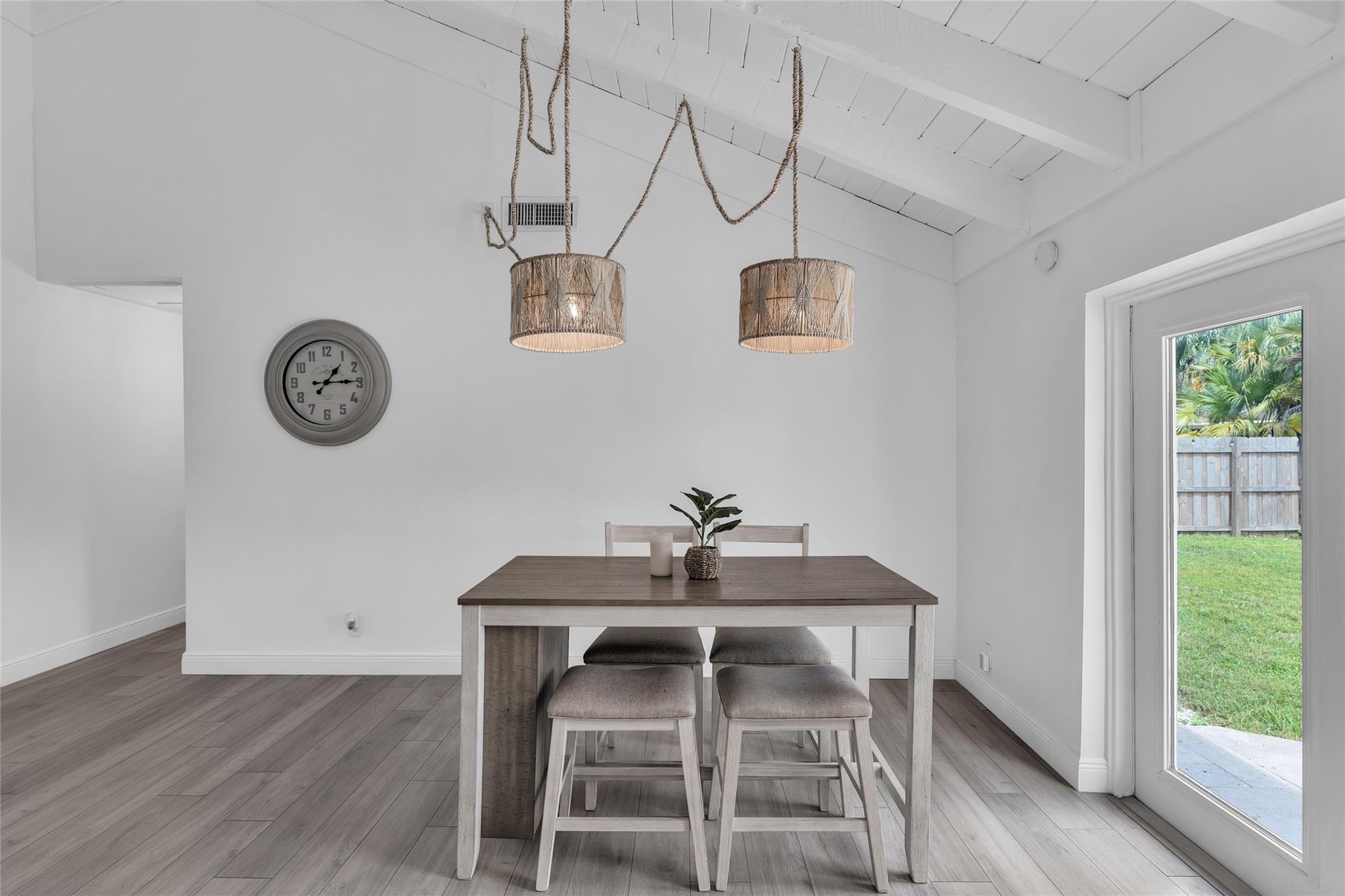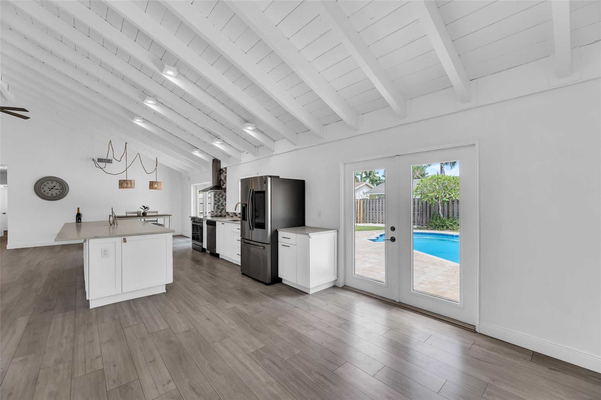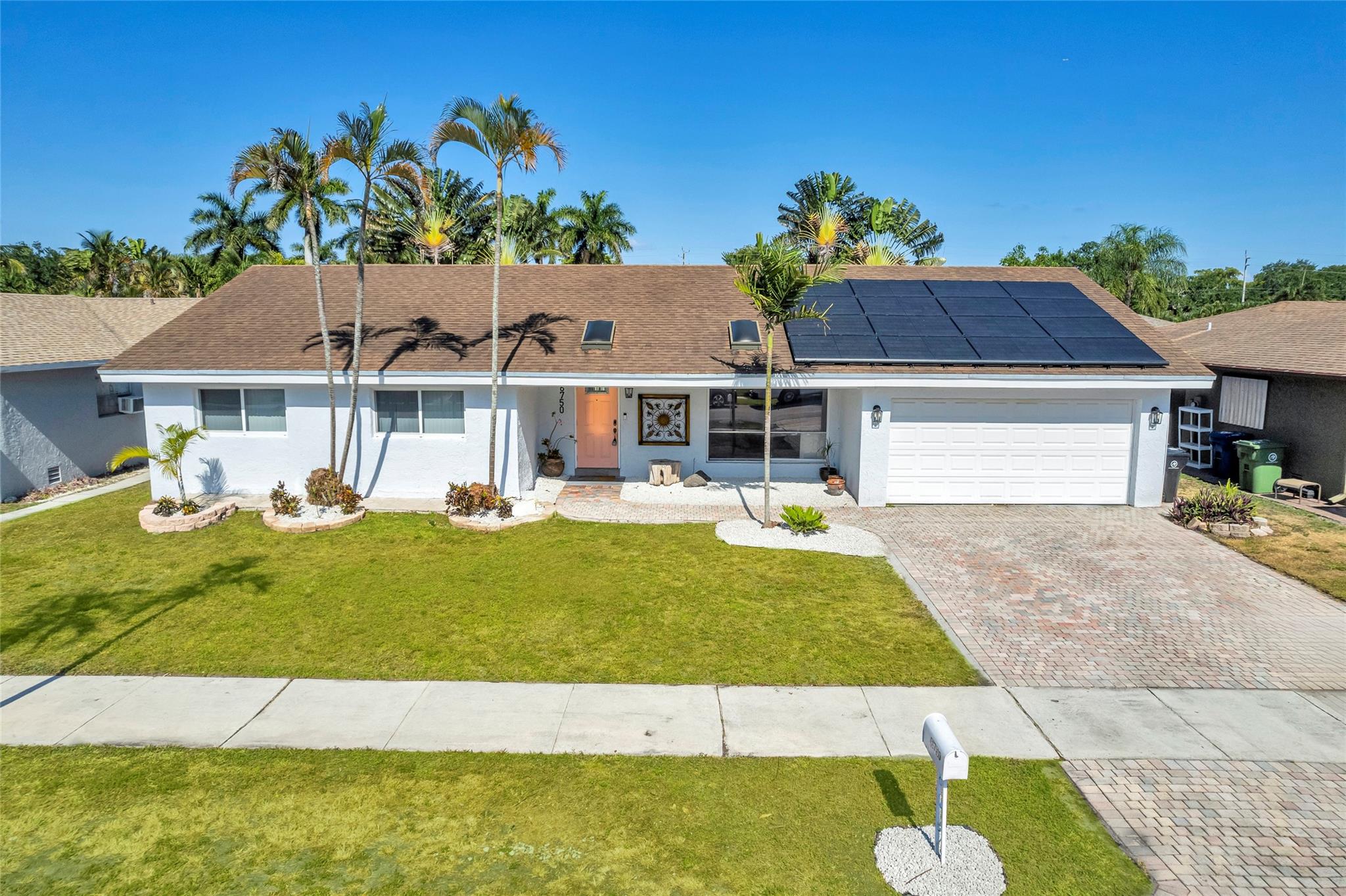 Discover your dream home in the heart of Palm Aire Village East. This beautiful 3-bedroom, 2-bathroom pool home offers a spacious open floor plan with a stunning vaulted ceiling. The modern kitchen features an oversized island and luxury vinyl plank flooring throughout. Step outside to your private backyard oasis, complete with a solar-heated swimming pool that has just been refinished, travertine tile patio, and a fully fenced space. Enjoy the benefits of a 10-year roof warranty and solar panels for energy efficiency and cost savings. Located in the highly desired, family friendly neighborhood of Palm Aire Village East with NO HOA! Minutes from Publix, restaurants, shops, I-95 and walking distance to Palm Aire Village Park & Calvary Christian Academy!