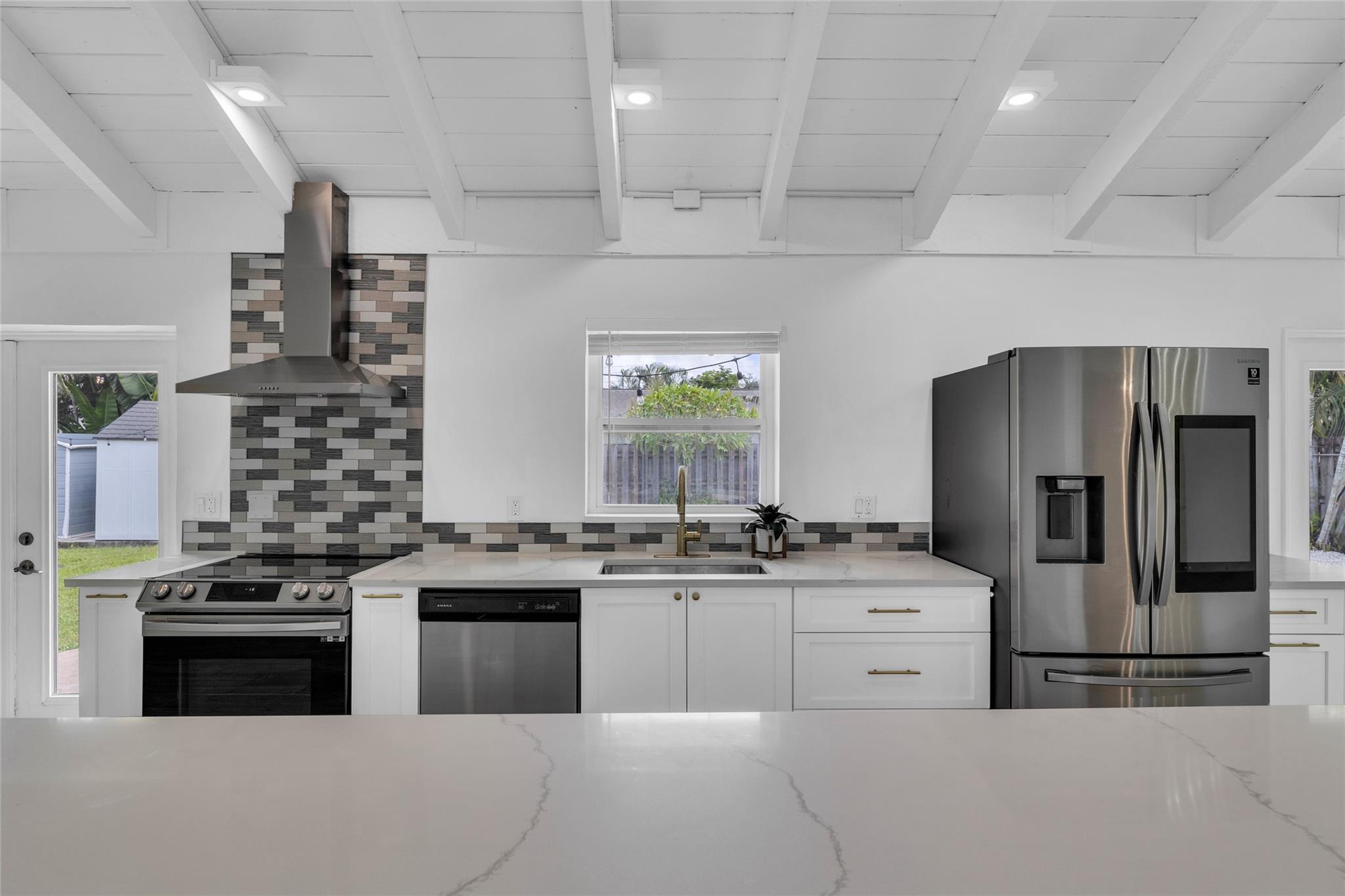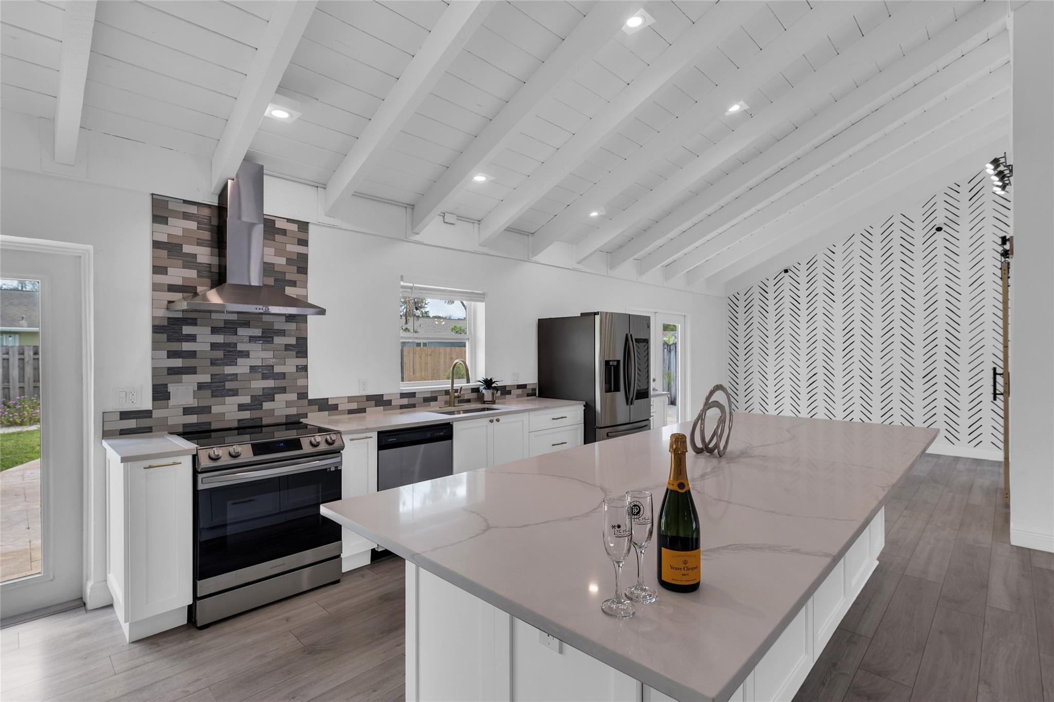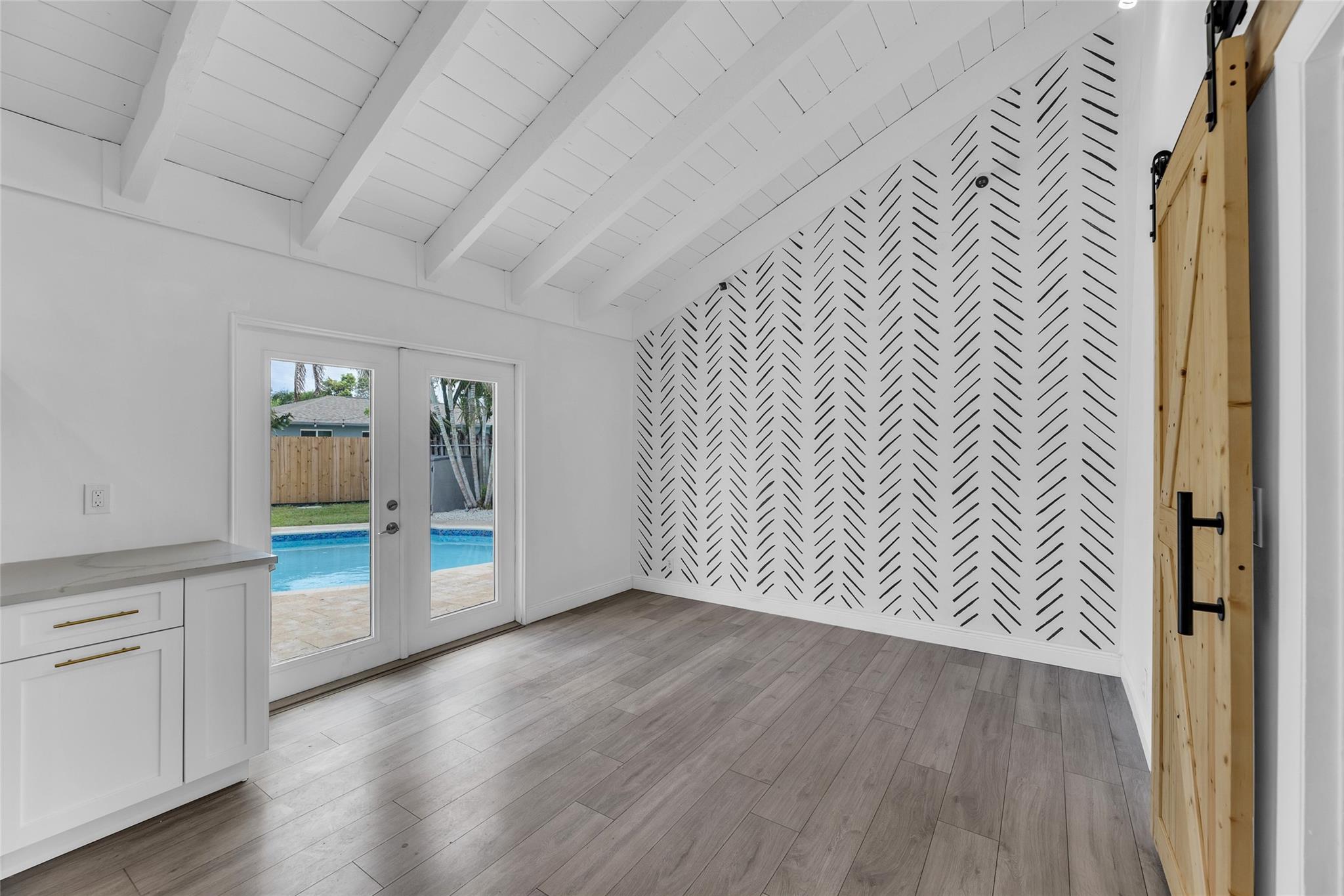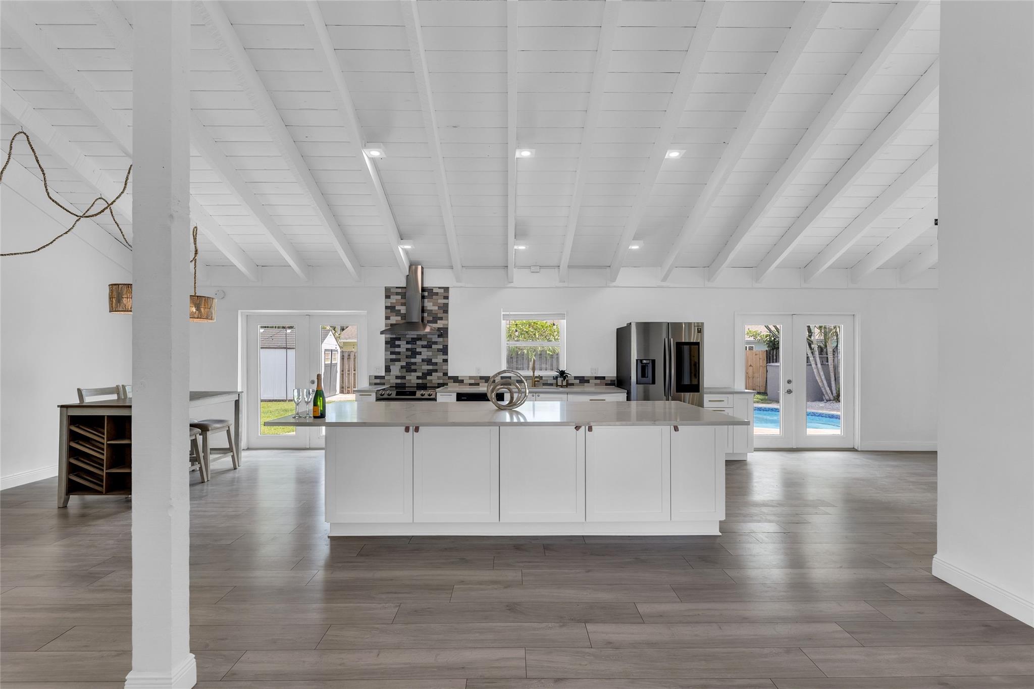 Discover your dream home in the heart of Palm Aire Village East. This beautiful 3-bedroom, 2-bathroom pool home offers a spacious open floor plan with a stunning vaulted ceiling. The modern kitchen features an oversized island and luxury vinyl plank flooring throughout. Step outside to your private backyard oasis, complete with a solar-heated swimming pool that has just been refinished, travertine tile patio, and a fully fenced space. Enjoy the benefits of a 10-year roof warranty and solar panels for energy efficiency and cost savings. Located in the highly desired, family friendly neighborhood of Palm Aire Village East with NO HOA! Minutes from Publix, restaurants, shops, I-95 and walking distance to Palm Aire Village Park & Calvary Christian Academy!