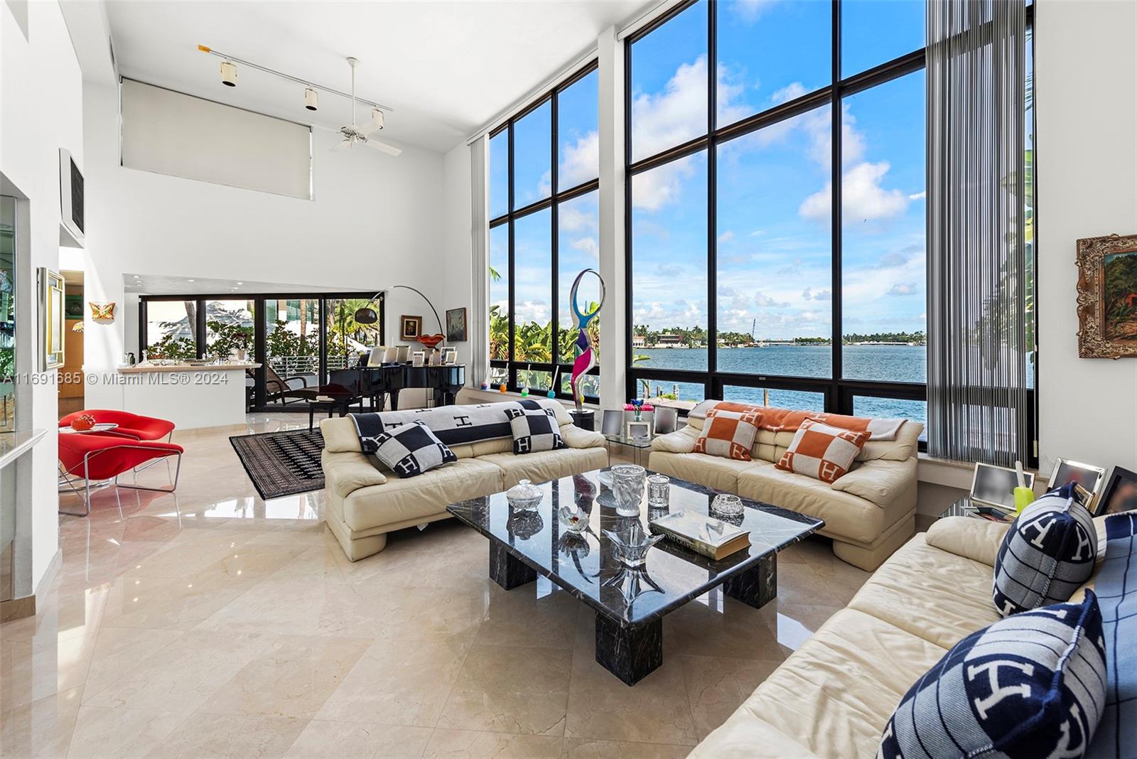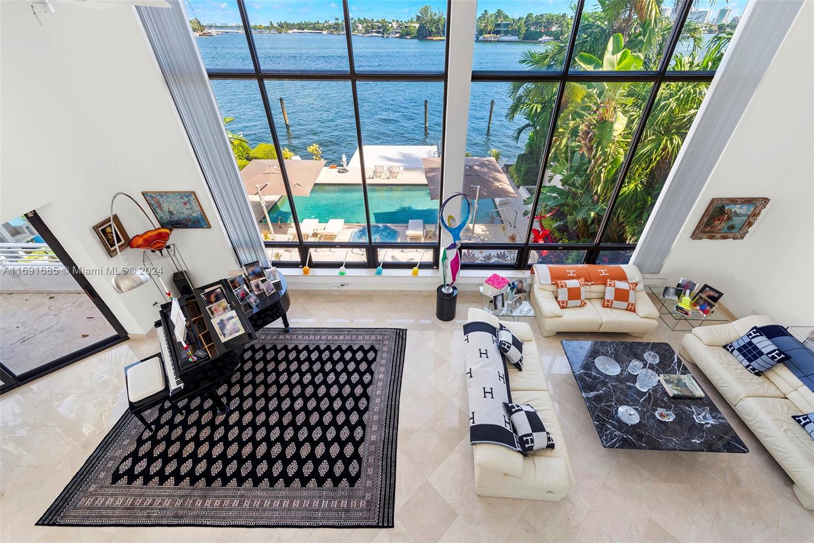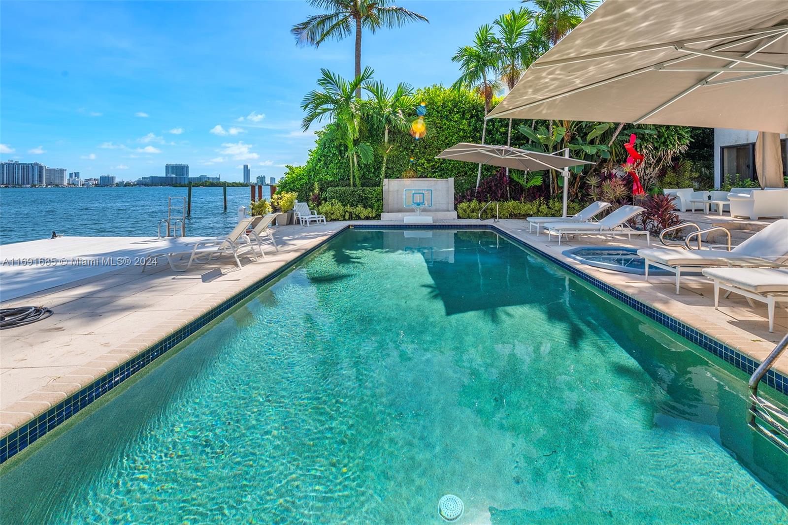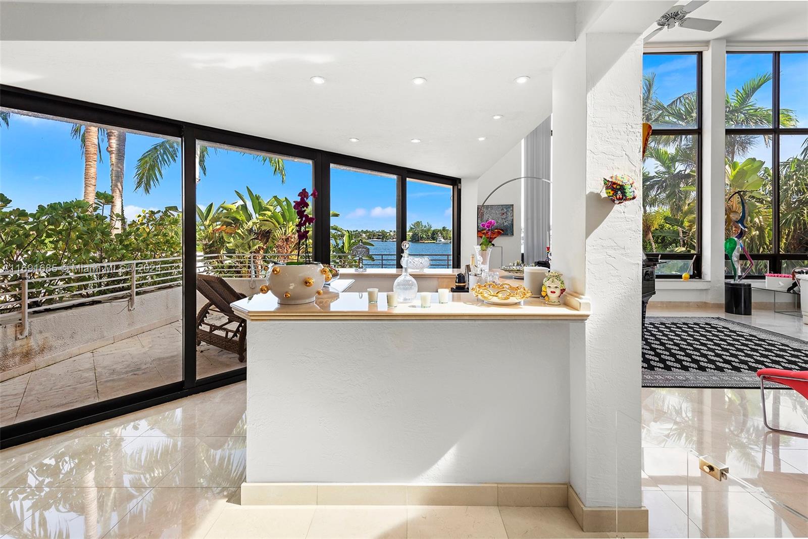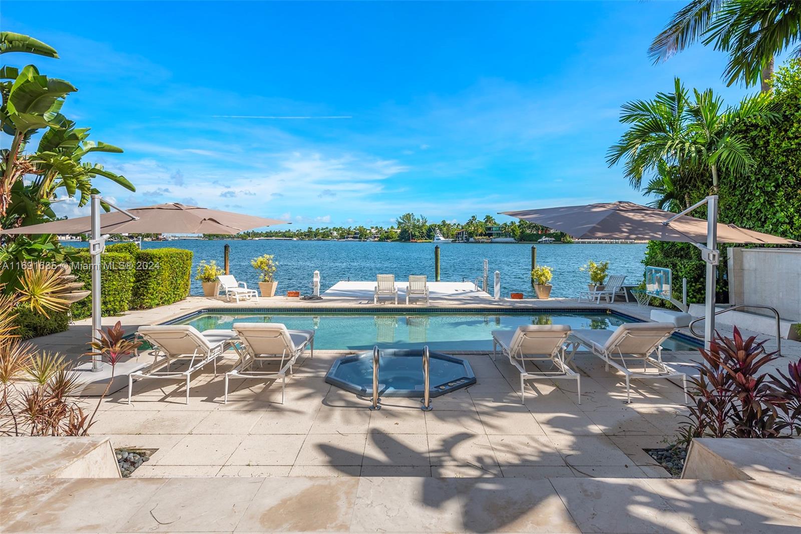 Imagine waking up to expansive bay views from your double-height living room in the exclusive, gated community of Hibiscus Island. This sprawling 6,124-square-foot, 5-bedroom residence offers a seamless blend of luxury and leisure, from sunny poolside mornings to festive evenings by the summer kitchen--ideal for entertaining. Visualize a private fireworks display over the bay or a sunset sail from your 70-foot yacht dock. Marble floors add sophistication, while the new gourmet kitchen features high-end Poggenpohl cabinetry and Miele appliances. With a media room, adjoining gym, and 6-car circular driveway, plus 60-foot Royal Palms and 14-foot privacy hedges, this island retreat offers endless possibilities to call your own.