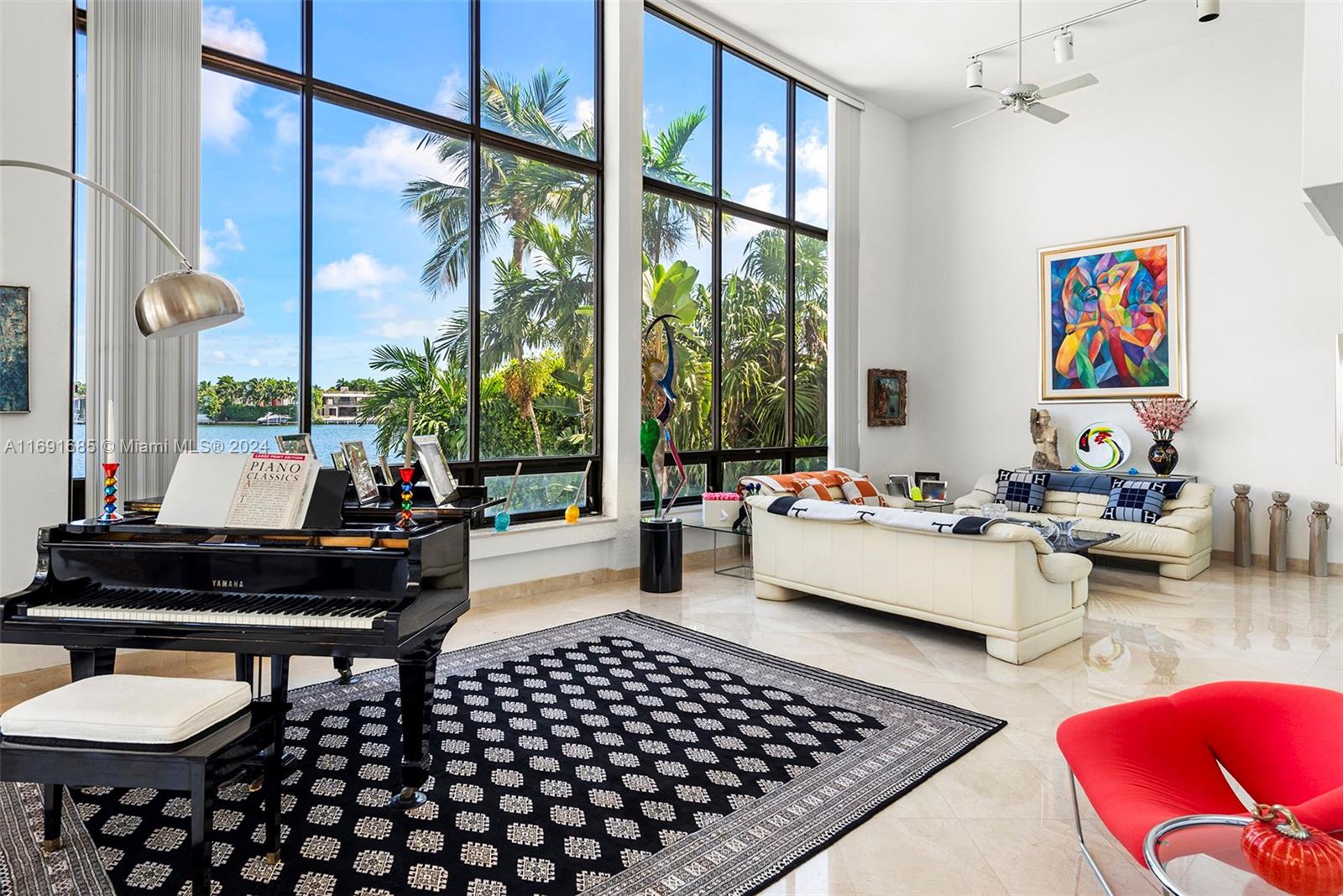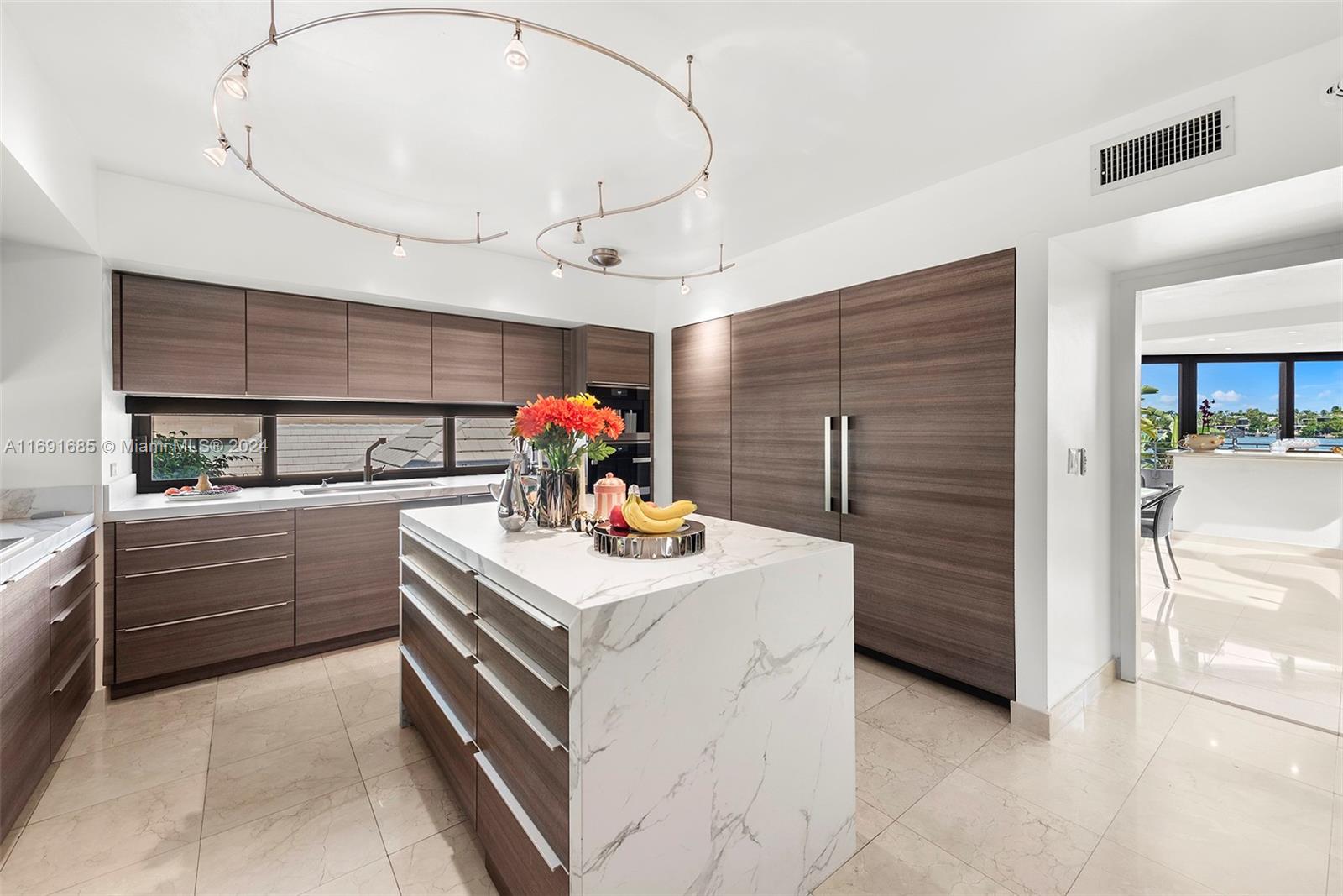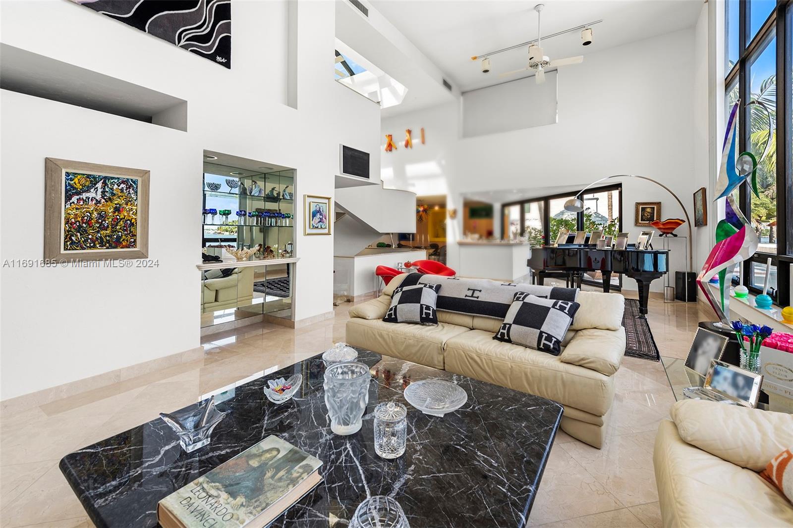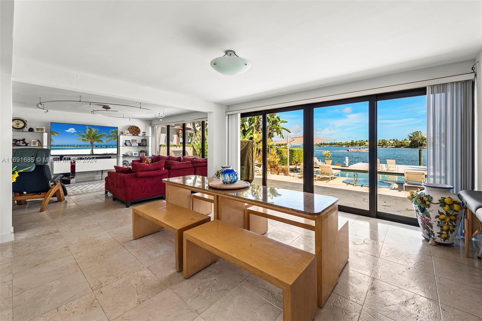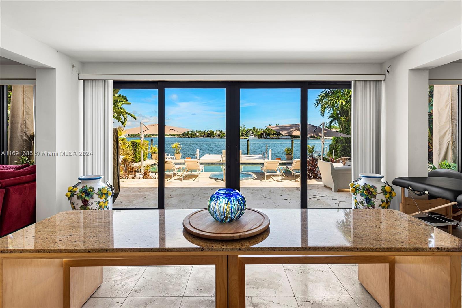Imagine waking up to expansive bay views from your double-height living room in the exclusive, gated community of Hibiscus Island. This sprawling 6,124-square-foot, 5-bedroom residence offers a seamless blend of luxury and leisure, from sunny poolside mornings to festive evenings by the summer kitchen--ideal for entertaining. Visualize a private fireworks display over the bay or a sunset sail from your 70-foot yacht dock. Marble floors add sophistication, while the new gourmet kitchen features high-end Poggenpohl cabinetry and Miele appliances. With a media room, adjoining gym, and 6-car circular driveway, plus 60-foot Royal Palms and 14-foot privacy hedges, this island retreat offers endless possibilities to call your own.