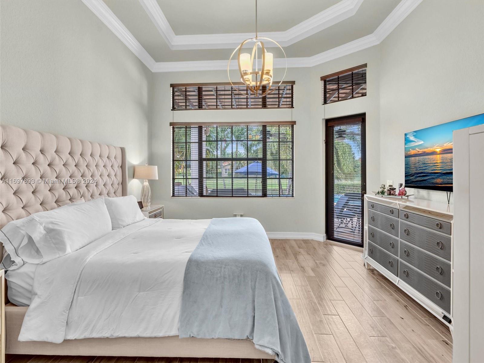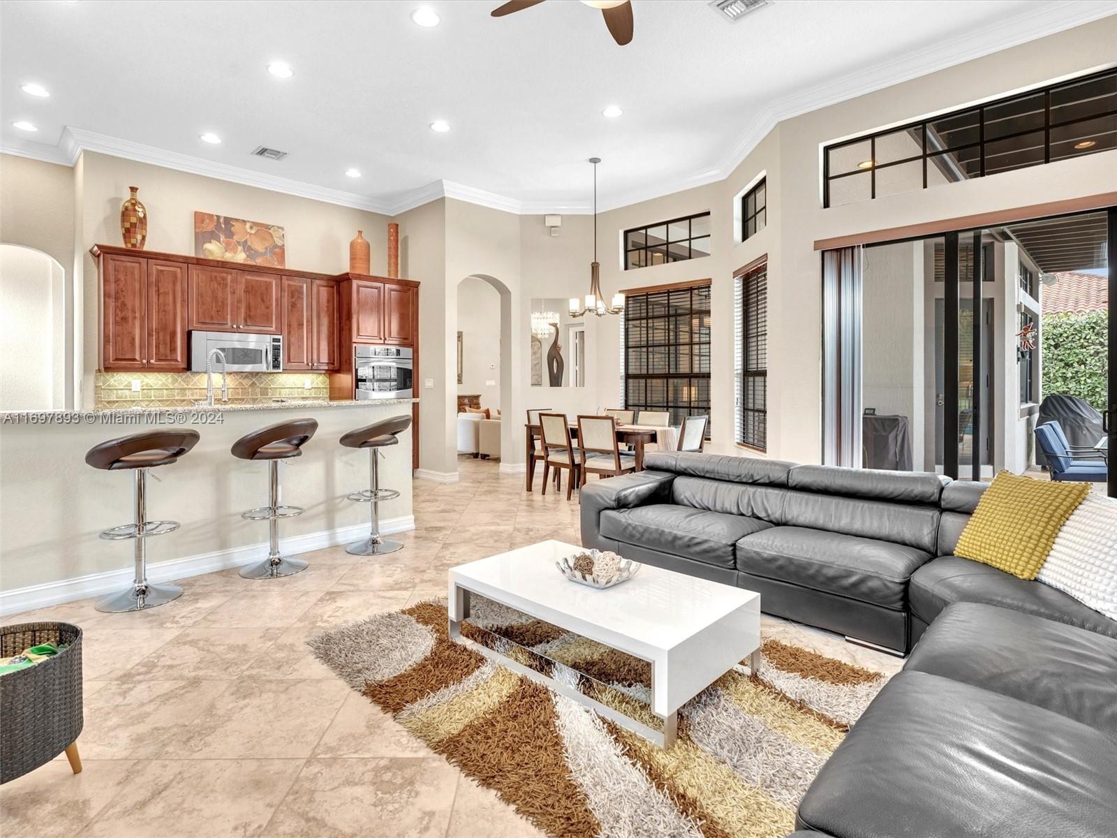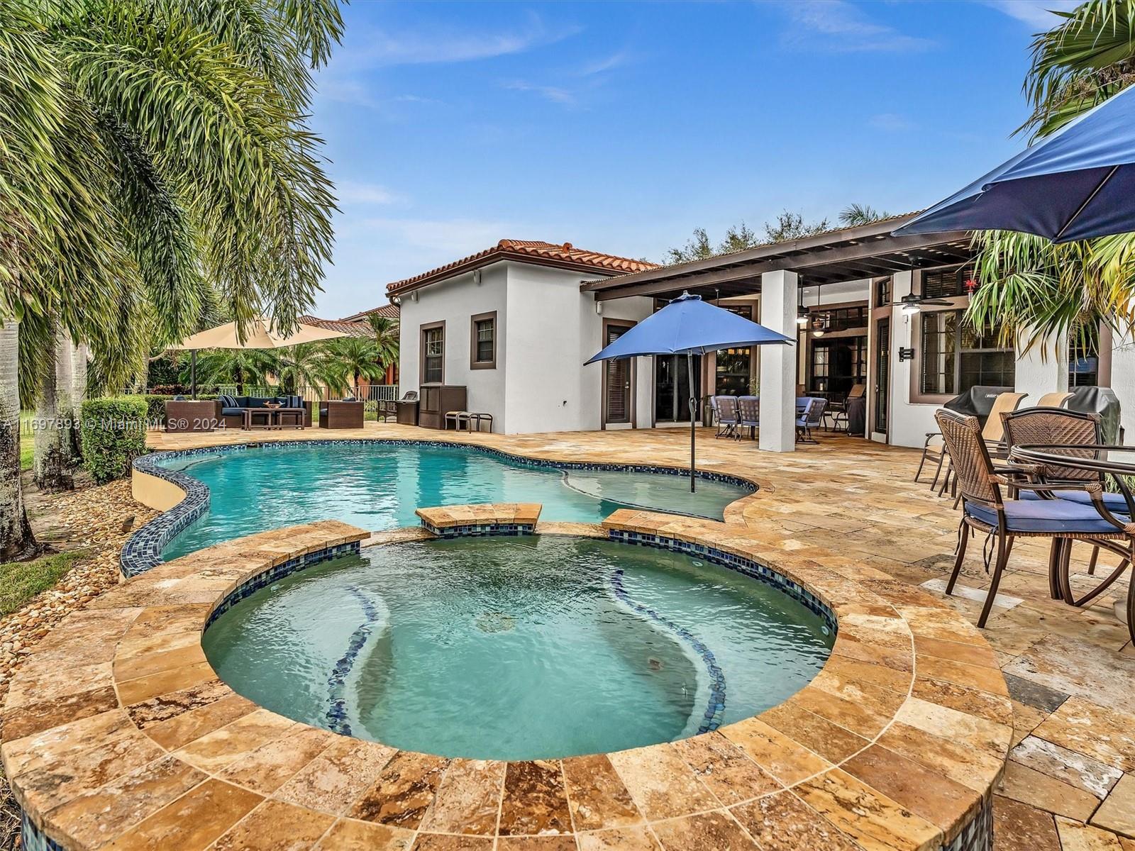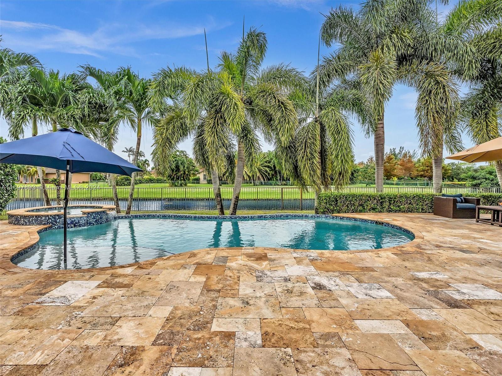 EXTREMELY RARE 5-BED/4-BATH, 1-STORY ESTATE HOME ON ONE OF THE BEST AND LARGEST LOTS IN THE HIGHLY DESIRABLE GATED COMMUNITY OF ESTADA AT MONTERRA. FEATURES INCLUDE: RESORT STYLE BACKYARD W/ CUSTOM POOL & JACUZZI, OVERSIZED TRAVERTINE PATIO, SOUND SYSTEM, TV, AND LUSH TROPICAL LANDSCAPING. FULL MARBLE PRIMARY BATHROOM * PORCELAIN TILE FLOORS MAIN AREAS * PORCELAIN WOOD-LOOK FLOORING IN ALL BEDROOMS * SOARING 12' CEILINGS THRU-OUT HOME * CROWN MOLDING * IMPACT GLASS WINDOWS / DOORS * BUILT-IN CABINETS/SHELVING ALL CLOSETS * A/C 2017 * WATER HEATER 2021 * BEST PUBLIC SCHOOLS IN BROWARD COUNTY * ACROSS THE STREET FROM THE POSNACK SCHOOL AND JCC * CLOSE TO EVERYTHING * LOW HOA FEE INCLUDES CABLE, INTERNET, ALARM, 24-HR SECURITY GUARD.