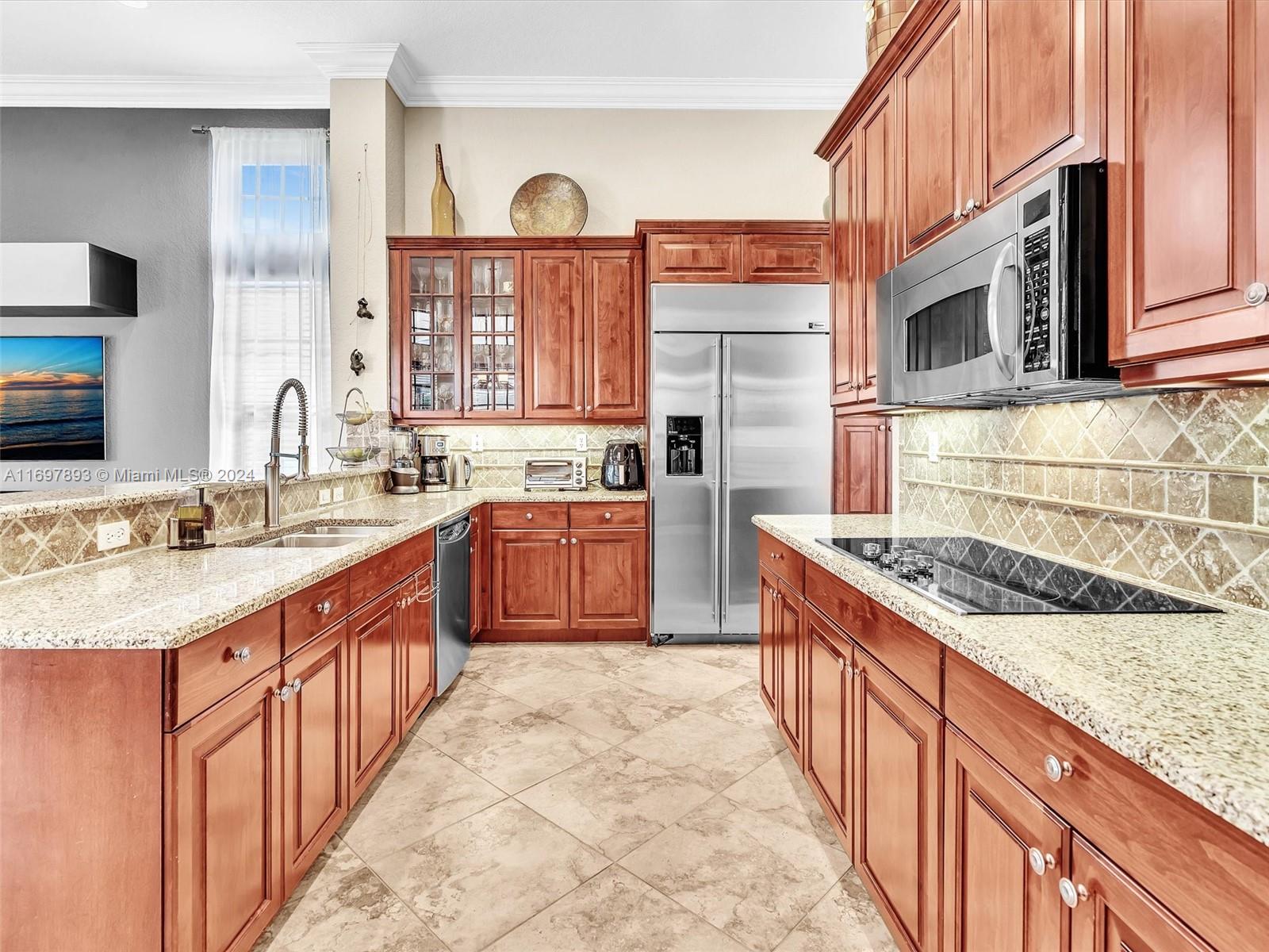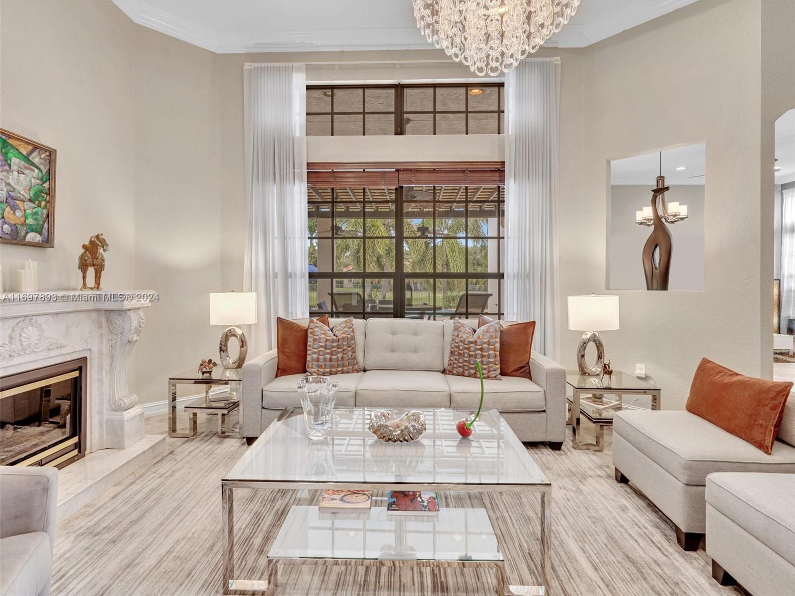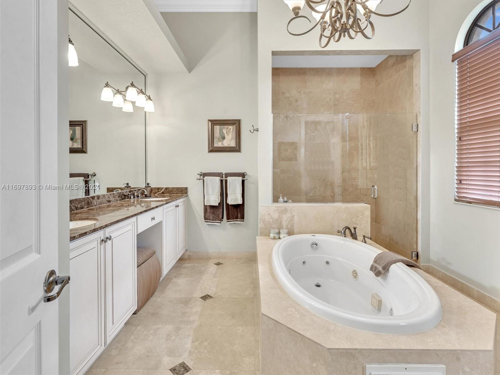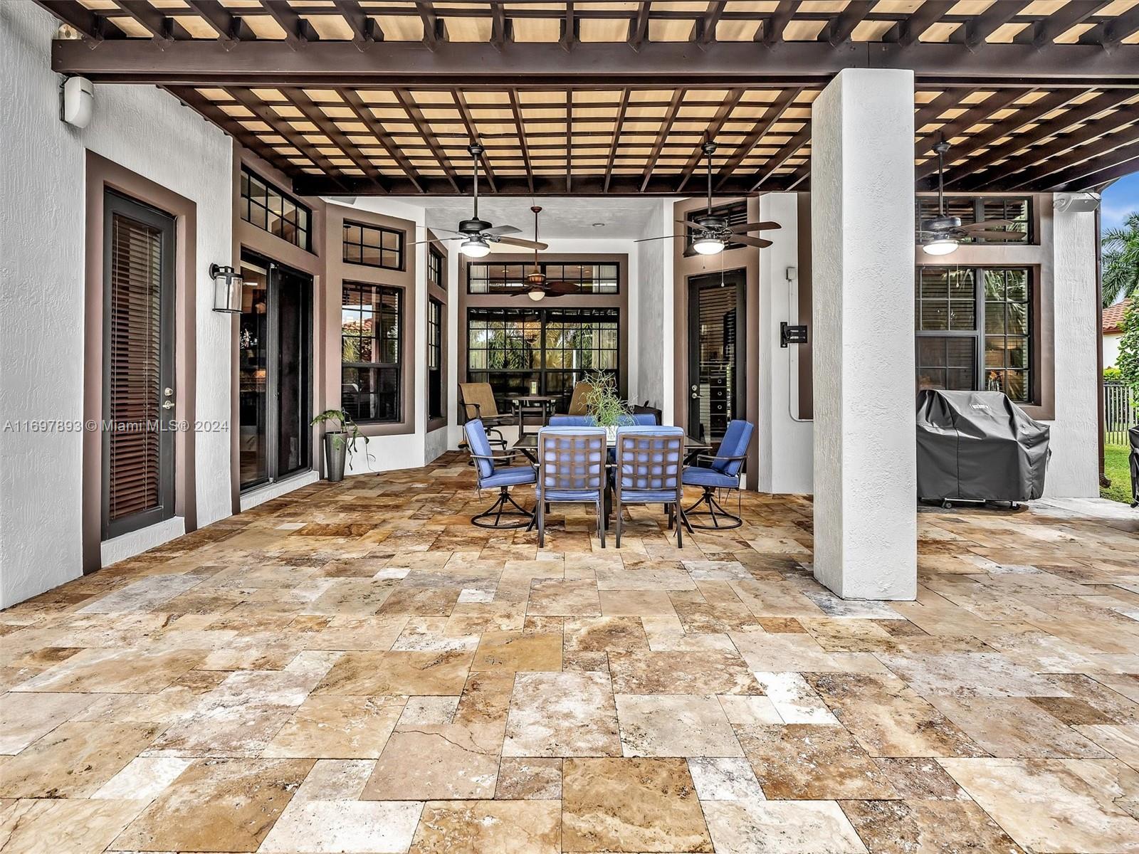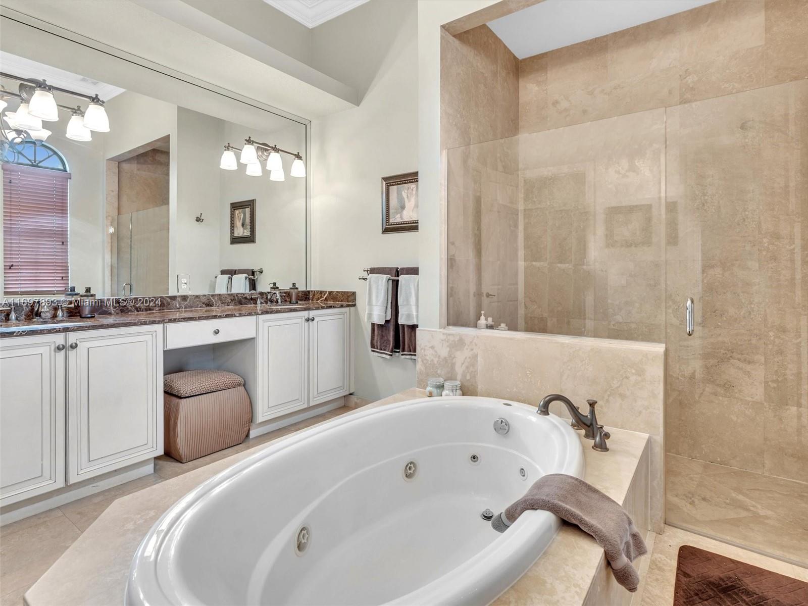 EXTREMELY RARE 5-BED/4-BATH, 1-STORY ESTATE HOME ON ONE OF THE BEST AND LARGEST LOTS IN THE HIGHLY DESIRABLE GATED COMMUNITY OF ESTADA AT MONTERRA. FEATURES INCLUDE: RESORT STYLE BACKYARD W/ CUSTOM POOL & JACUZZI, OVERSIZED TRAVERTINE PATIO, SOUND SYSTEM, TV, AND LUSH TROPICAL LANDSCAPING. FULL MARBLE PRIMARY BATHROOM * PORCELAIN TILE FLOORS MAIN AREAS * PORCELAIN WOOD-LOOK FLOORING IN ALL BEDROOMS * SOARING 12' CEILINGS THRU-OUT HOME * CROWN MOLDING * IMPACT GLASS WINDOWS / DOORS * BUILT-IN CABINETS/SHELVING ALL CLOSETS * A/C 2017 * WATER HEATER 2021 * BEST PUBLIC SCHOOLS IN BROWARD COUNTY * ACROSS THE STREET FROM THE POSNACK SCHOOL AND JCC * CLOSE TO EVERYTHING * LOW HOA FEE INCLUDES CABLE, INTERNET, ALARM, 24-HR SECURITY GUARD.
