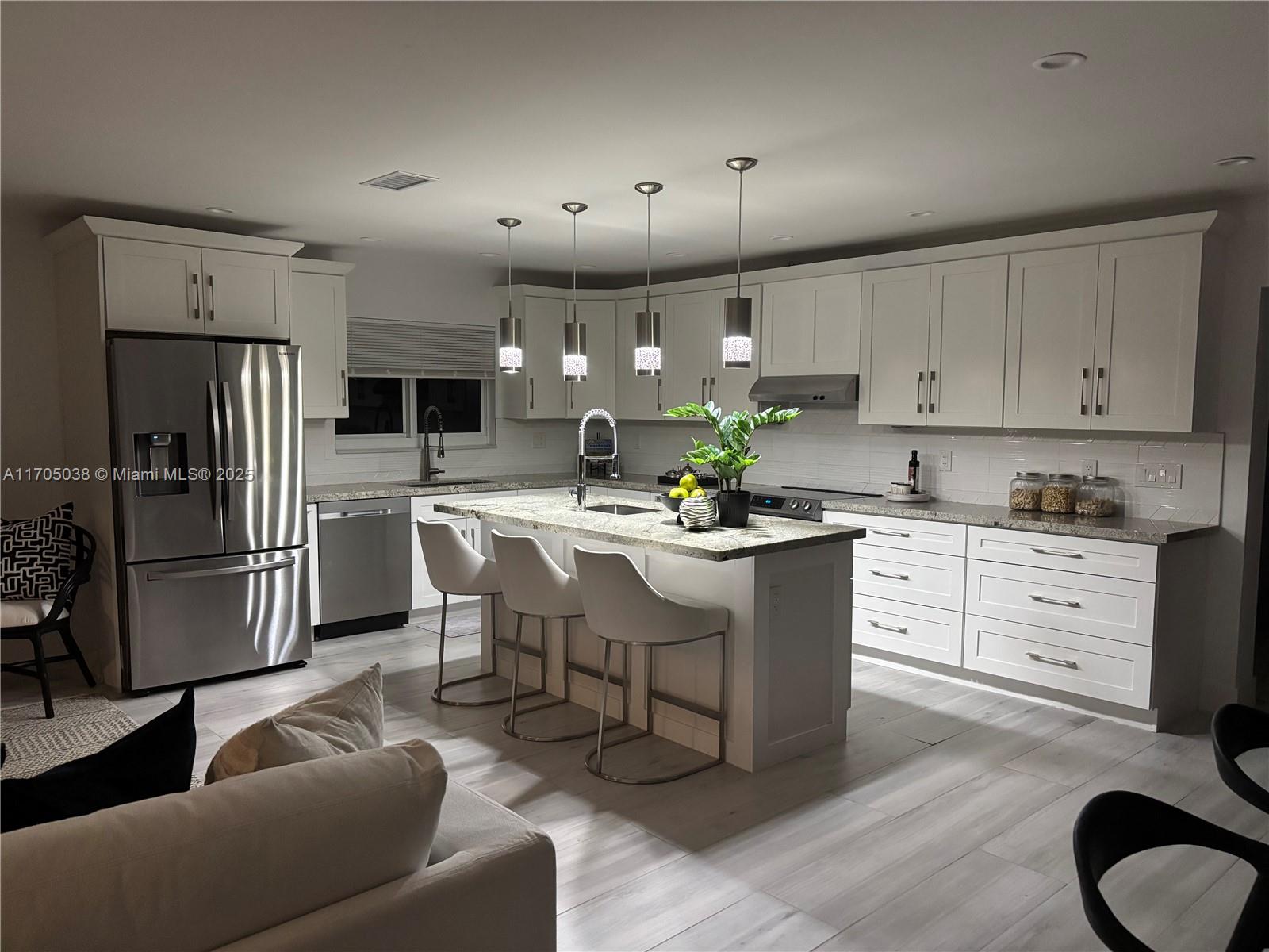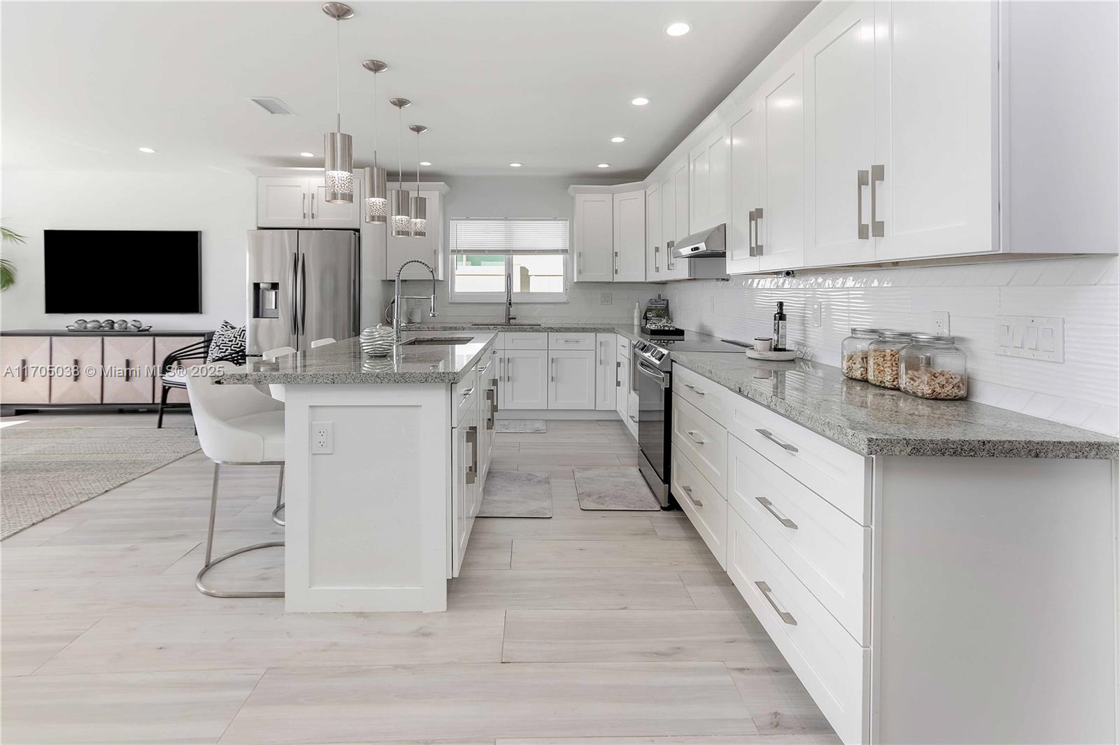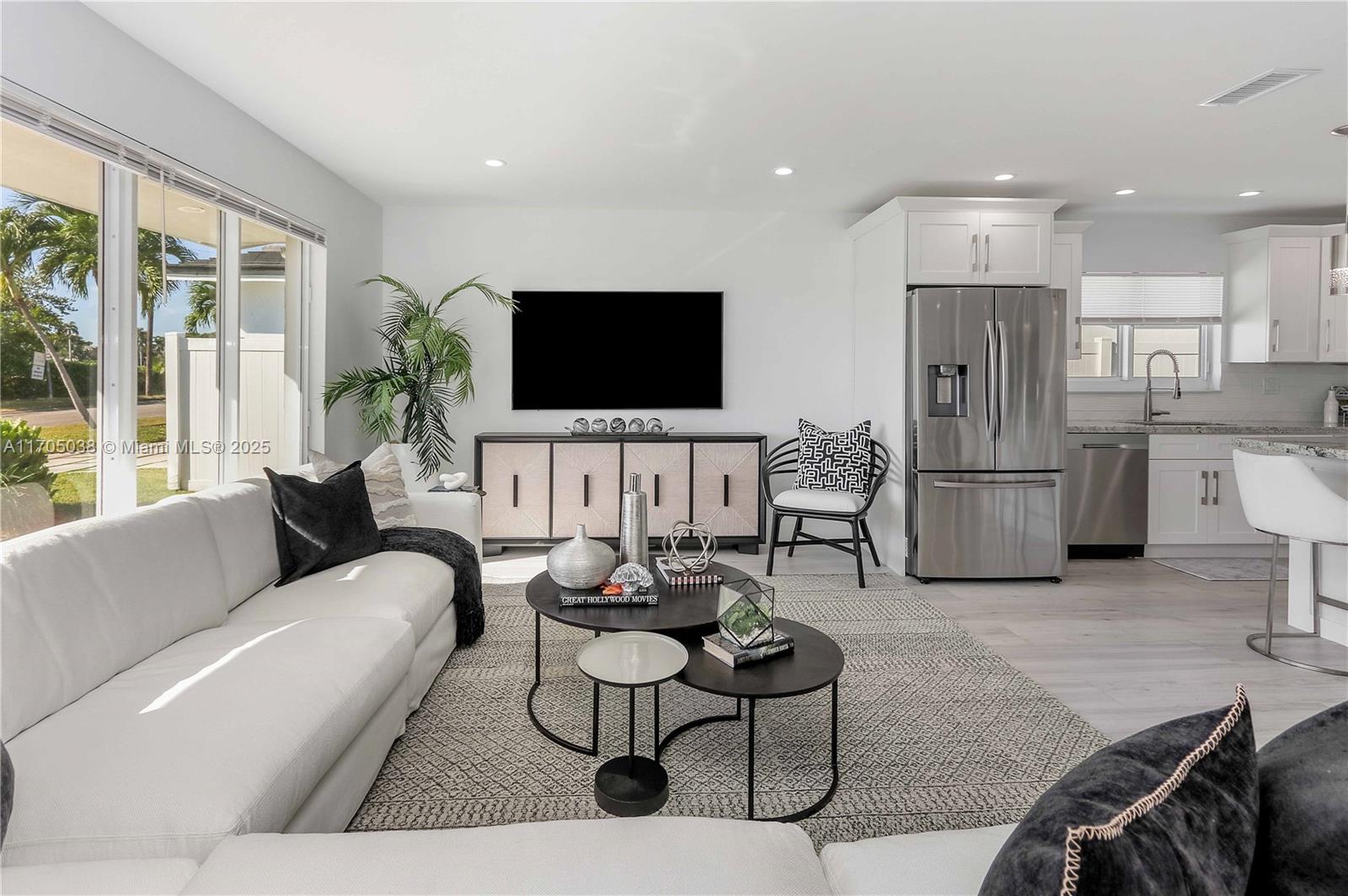 Great opportunity & Boaters Dream 1 minute to Intracoastal 4BR/3BA Waterfront home + dock. No Fixed Bridges, Deep Water & Ocean Access. Wide water views of Hollywood Northlake & Intracoastal. No wake zone! Private dock, with boatlift and spacious walkaround platform. This home has been gutted to the studs & rebuild. Open layout concept with lots of living space. Large kitchen with spacious center island, great for entertaining! Expansive Family room, view facing the lake, Split BR floor plan. Three of the BR'S come with ensuite Bathrooms. A/C Mini split system designed for confort & energy savings. Impact windows/doors & roof 2019. Great size Backyard with room for a pool, backing up to State Park. This home sits on Quite dead End Street. S Exposure, morning sunrise.