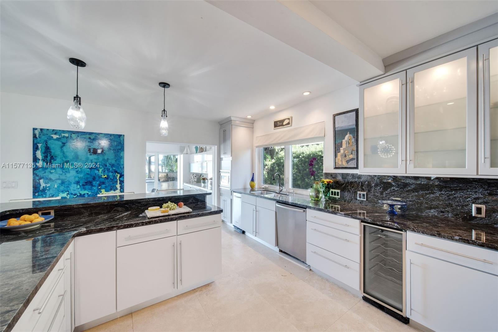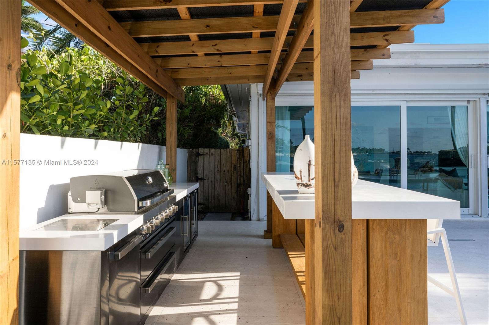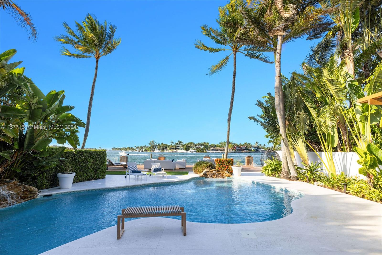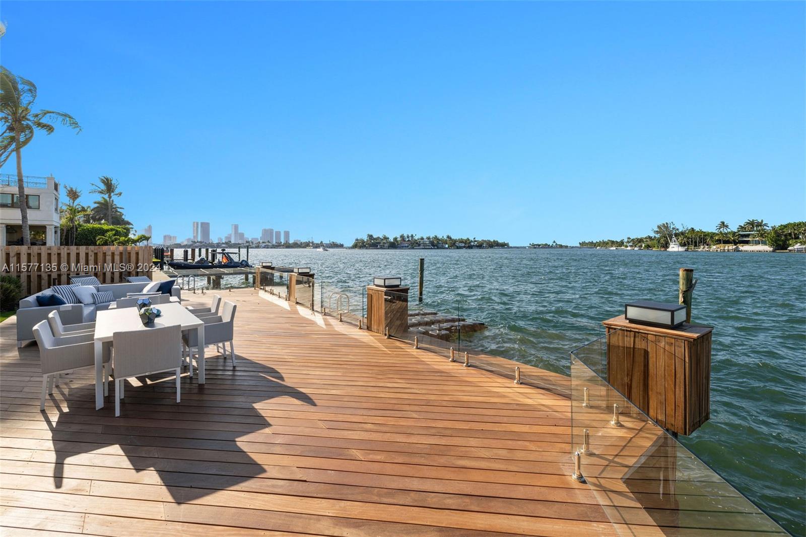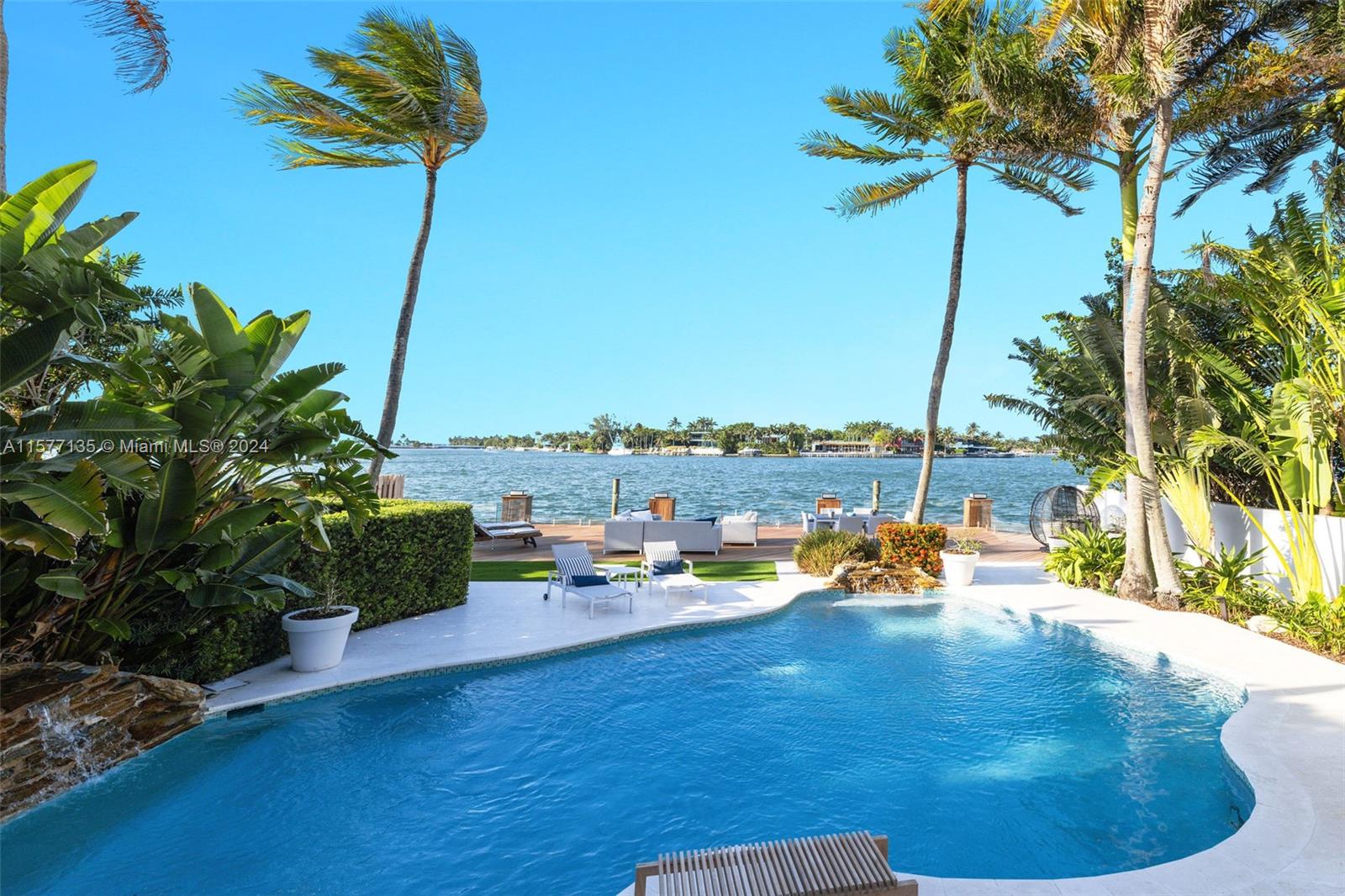 Beautiful waterfront Hibiscus Island pool home with chic finishes and open floor plan. Highly desirable North Hibiscus, the best of the bay with views of the Venetians, South Beach and Edgewater. Four bedrooms, 4 baths bonus spaces of Master sitting room, office/Spa, 2 livings areas, and 2 dining areas. The new outdoor kitchen and huge dock are a perfect spot for watching the boats go by on the bay. Relax in the free form heated pool and spa as the palms trees sway and you listen to the cascading waterfalls. The gated community is island living in the middle of the city. Waterfront park with tennis, basketball, and covered playground, all within minutes from the best Miami has to offer in museums, entertainment and shopping.