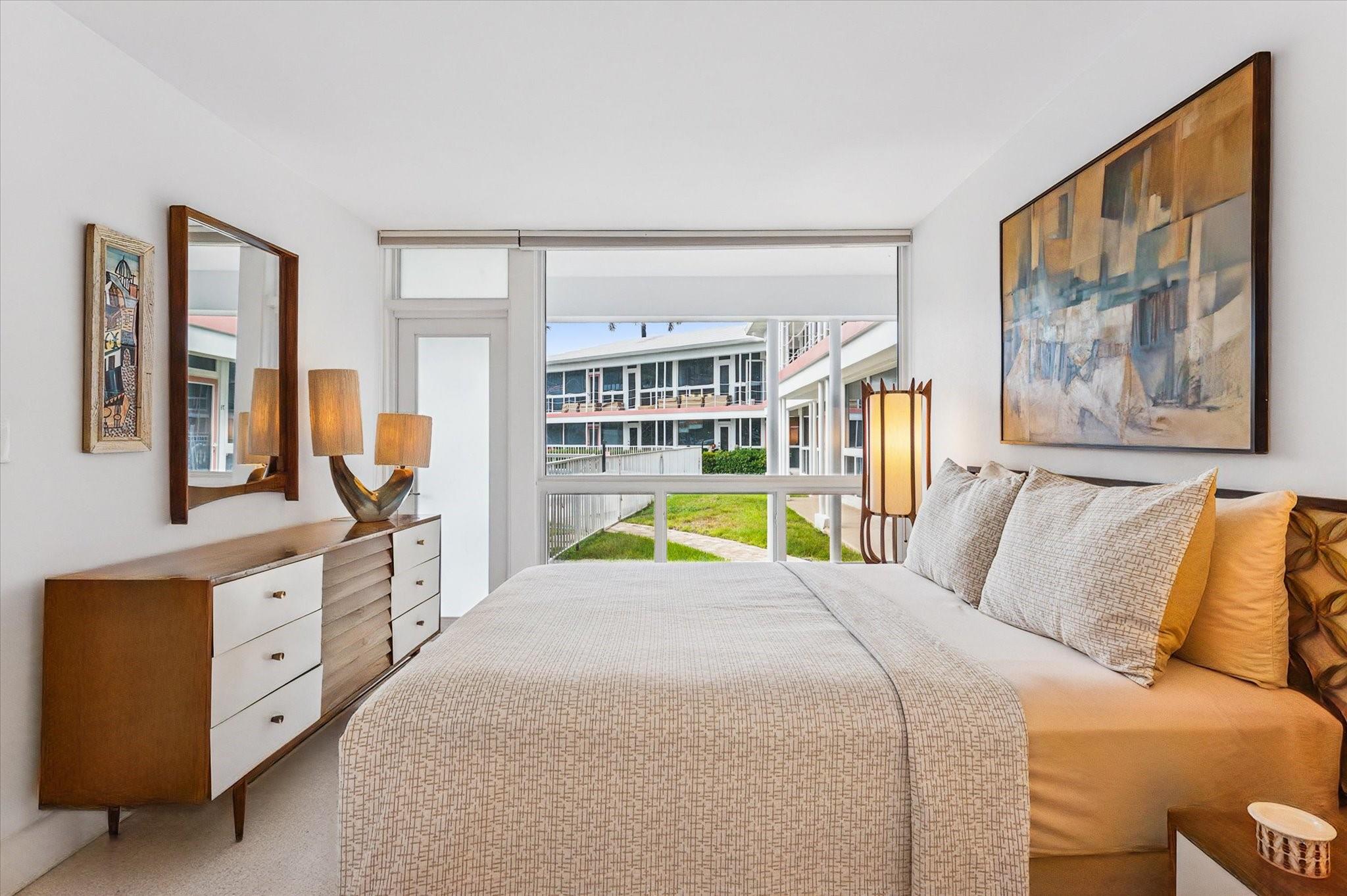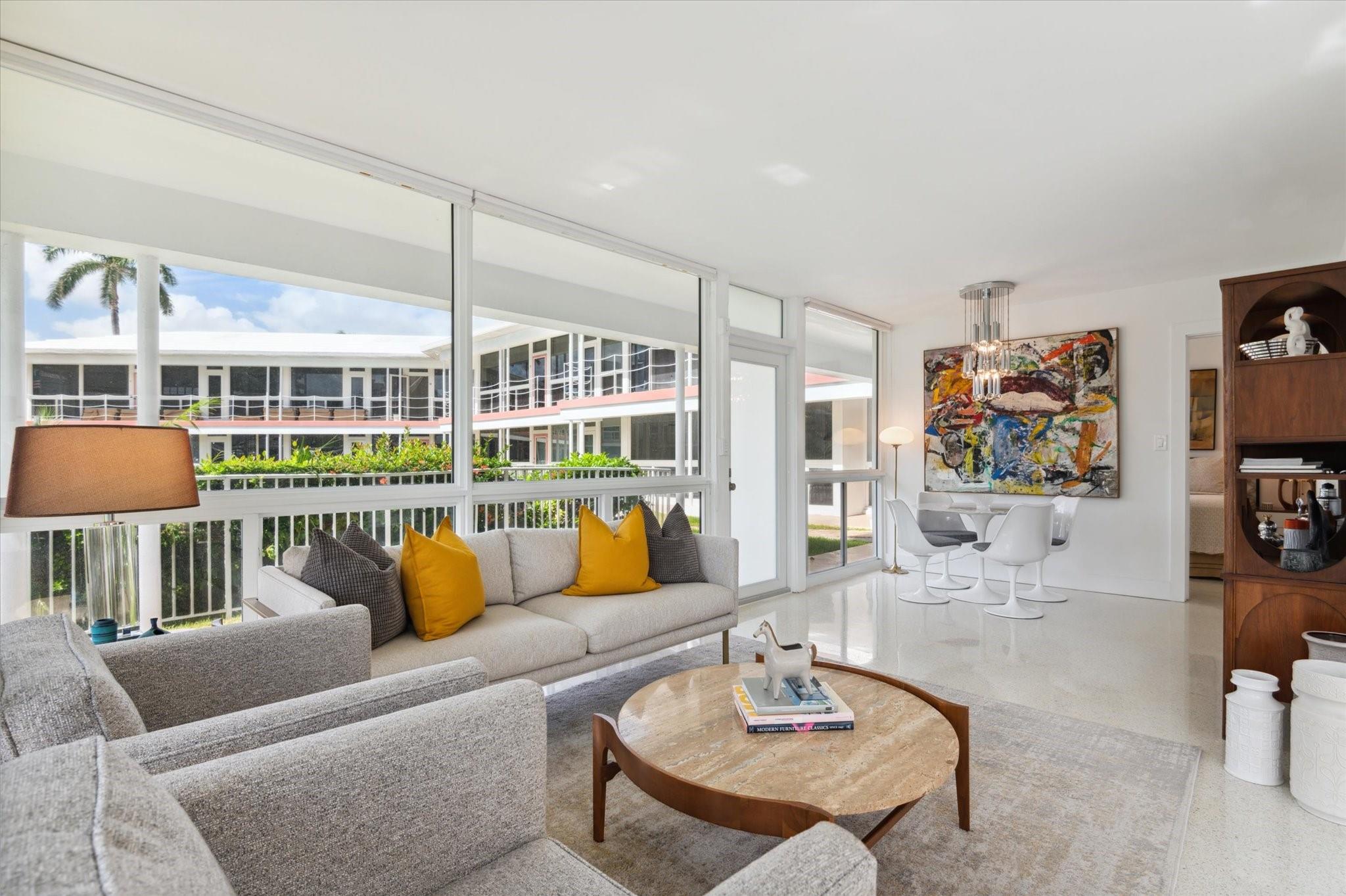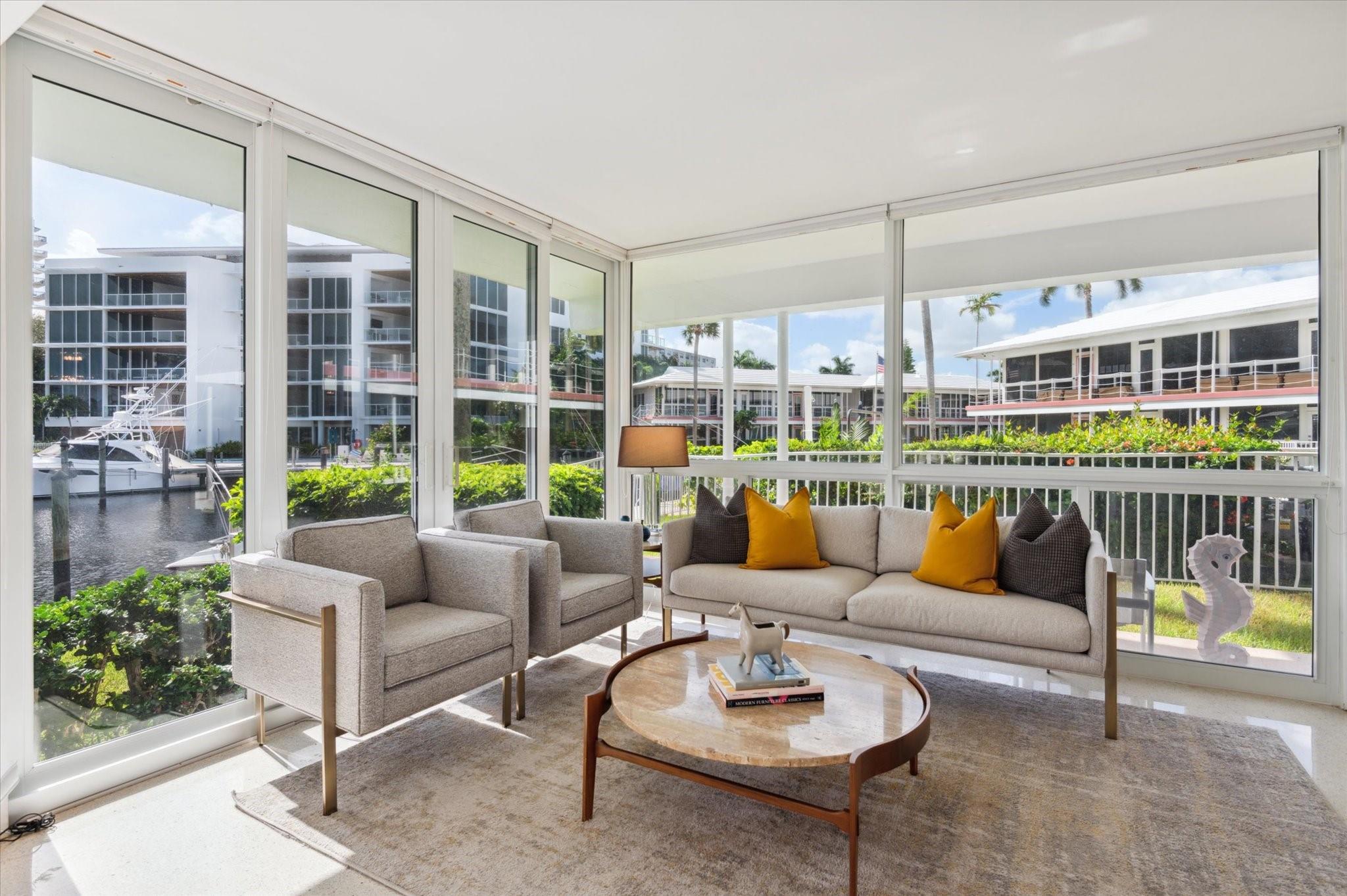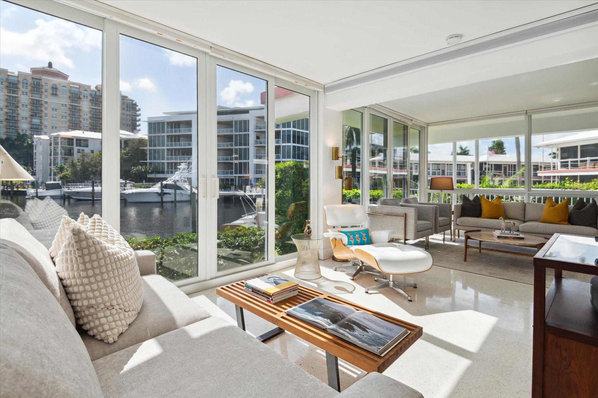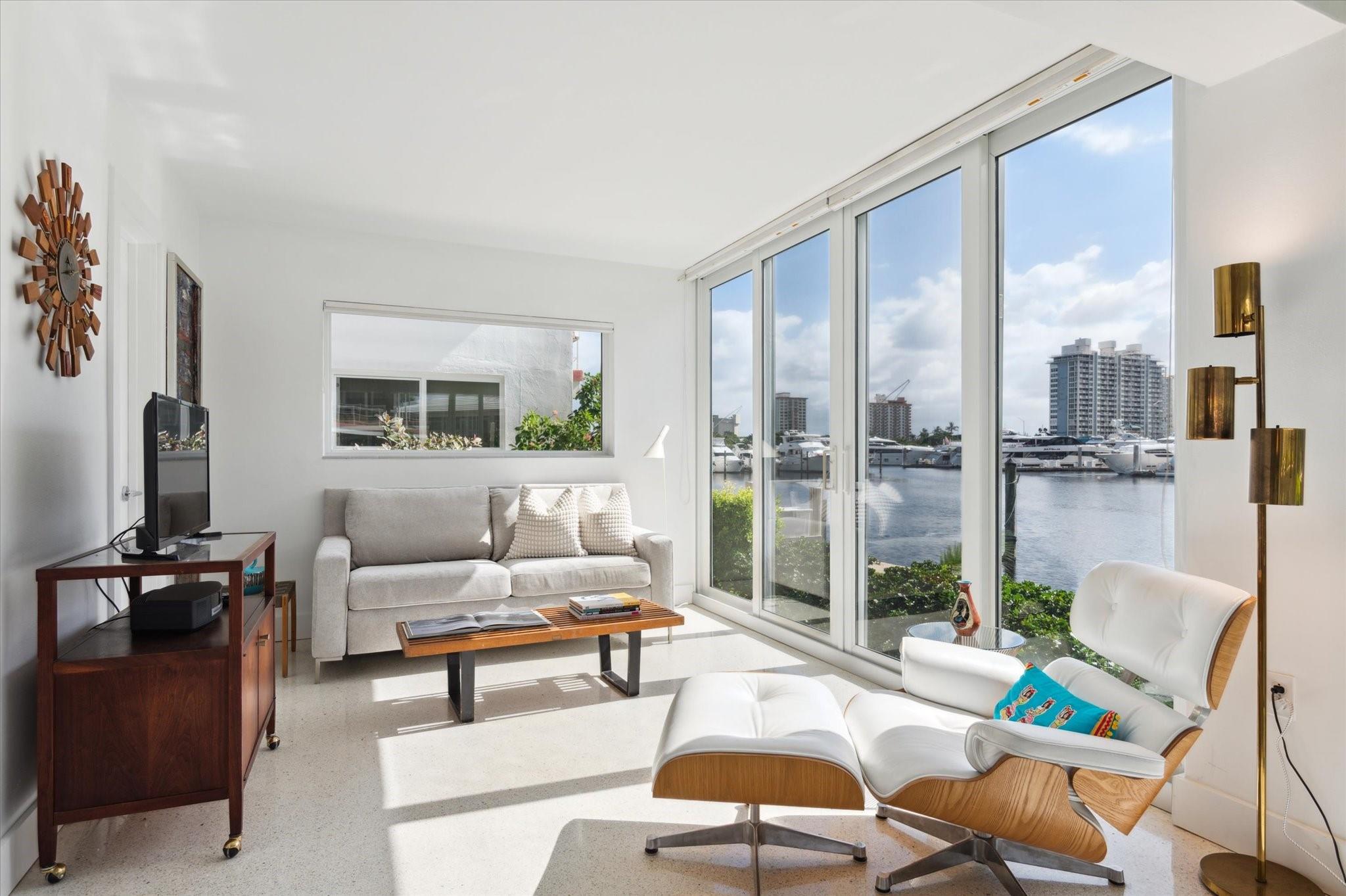 Beautiful water views from this fantastic Mid-Century modern 2/2. This really is something special with wall to wall views, gleaming polished terrazzo floors and all-new floor to ceiling impact windows. Good storage with a washer & dryer. The second bedroom is creatively separated with blinds and its own En-suite bathroom. Enjoy sitting outside by the pool and waterside. This is a boat lover's paradise with multiple luxury yachts in the Sunrise Harbor Marina. The Association also offers affordable dockage from 20-40 feet, when available. Coral Cove is a splendid Mid-Century Modern co-op designed by Charles McKirahan. No Land Lease and fully funded Reserves, conveniently close to supermarkets, Galleria Mall and over the bridge from the Beach.