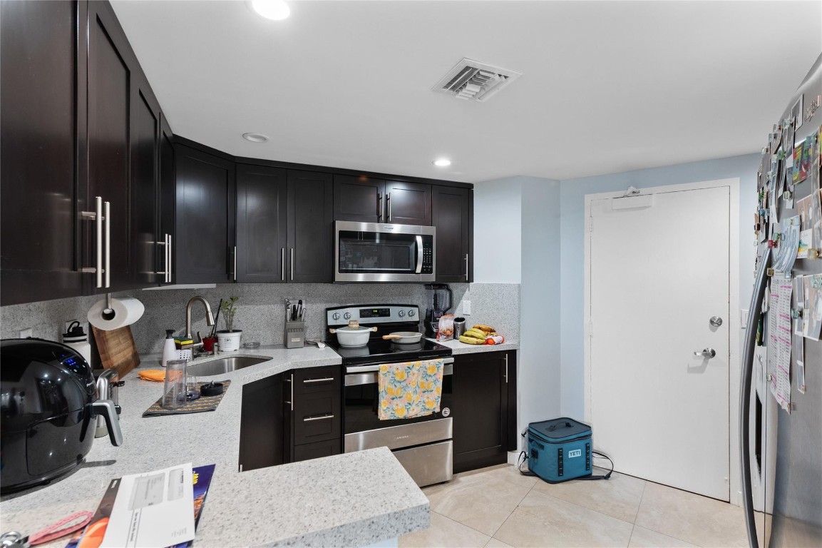 Investor's dream. Long-term tenant already in place but they can also move if the new owner wants immediate occupancy. Beautifully renovated studio apartment with ocean views. The renovation included the conversion of the oversized closet to a cozy bedroom complete with built-in cabinetry. Soffit lighting in the living room and recessed lighting in the kitchen. Matching tile flooring throughout create a seamless floor plan. The kitchen has been completed renovated with dark wood cabinets, stainless steel appliances, and granite counter tops. The bathroom has ample counter space, a shower/tub combination with a glass door shower enclosure. Washer and dryer conveniently located on the same floor. Impact windows and door. Newer air-conditioning unit. FOREIGN SELLER.