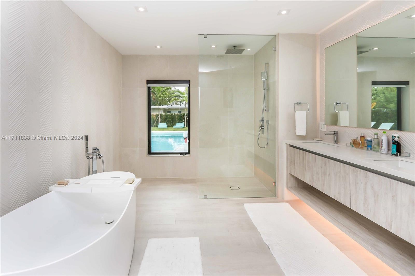 Welcome to this exquisite property located on a rare double corner lot in the heart of Hollywood Lakes. This mid-century marvel boasts 4 beds, 3 baths, a separate maid's room with laundry, and a 2-car garage. The open floor plan with an abundance of natural light features luxurious porcelain terrazzo flooring, a modern kitchen with quartz waterfall counters and high end Bertazzoni appliances. Escape to your oversized primary (combined 2 bedrooms) with a spa inspired bath, seating/office space, & sliders that open to the backyard oasis. The 2024 total renovation includes all new underground plumbing! Perfect for entertaining, the newly resurfaced pool area features a large, covered area, a cabana bath, and privacy hedges. Just a block from Southlake, this home delivers luxury and location!