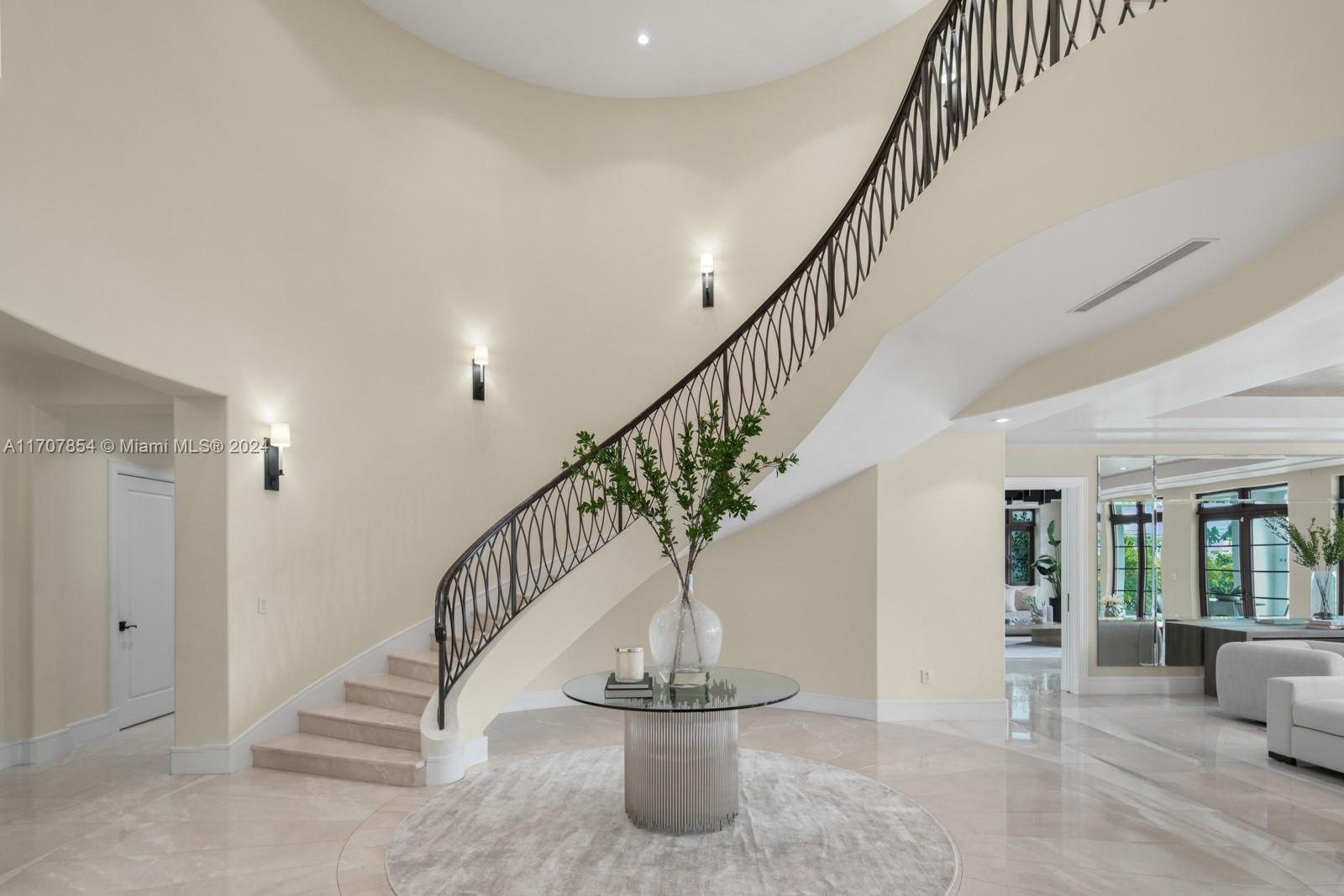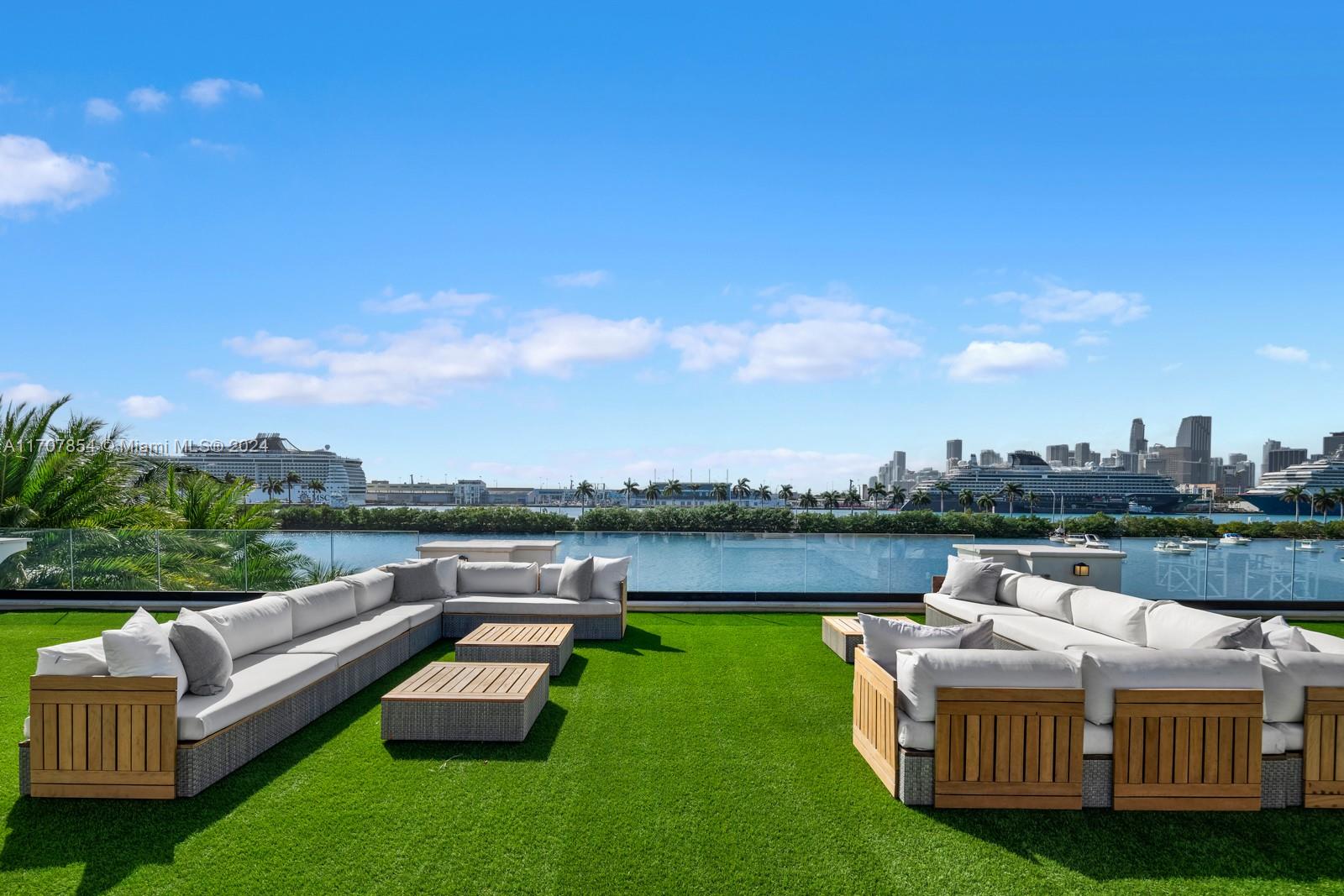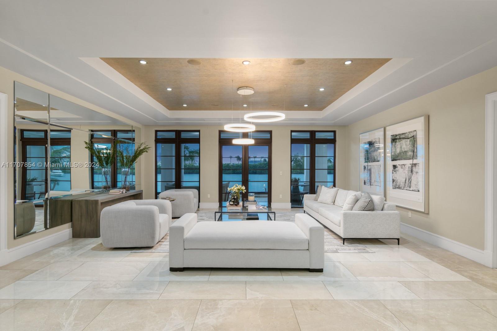 Experience luxury living in this exquisite 3-story waterfront estate, offering 100' of prime water frontage on the prestigious, guard-gated Palm Island. Boasting 8 bedrooms, 9.5 baths, and a 4-car garage, this home offers ultimate comfort and style. Enjoy breathtaking views of the Miami skyline and beautiful sunsets from the expansive 5,000 SF rooftop terrace and multiple inviting living spaces. The ground level includes a spacious media room and game area while the outdoor space features a stunning pool, summer kitchen and a private dock that accommodates yachts up to 90' as well as a boat lift and floating jet ski dock. The home is complete with a private elevator and staff quarters. This is the epitome of elegance, exclusivity, and Miami's vibrant waterfront lifestyle