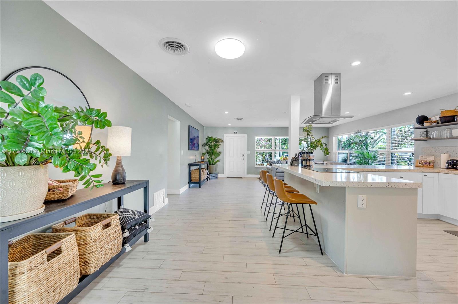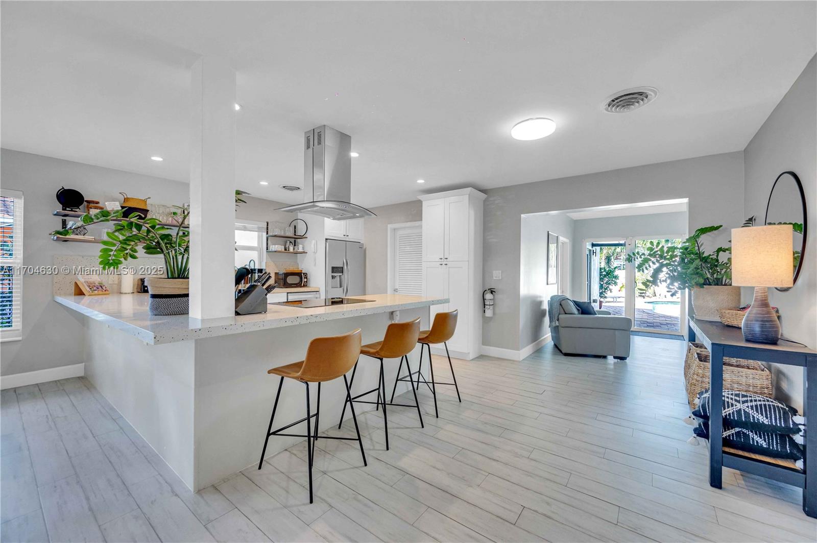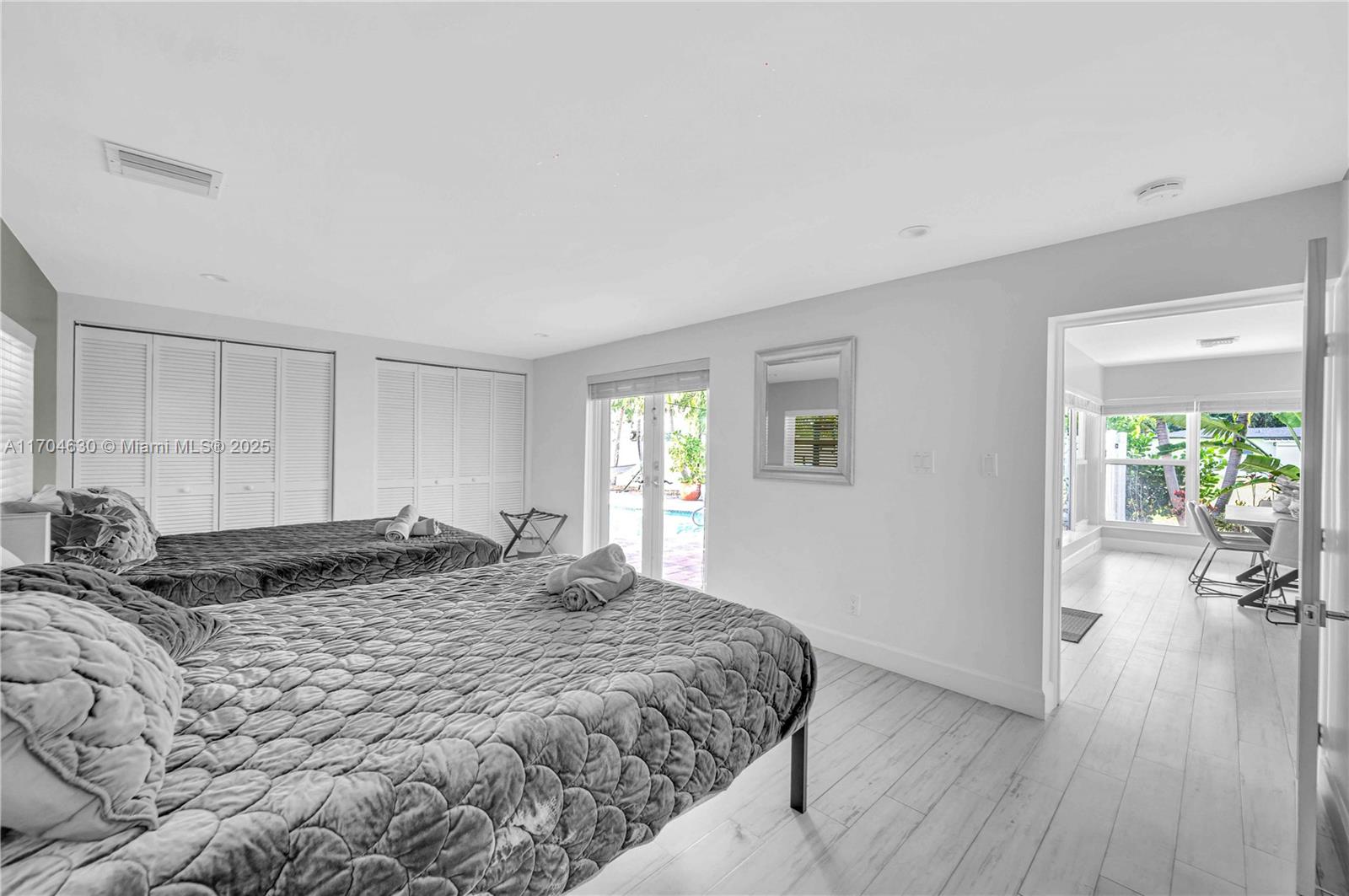 Stunning Pool Home in Prime Hollywood Location. One blocks from South Lake & minutes from the beach, this remodeled 1950s pool home blends charm, functionality, & investment potential. The open floor plan connects living areas to a lush outdoor oasis with pool views. The design easily converts to a 4-bed, 3-bath layout, offering instant equity & increased rental revenue. Upgrades include 4-inch PVC plumbing for an additional full-bathroom in the pantry. The expansive backyard is perfect for entertaining & leisure, making it appealing to renters & owners alike. Both bathrooms have been tastefully remodeled, enhancing modern comfort. This property has never flooded & is a licensed vacation rental, ideal as a primary home or turnkey investment in a prime Hollywood location.