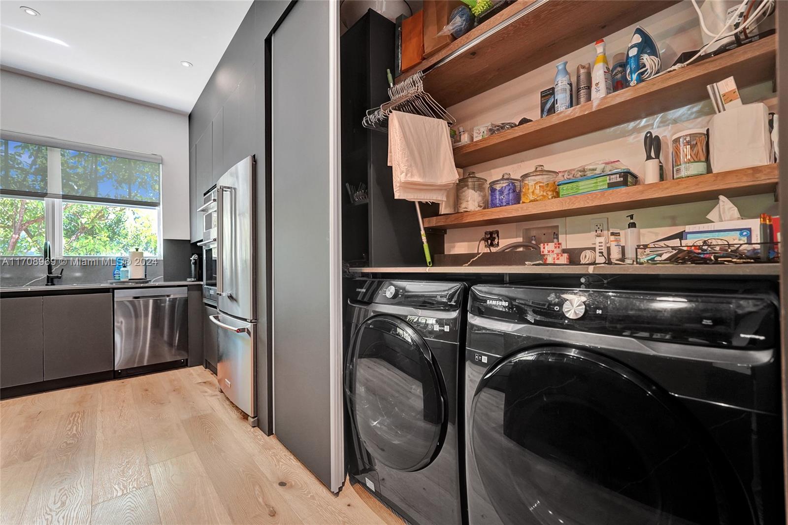Completely Renovated Home. Spacious 3BD/2.5BA with loft area, full 2 car garage and rooftop. Rooftop is ideal for a jacuzzi,bar/BBQ. You can also build up and enclose the rooftop adding more rooms and bathroom. This luxury townhome has 9.5-10 ft. ceilings. The kitchen is stunning with Silestone counters, a gas stove and gas hook ups, ss appliances, wine cooler and lots of storage. Ultra modern design home has white oak flooring, elegant glass railings, steam shower, tankless water heater and hurricane impact windows and doors. The large covered patio is great for your natural gas BBQ. This home is fenced with nice landscape and exterior lighting. You are minutes to Hollywood Broadwalk, beach,dining,shopping,hospital and places of worship. call for your tour today.