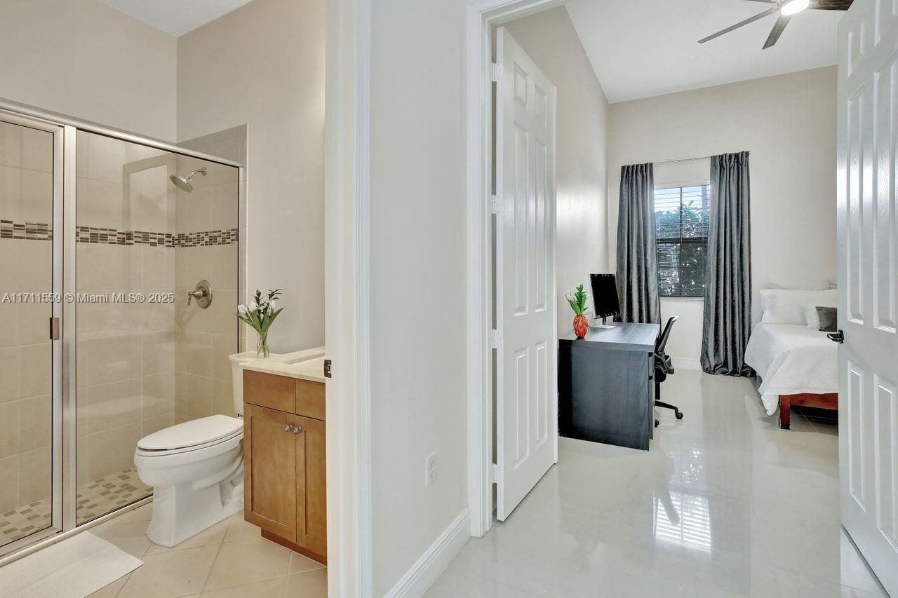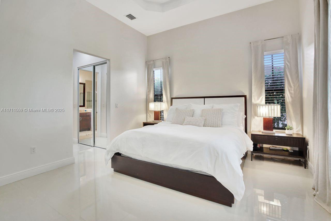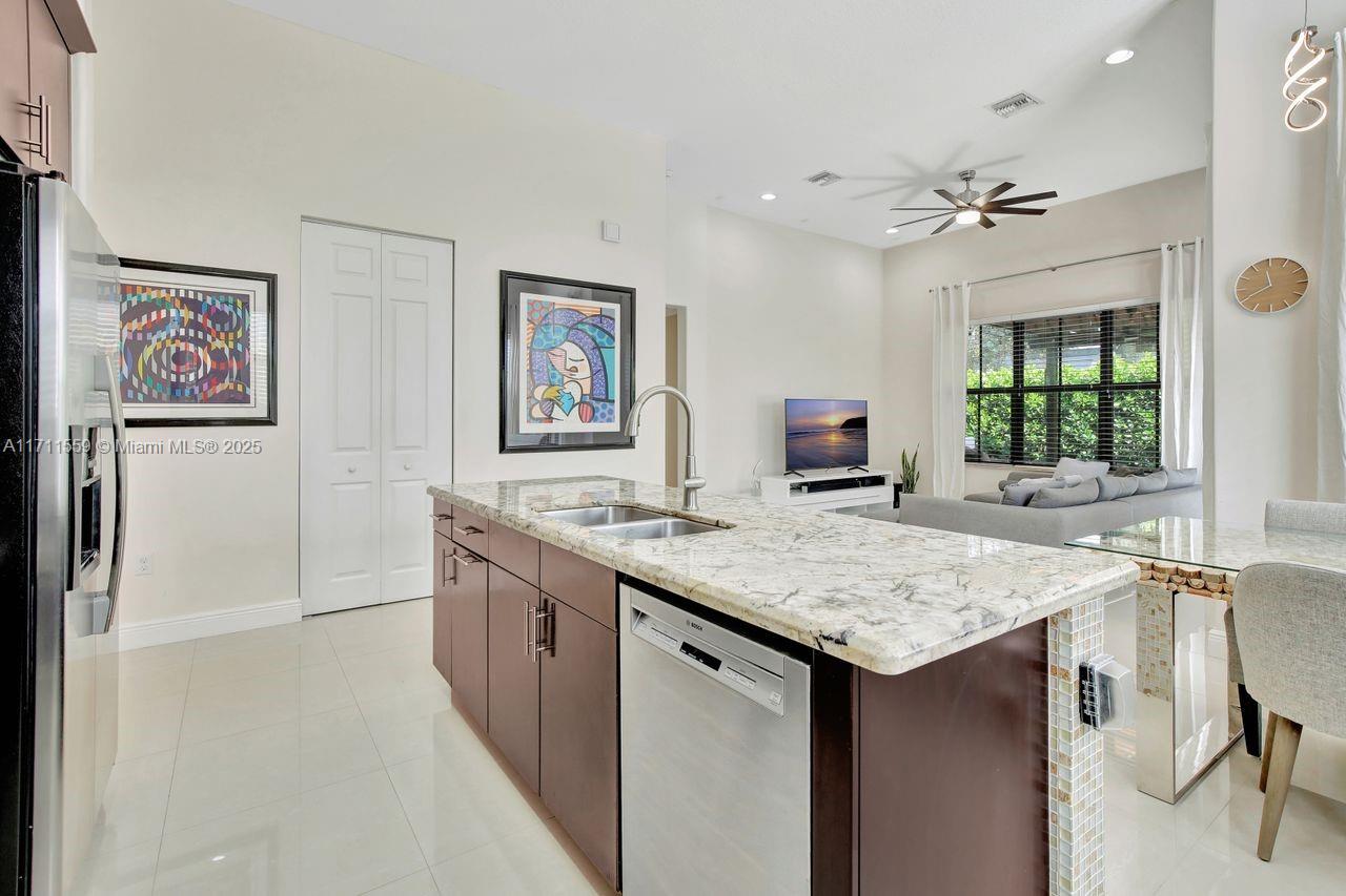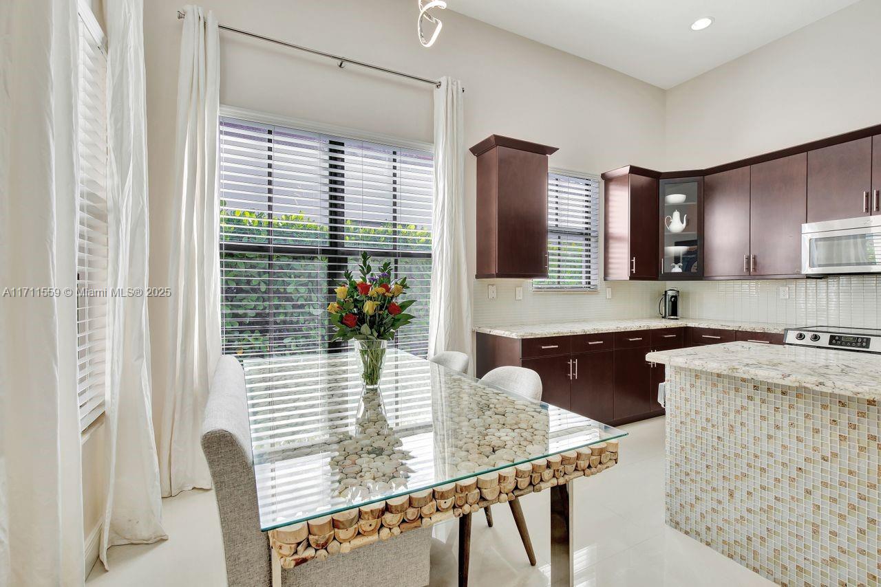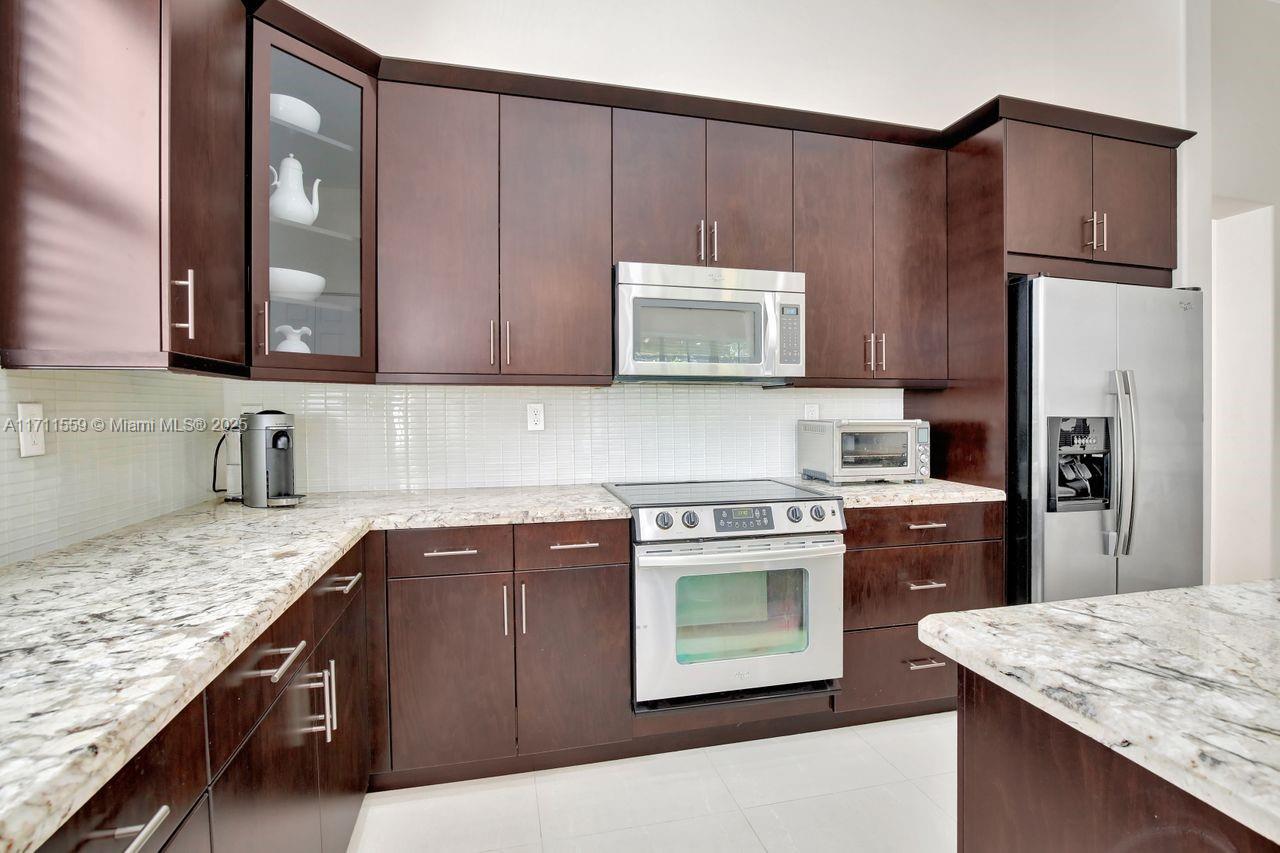 Discover the epitome of luxury living in Cooper City's most coveted gated community, Monterra. This exclusive, resort-style neighborhood offers top-tier security, a clubhouse with a state-of-the-art fitness center, pool, waterpark, tennis, basketball courts, and 3 parks. Four-bedroom, three-bathroom home that blends elegance with comfort. The kitchen features 42" wood cabinetry, upgraded stainless steel appliances, and ample storage complemented by an expansive pantry and opens up seamlessly to the family room and a sunlit breakfast nook. Impact windows. Soaring 12+ foot ceilings, this home feels bright, open and airy. Custom closets throughout. Newly added pergola, perfect for outdoor entertaining or enjoying peaceful evenings at home surrounded by lush trees for privacy.