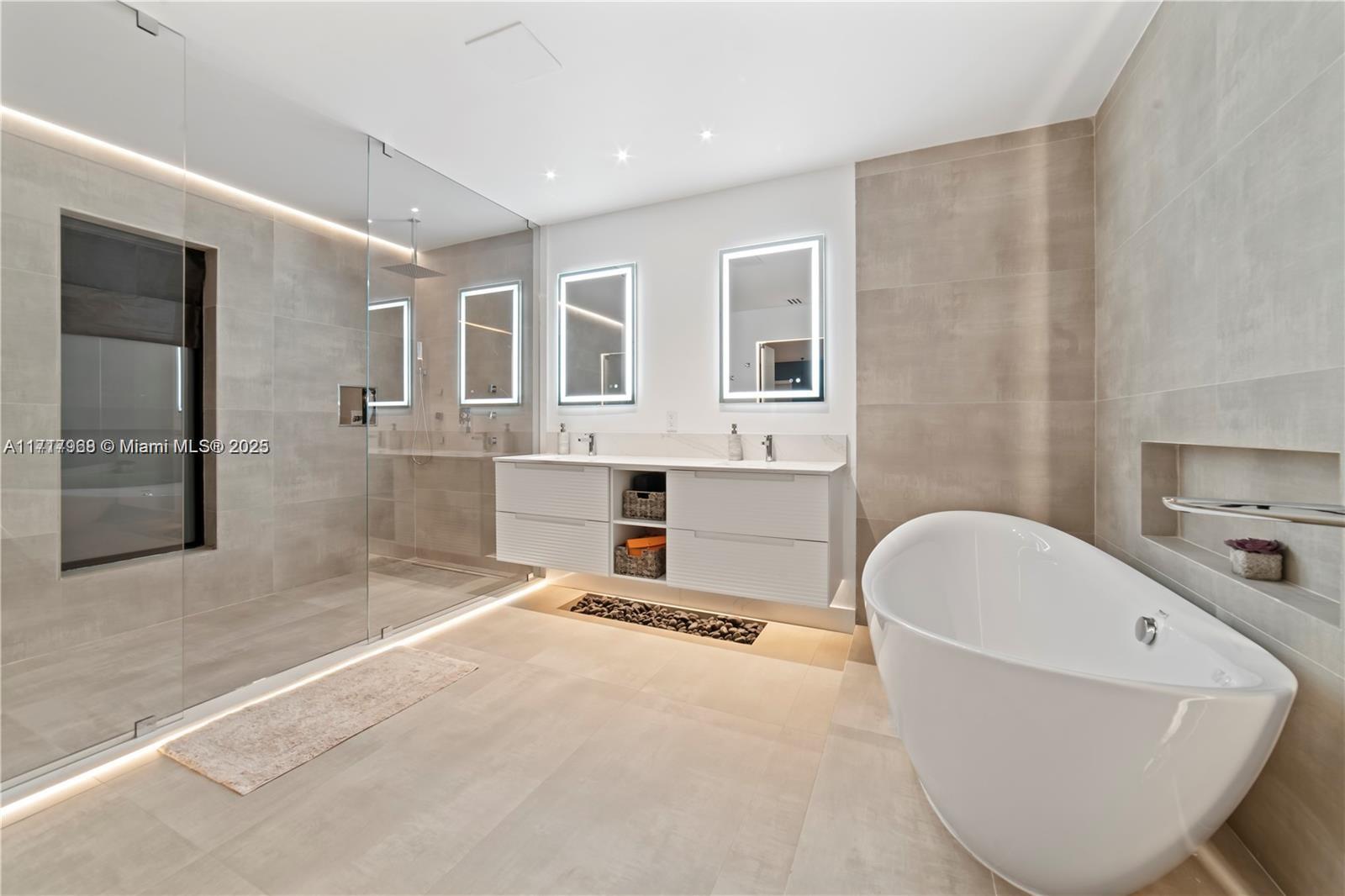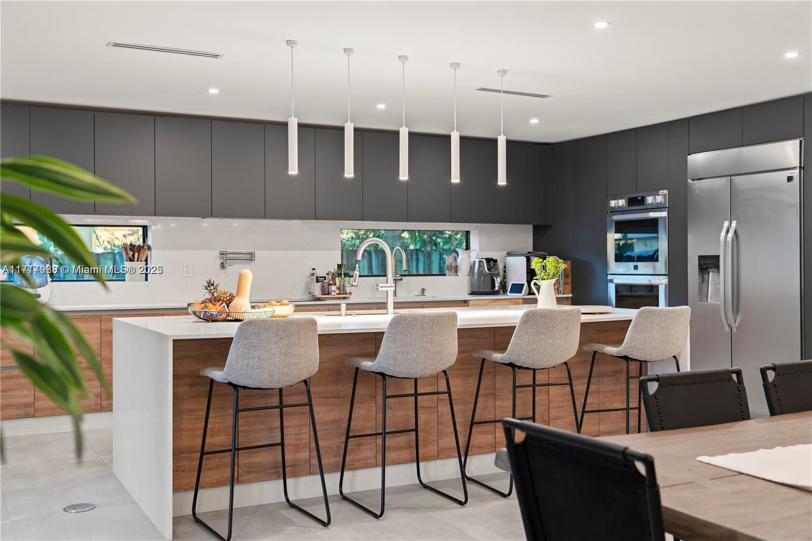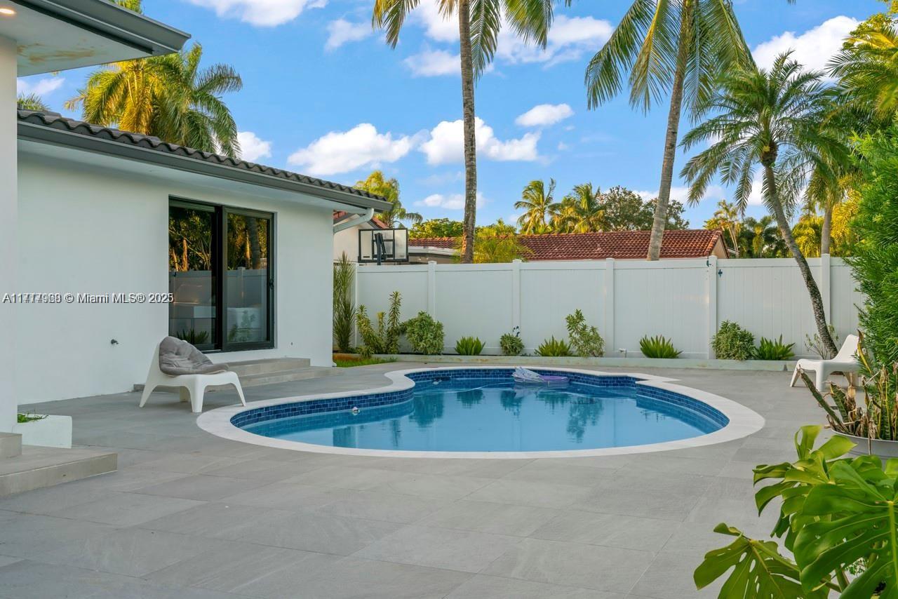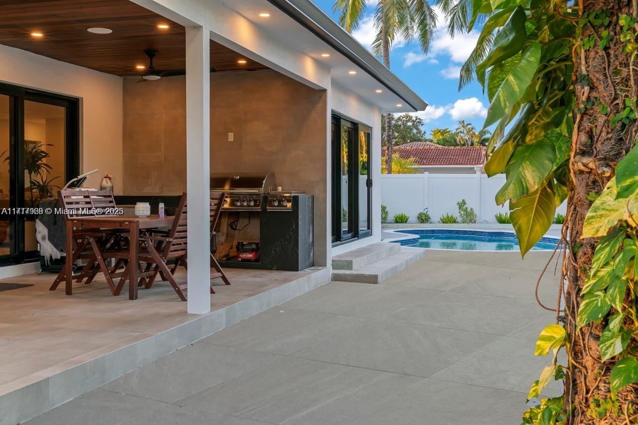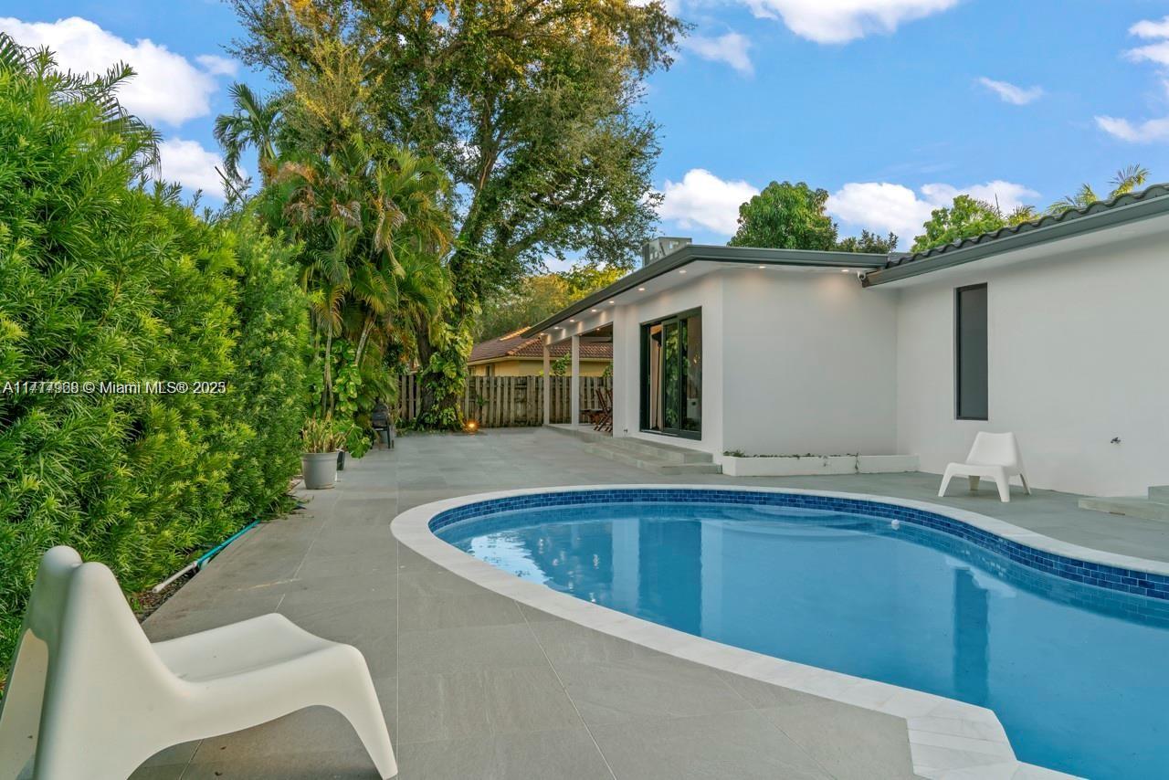 Fully renovated home in the heart of Emerald Hills, 4 beds / 3.5 baths. All renovations done with permits. Open and Spacious layout with new gourmet kitchen with 2 ovens, 2 sinks and big island with quartz counter tops. Big master bathroom with a double shower and freestanding shower, Huge gorgeous custom made walk-in closet. Three of the bedrooms with private full bathroom. New flat roof installed in 2023, Featuring all hurricane Impact windows Security system with strategic cameras, Interior and exterior Sonos sound system, double car garage, tons of storage space, new AC unit, outdoors kitchen with a BBQ area, stylish patio and new finish and outdoor TV stand, renovated pool. A must see!
