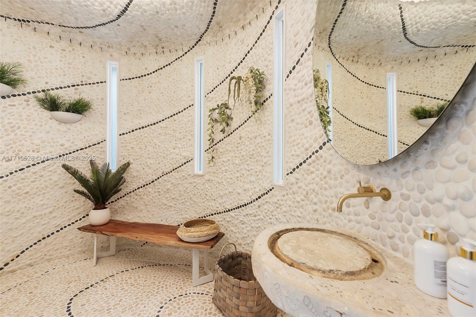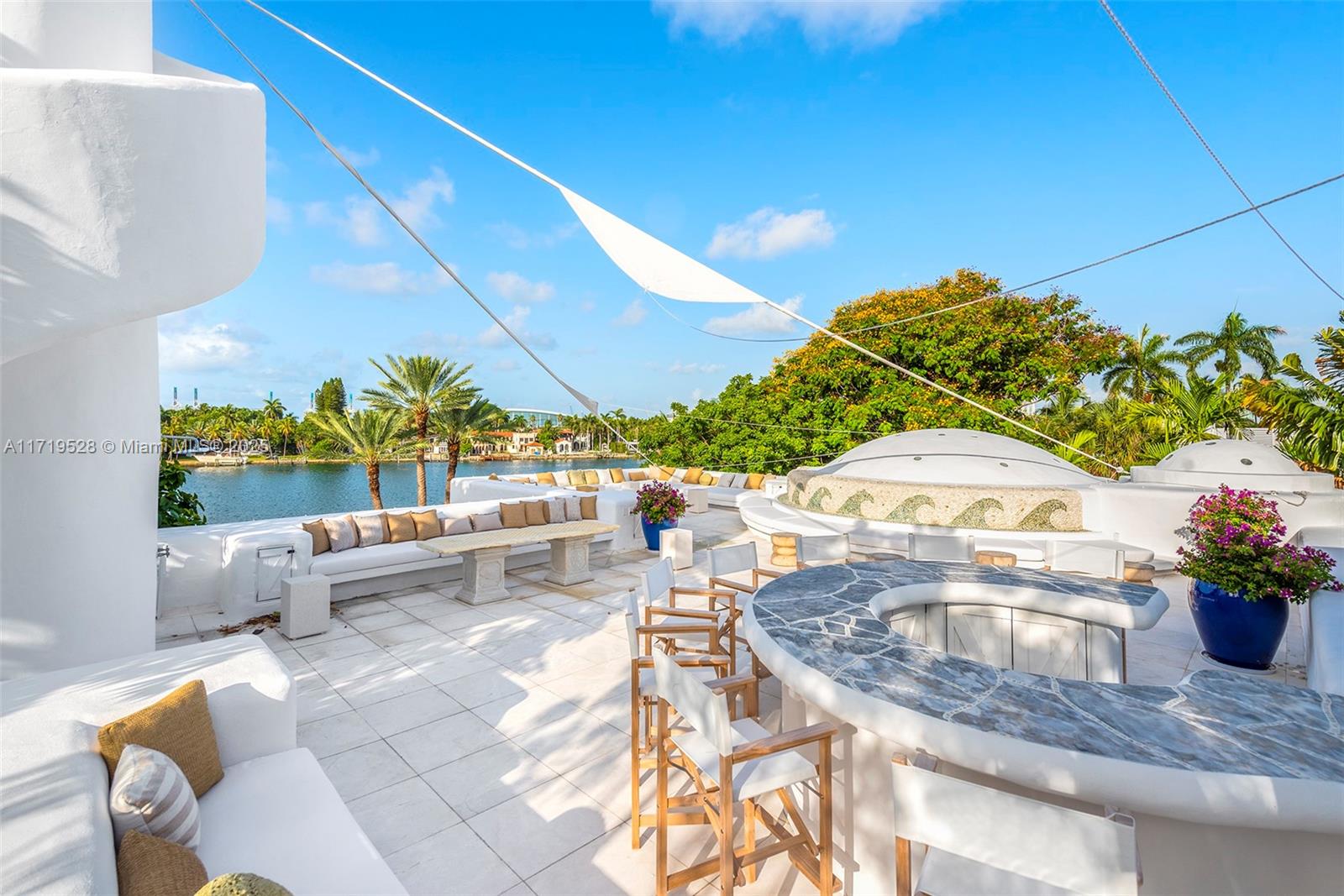This Mykonos-inspired masterpiece, owned by former Ferrari F1 driver Eddie Irvine, redefines luxury island living. Featured in design magazines, this 13,000+ sqft estate offers 7 bedrooms, 7.5 bathrooms, detached guest suites, and Miami's only over-water dock house. Highlights include a two-level pool, a stone footbridge and a three (now outlawed) staircases that descend into the water. Expansive rooftop terraces and a watchtower showcase the stunning southeast-facing views and 150 feet of pristine water frontage. Located on guard-gated Hibiscus Island which features family-friendly amenities including tennis & basketball courts, one of the most highly sought after locations in Miami Beach.