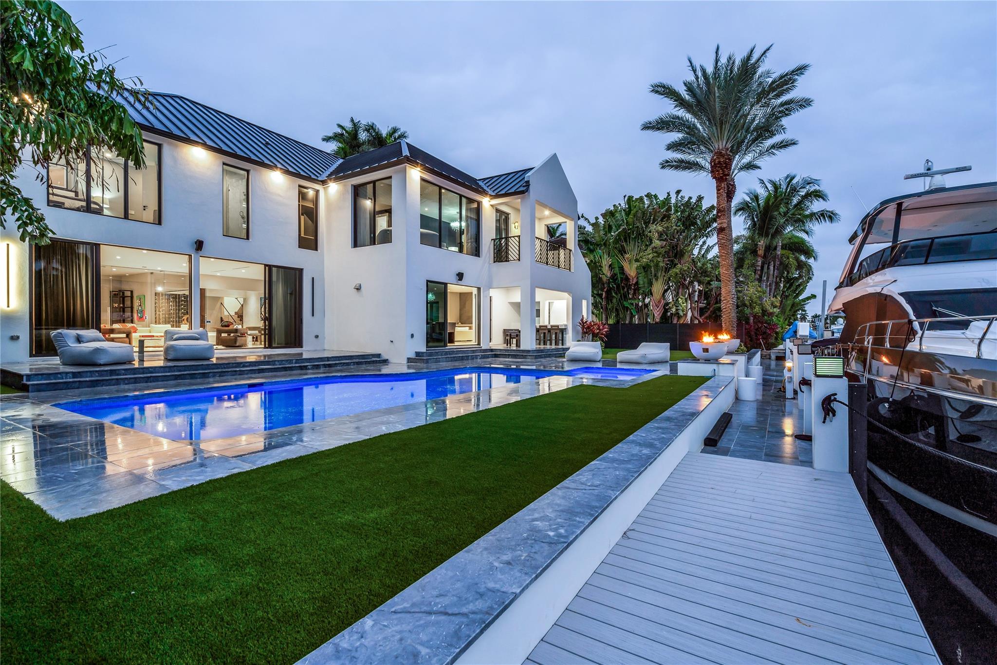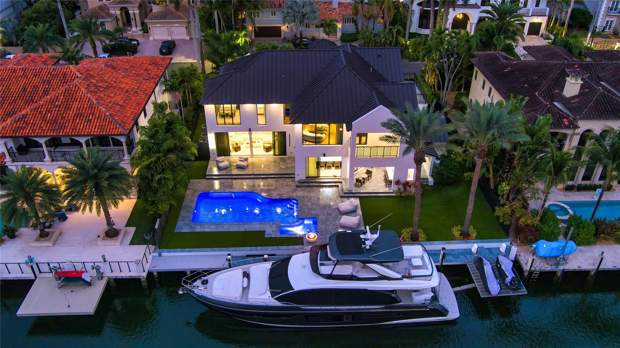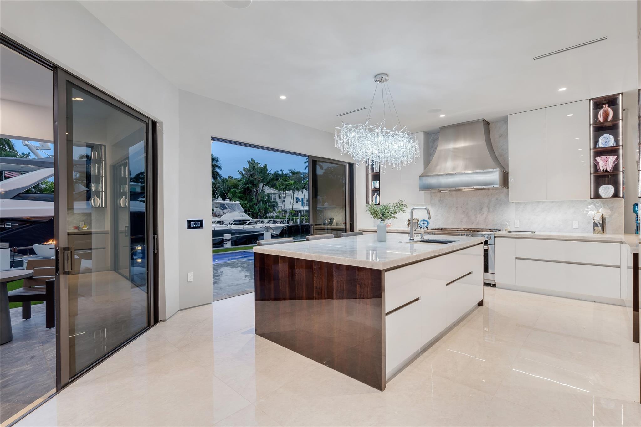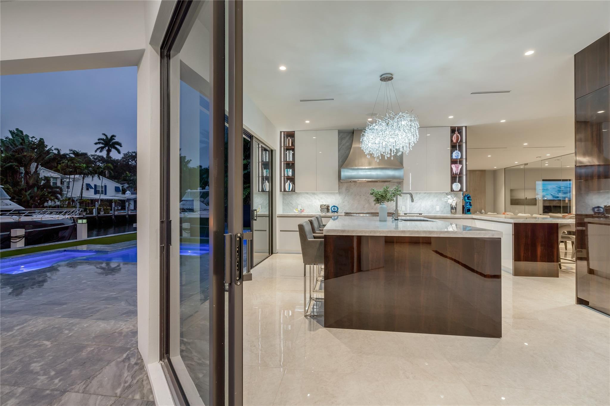 Reimagined Farmhouse Modern-inspired deepwater estate sited on 100 +/- feet of waterfrontage on the Luna Canal in the prestigious South Las Olas Isles, fresh from a multi-year renovation and expansion. An urban chic grid-glass double doors open to light-filled foyer with dramatic glass staircase, sleek porcelain slab floors throughout and walk-in wine/champagne vault that leads to the great room with linear fireplace and glass enclosed office/study. The open waterfront gourmet island kitchen features Eucalyptus lacquered yacht-quality cabinetry, lustrous white counters, luxe Miele appliance package and breakfast bar, an adjacent family room boasts a professional bar. Also on this level is a guest suite, utility room and powder bath (Continued on Supplement Remarks).