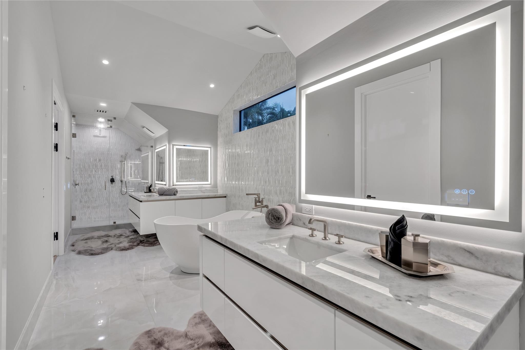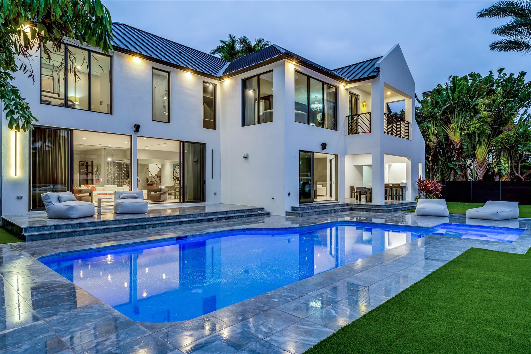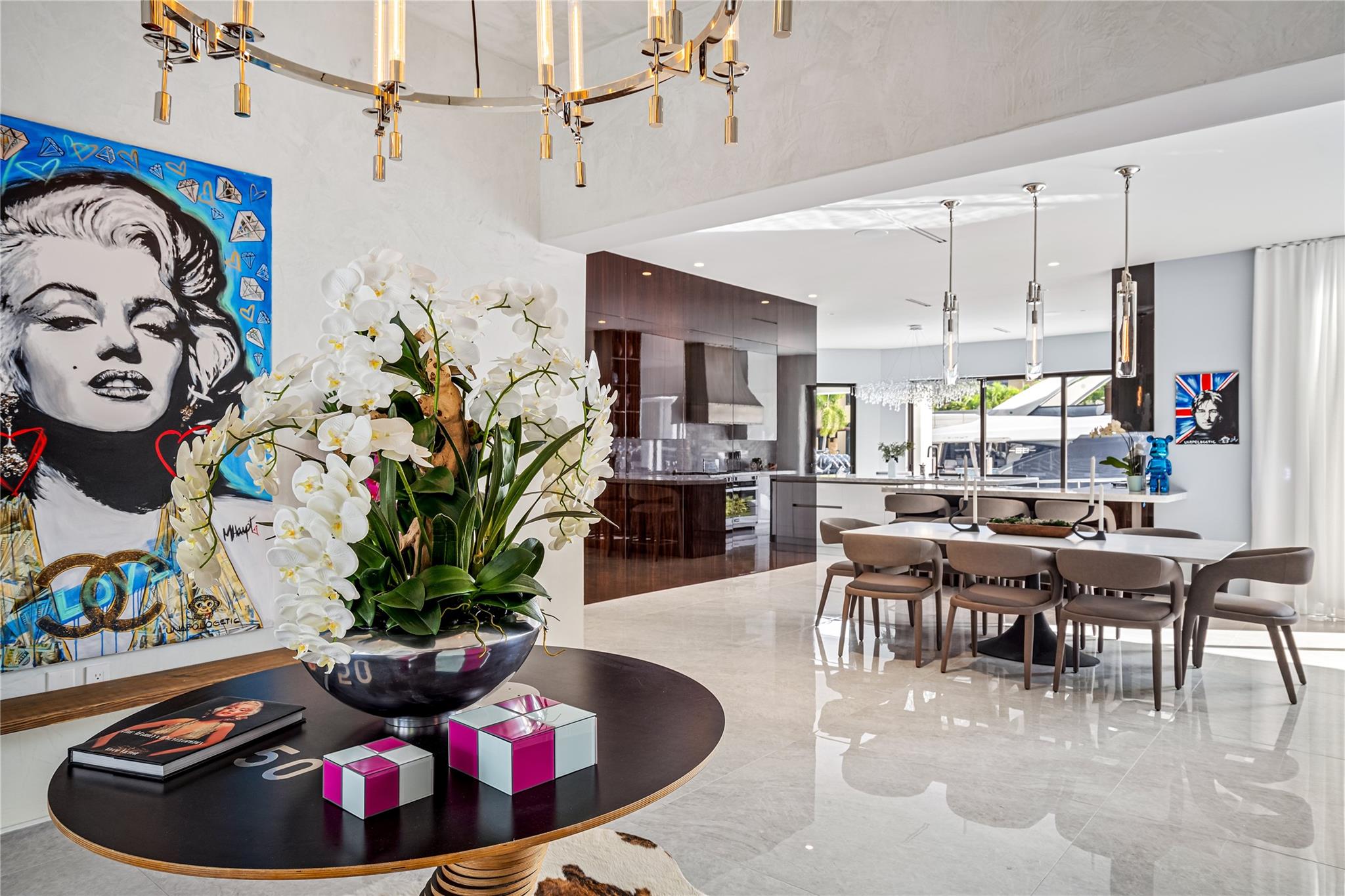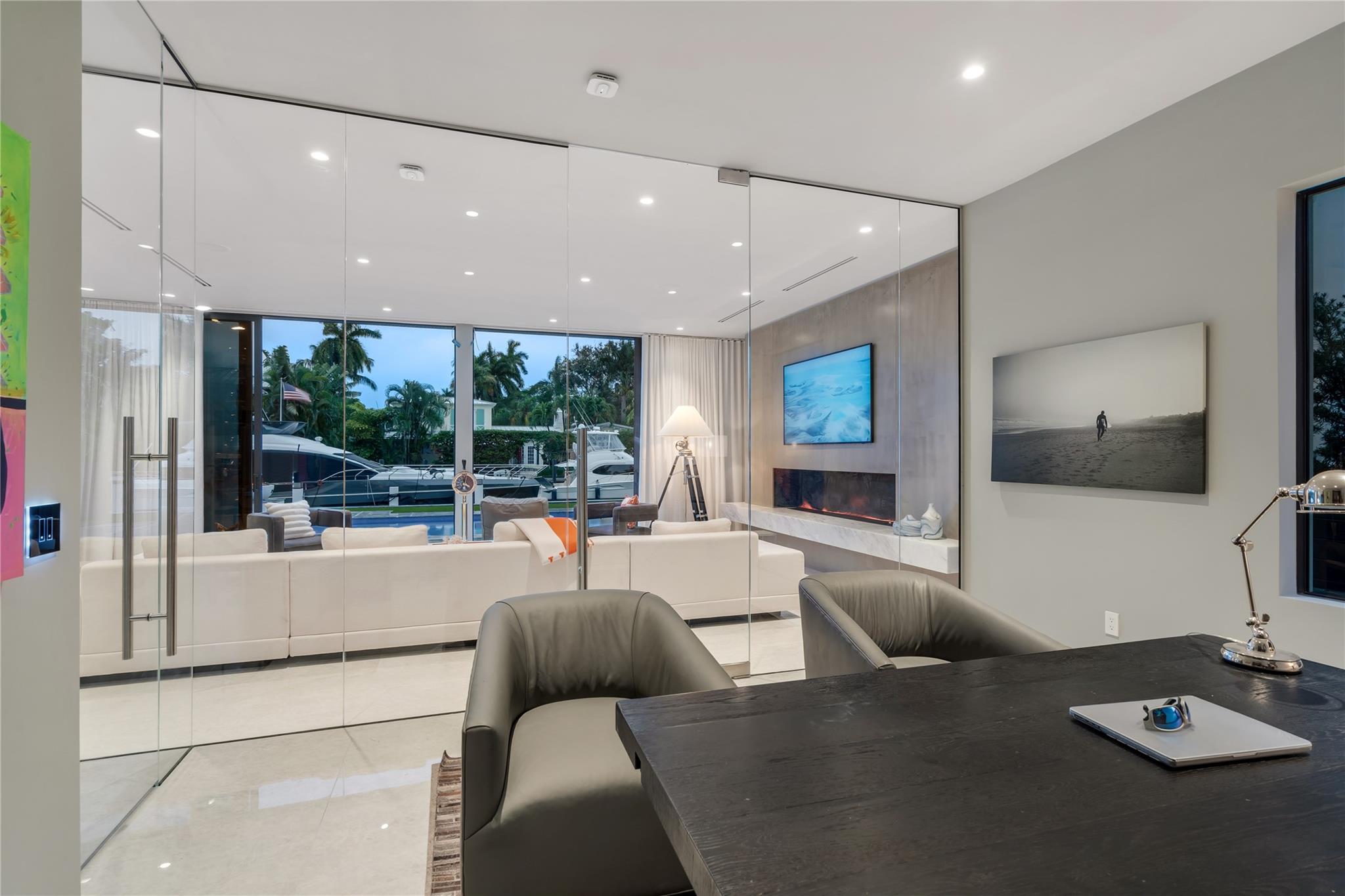 Reimagined Farmhouse Modern-inspired deepwater estate sited on 100 +/- feet of waterfrontage on the Luna Canal in the prestigious South Las Olas Isles, fresh from a multi-year renovation and expansion. An urban chic grid-glass double doors open to light-filled foyer with dramatic glass staircase, sleek porcelain slab floors throughout and walk-in wine/champagne vault that leads to the great room with linear fireplace and glass enclosed office/study. The open waterfront gourmet island kitchen features Eucalyptus lacquered yacht-quality cabinetry, lustrous white counters, luxe Miele appliance package and breakfast bar, an adjacent family room boasts a professional bar. Also on this level is a guest suite, utility room and powder bath (Continued on Supplement Remarks).