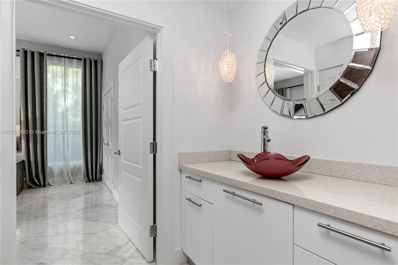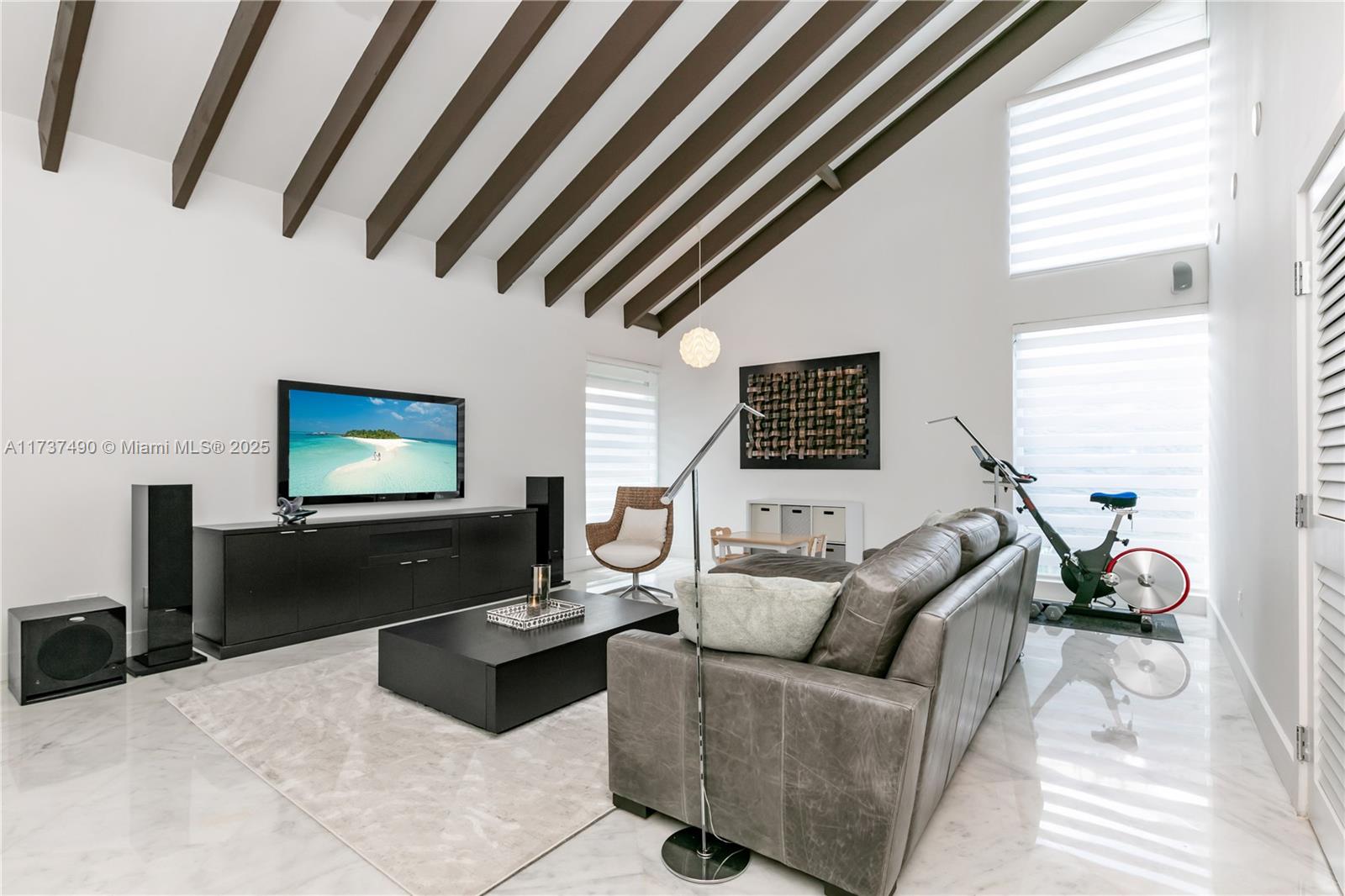 Located in Bay Harbor Islands, one of the most coveted neighborhoods in Miami, is this 5090sqft mid-century modern home rebuilt in 2009! This exquisite property has 4 large ensuite bedrooms, an expansive office and a spacious den. Other features include high ceilings, impact windows, natural woods, stone accents, smart home technology, surround sound, electric blinds, and redone electric & plumbing. The chef's kitchen has top-of-the-line Miele and Subzero appliances. The primary suite includes 3 closets, a spa-like bath with a multi jetted shower and a balcony. Paradise is in the backyard with a custom pool, jacuzzi, sun shelf, summer kitchen, pergola, pool bath, lush landscaping & a butterfly garden. Amazing location: walk to the beach, cafes, shopping, A+ schools, tennis & parks. NO HOA