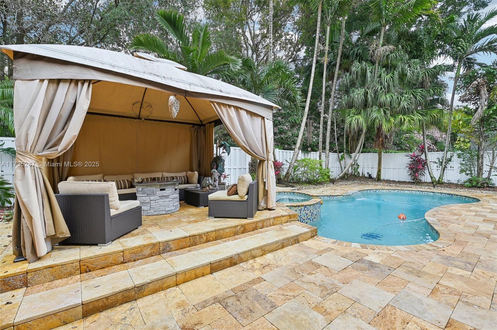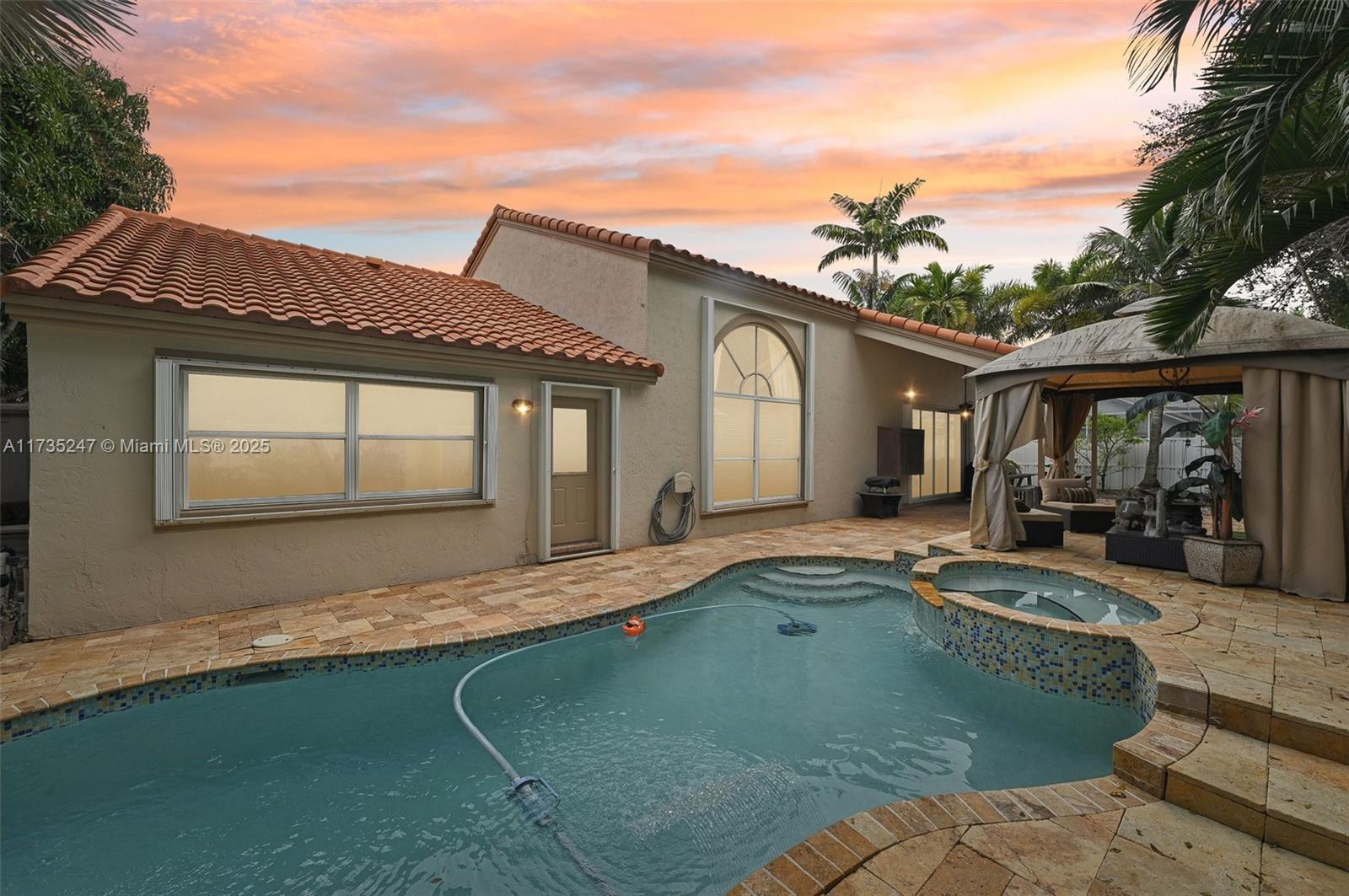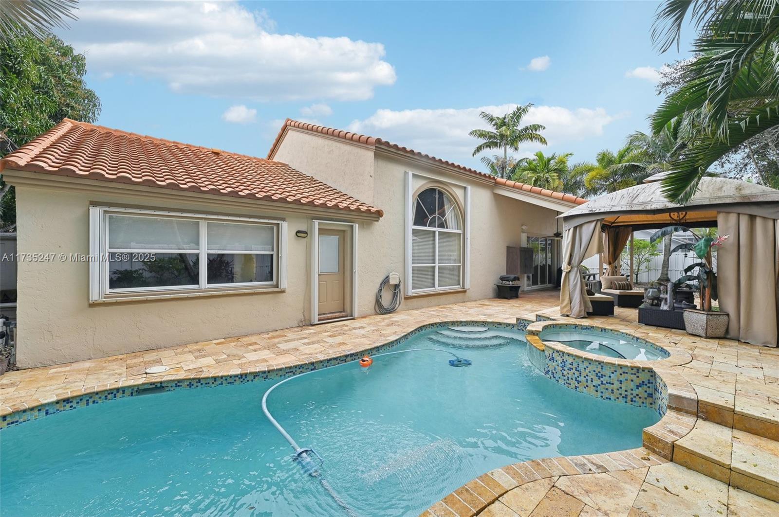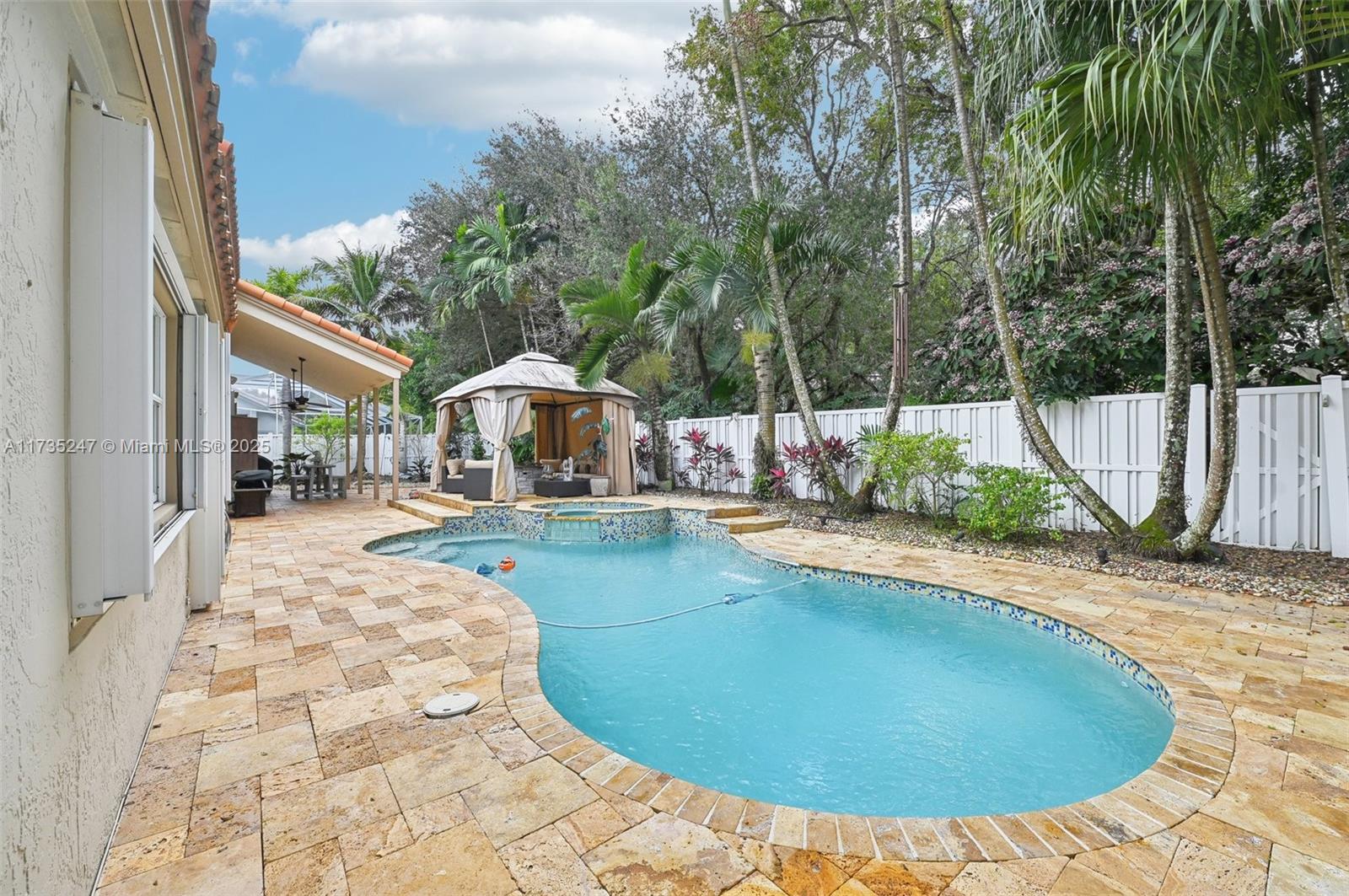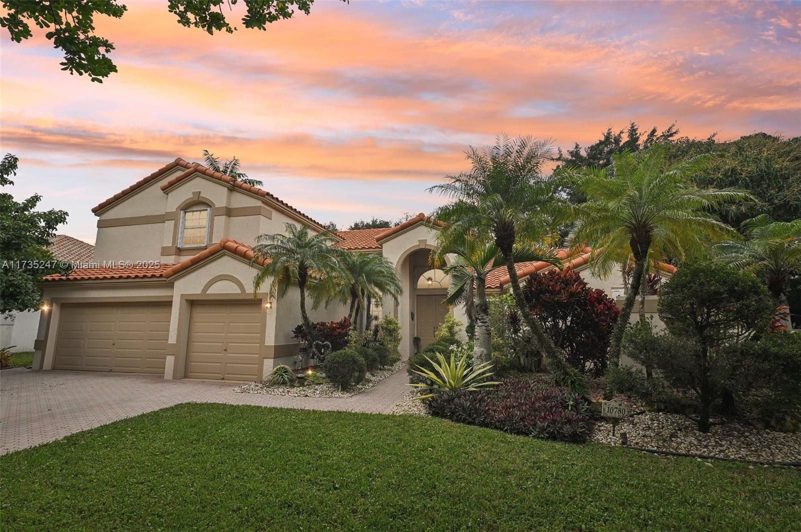 Welcome to this exceptional 5-bed, 3-bath located in the coveted community of Embassy Lakes ? The Isles. The first floor boasts marble tile, upgraded kitchen with large island and seating, top-of-the-line appliances and plenty of storage. The primary bedroom is located on the 1st floor with a spa-like bathroom including a double Jacuzzi tub, extra-large shower, and premium finishes. Outdoor tropical living features a travertine deck, pool with waterfall, gazebo, fruit trees and vegetable beds. Additional Features: 6-YEAR OLD ROOF, accordion shutters, electric car charger, freshly painted exterior Amenities include 24 hour manned gate, pool, pickleball, tennis, gym, newly renovated clubhouse, playgrounds, basketball. Zoned for A rated Schools & walking distance to houses of worship