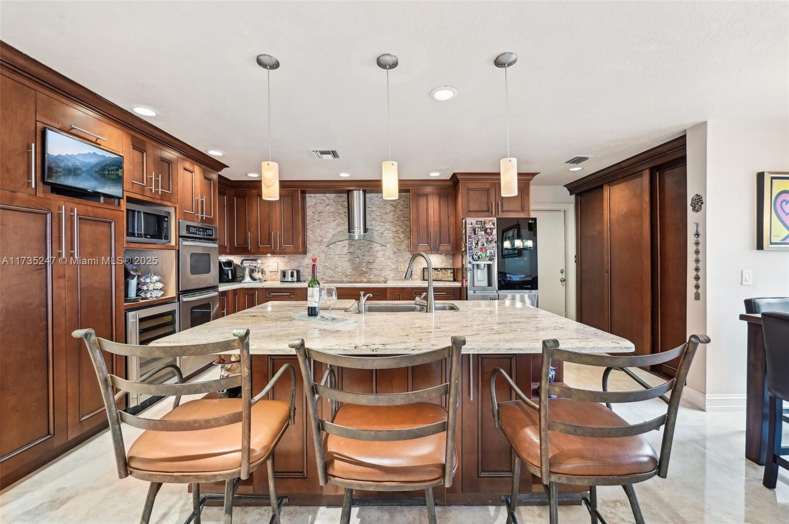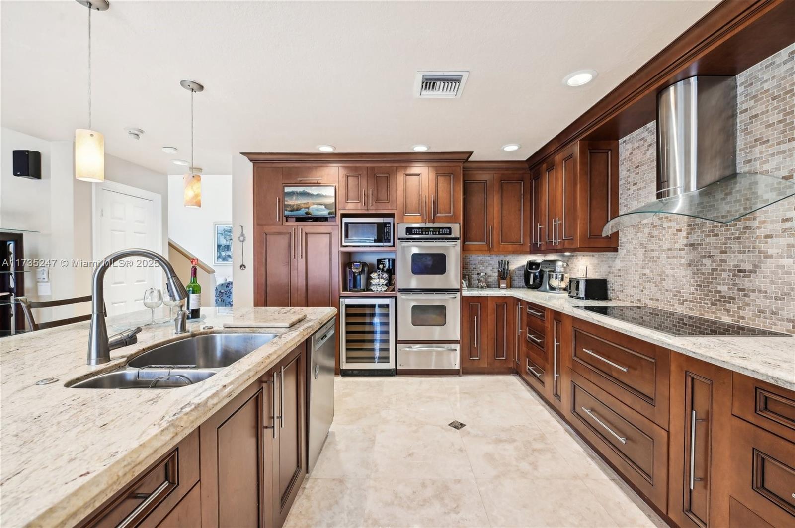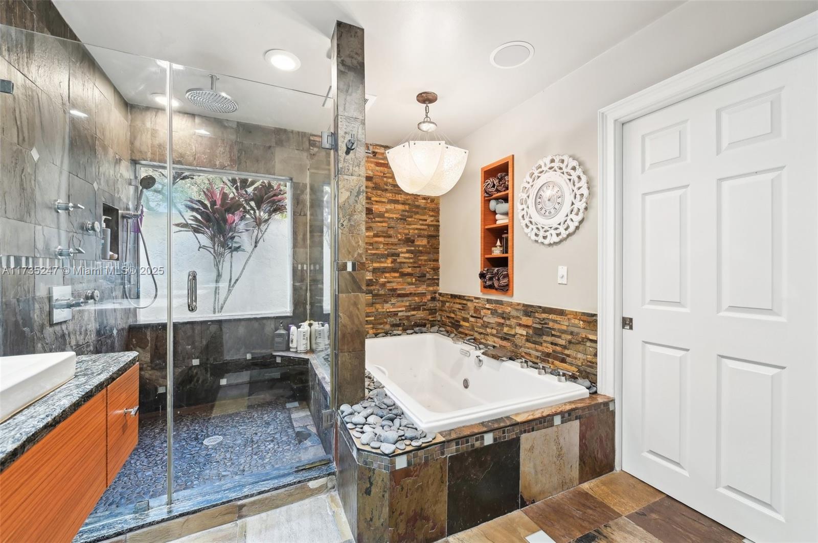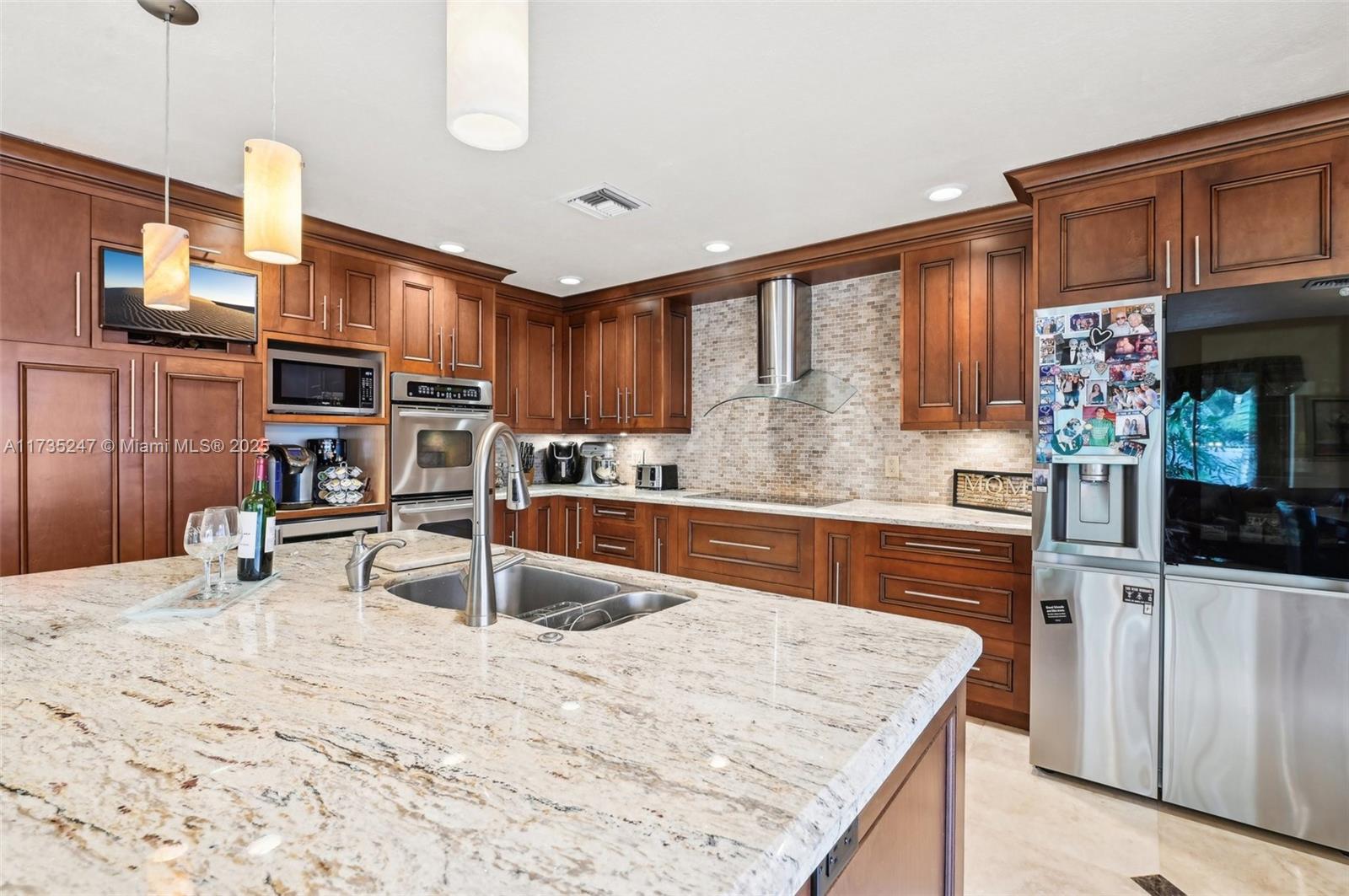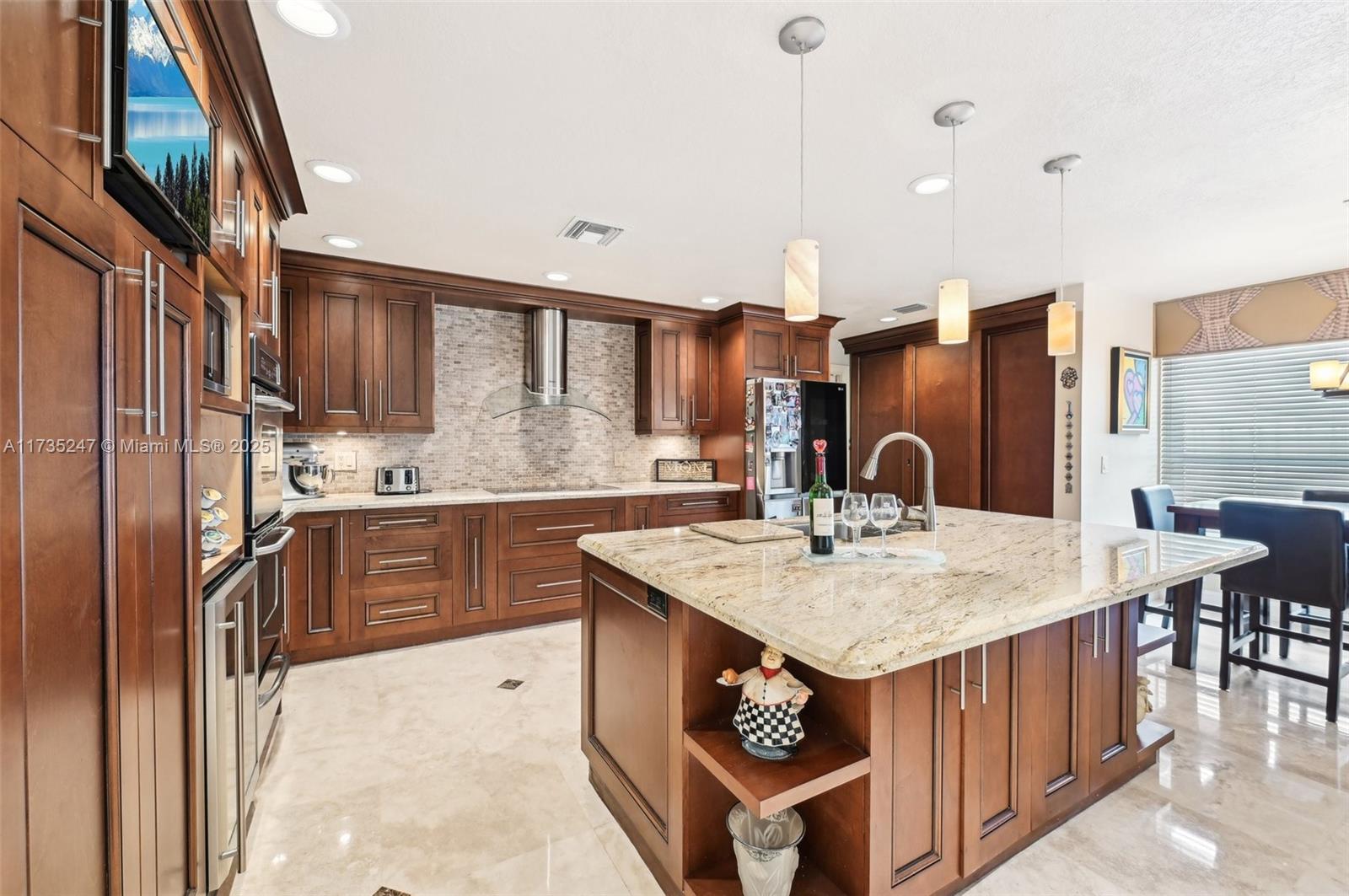 Welcome to this exceptional 5-bed, 3-bath located in the coveted community of Embassy Lakes ? The Isles. The first floor boasts marble tile, upgraded kitchen with large island and seating, top-of-the-line appliances and plenty of storage. The primary bedroom is located on the 1st floor with a spa-like bathroom including a double Jacuzzi tub, extra-large shower, and premium finishes. Outdoor tropical living features a travertine deck, pool with waterfall, gazebo, fruit trees and vegetable beds. Additional Features: 6-YEAR OLD ROOF, accordion shutters, electric car charger, freshly painted exterior Amenities include 24 hour manned gate, pool, pickleball, tennis, gym, newly renovated clubhouse, playgrounds, basketball. Zoned for A rated Schools & walking distance to houses of worship