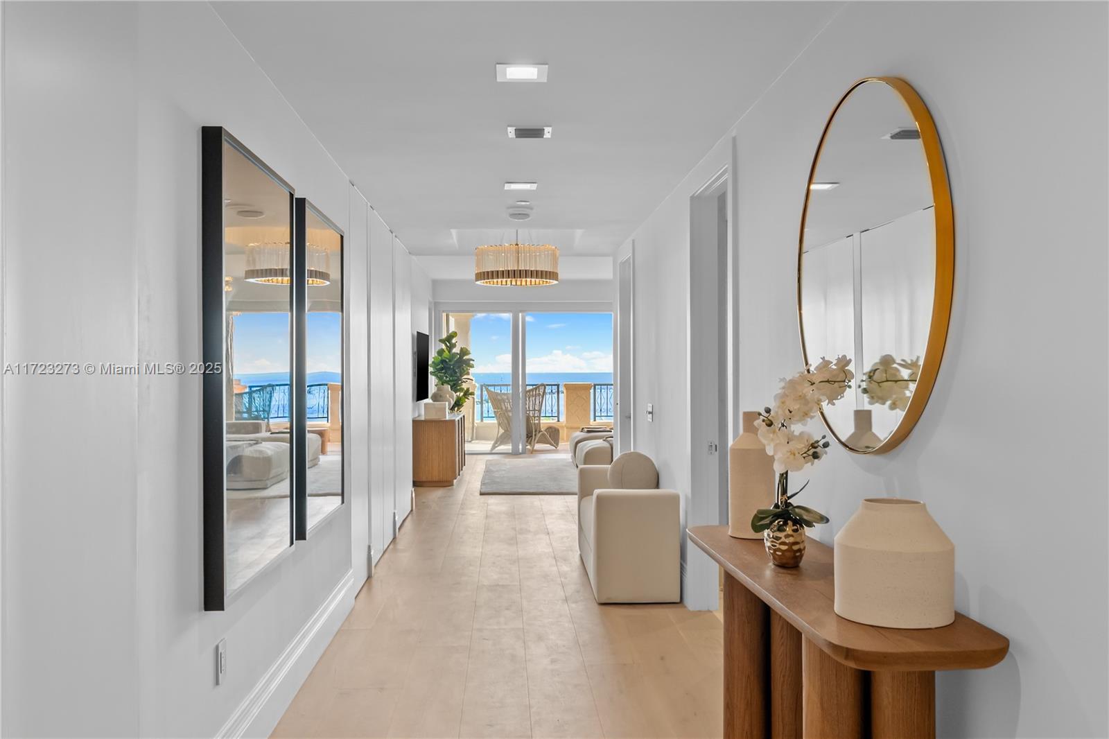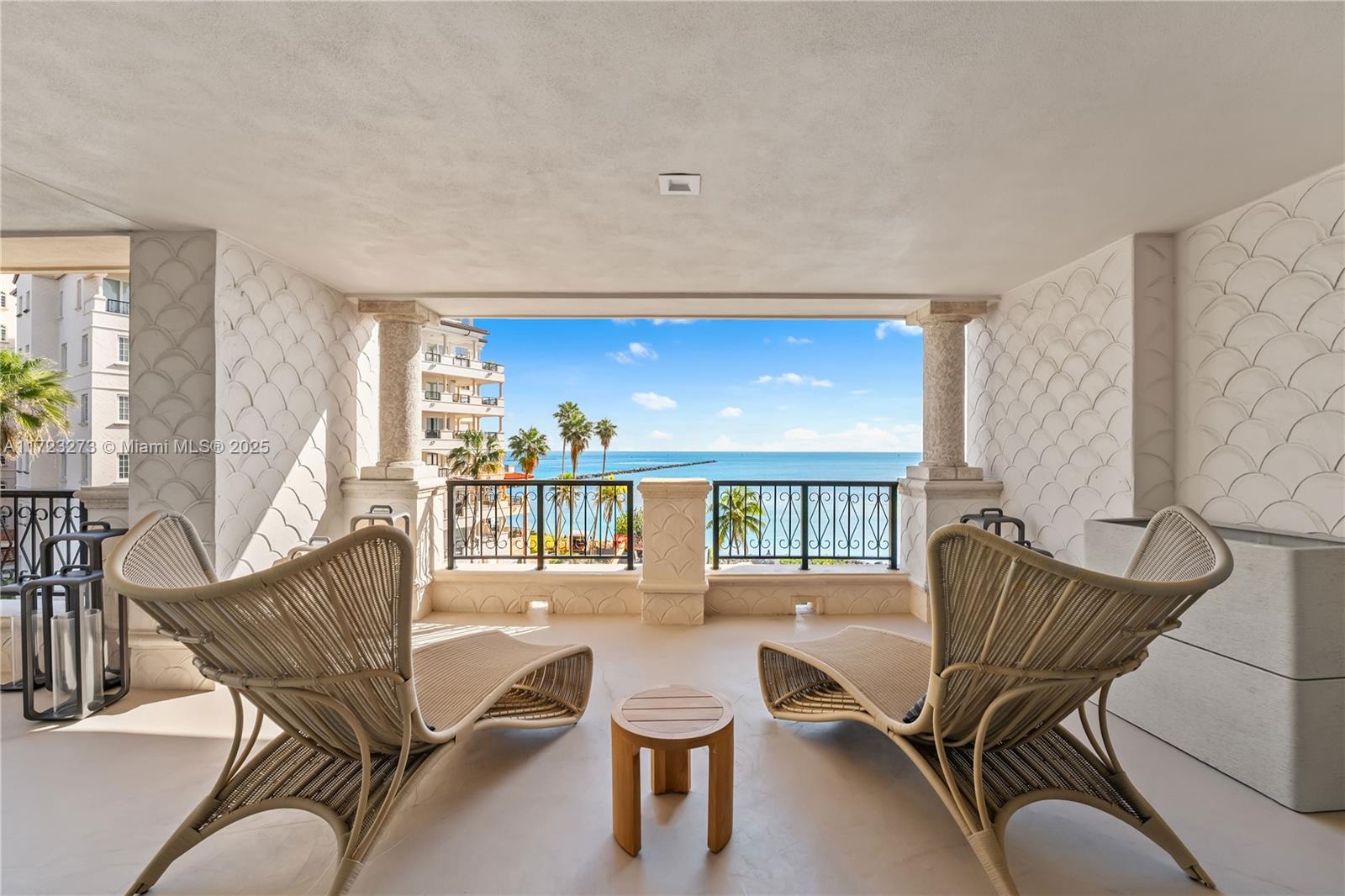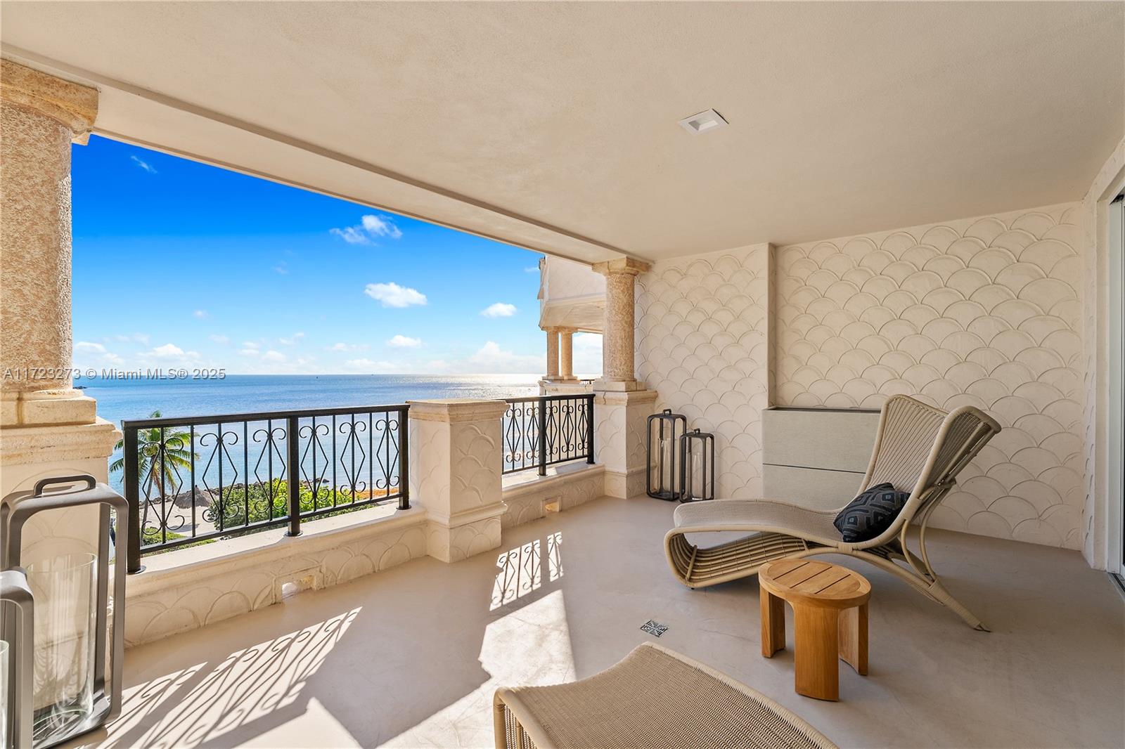 Unique luxury east oceanside unit from which you leisurely stroll from your home directly onto the beach and enjoy the ocean breeze. 3 bedrooms, 4.5 bath, this 3,959 square feet unit had renovation completed January 2025, featuring modern kitchen with viola marble counter tops, a rolling center island, new bathrooms, new closets, waterworks brass door fixtures, new French oak floors, new lighting fixtures. Open plan living and dining areas framed by expansive walls of glass leading to wraparound vast 1,721 sq foot terrace with wide panoramic views of Miami Beach + Atlantic Ocean. Principal suite boasts sitting area, dual walk-in closets + dual spa baths. Turn key, furniture included so move in ready! Enjoy 5-star Fisher Island amenities or sit by your pool listening to ocean waves roll in.