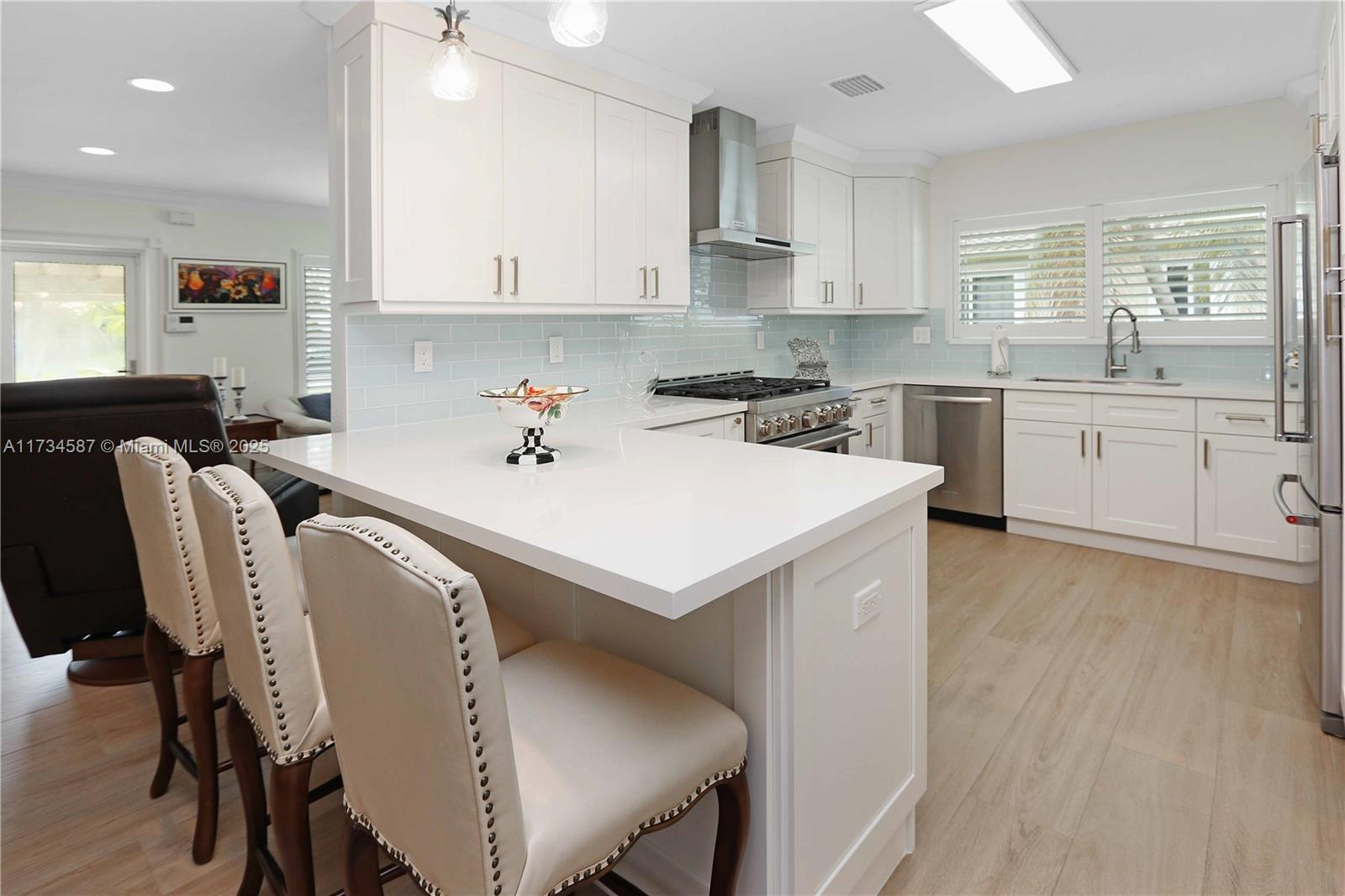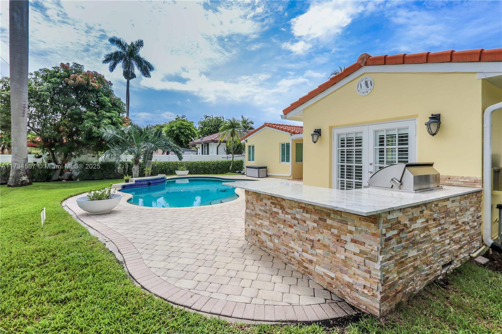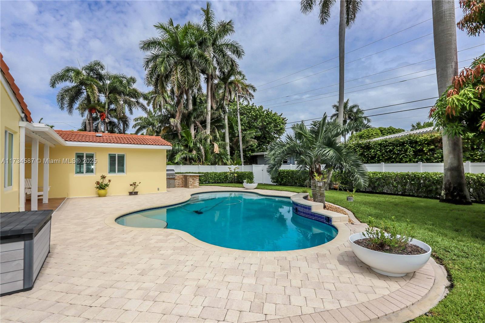 Stunning home in the heart of Hollywood Lakes. Beautifully renovated 3 bed, 2 bath, plus den/office or 4th bed. 2 houses away from South lake. Gorgeous new kitchen w/white shaker cabinets, quartz countertops, 36"gas range w/6 burners, SS appliances & more. Porcelain wood-like tile throughout & travertine in 2 bedrooms, custom closets, impact windows & doors, tankless gas water heater. Laundry room has new washer & gas dryer, quartz countertop, & built in cabinets. Enjoy a tranquil oasis w/saltwater pool & soothing waterfall, outdoor kitchen w/gas grill, fenced backyard with luscious landscaping. Circular paver driveway & pavers surrounding pool, tile roof, covered front & back porch, freshly painted, landscaping lighting, & sprinkler system. This meticulously maintained home has it all!