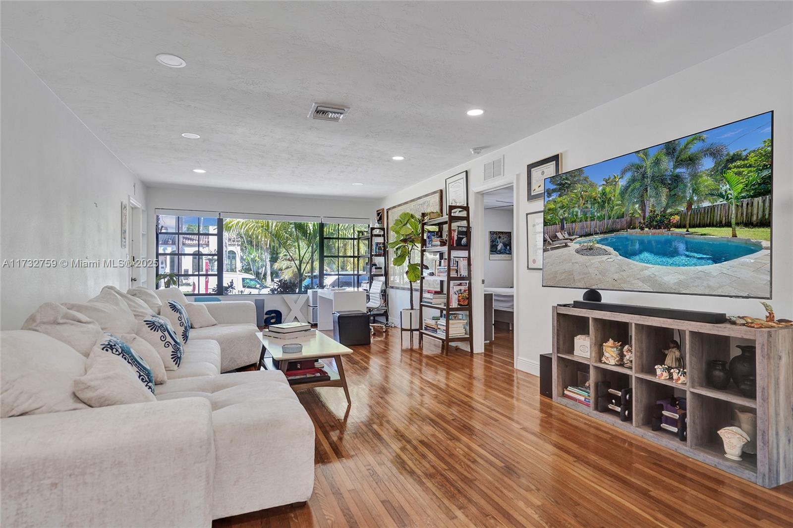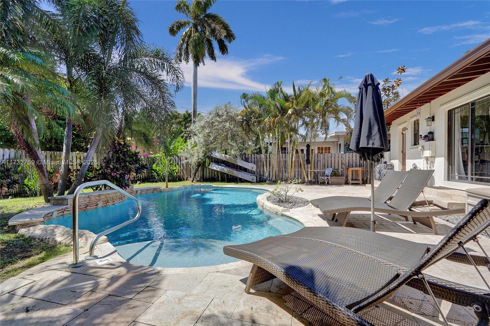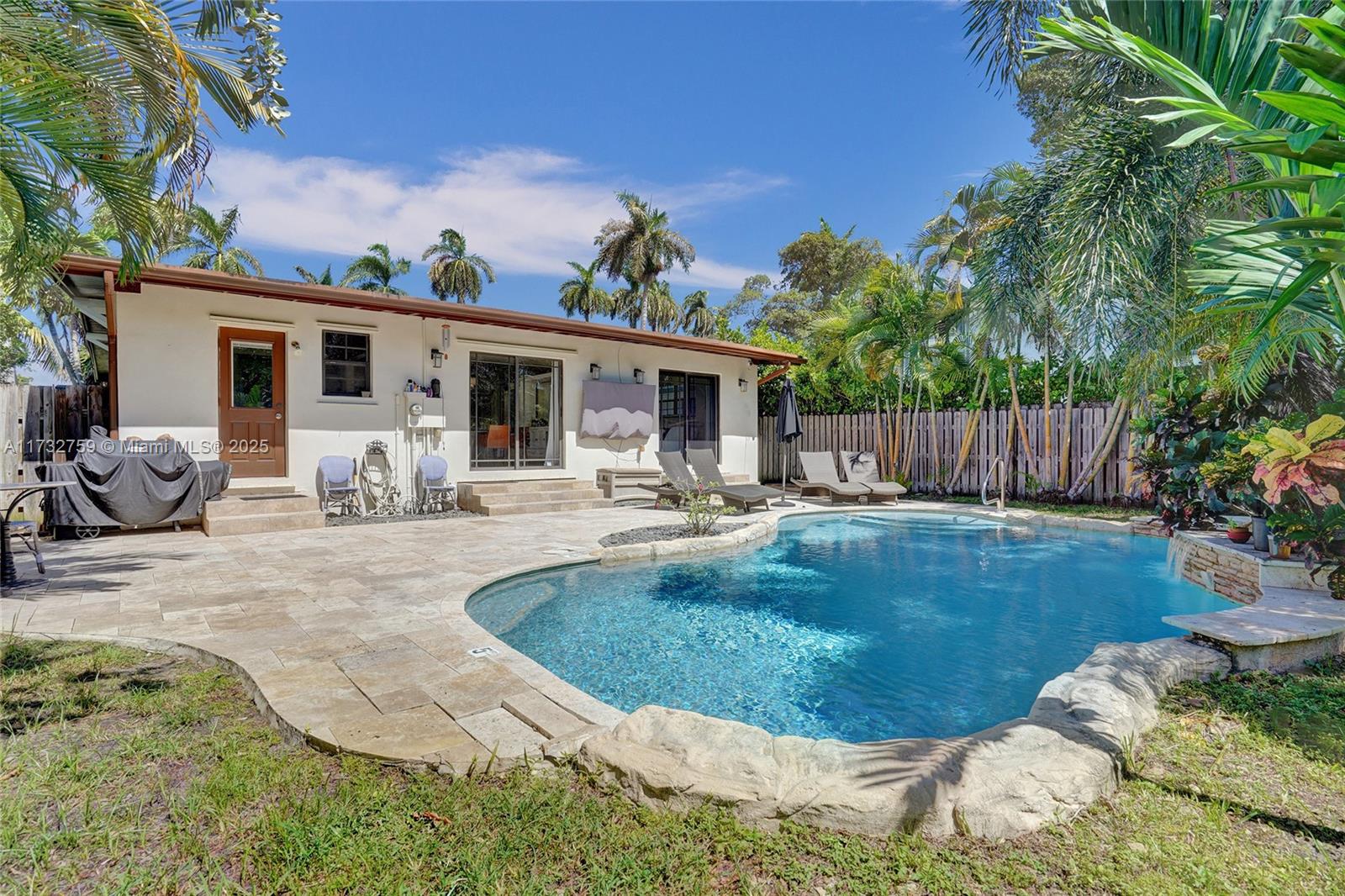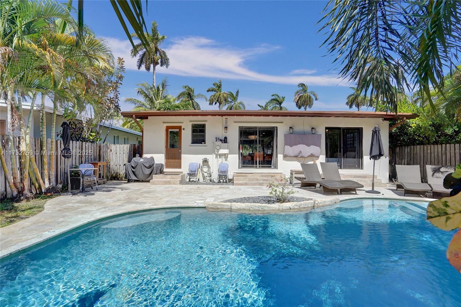 Welcome to spectacular turnkey pool home in prime location. Perfect for primary residence, second home, or vacation rental. Unique designers touch. Beautiful 3 bed, 3 bath features desirable open concept floor plan w/ natural light throughout and beautifully restored hardwood floor. 2 bedrooms have their own the ensuite. Located on coveted royal palm tree lined Tyler St. with circular driveway. Sliding glass doors lead to backyard that boasts a gorgeous saltwater pool w/ heater, safety fence, travertine deck, and lush tropical landscaping. New granite countertops and backsplash. Glass shower enclosures. New pool pump and HVAC 2023.