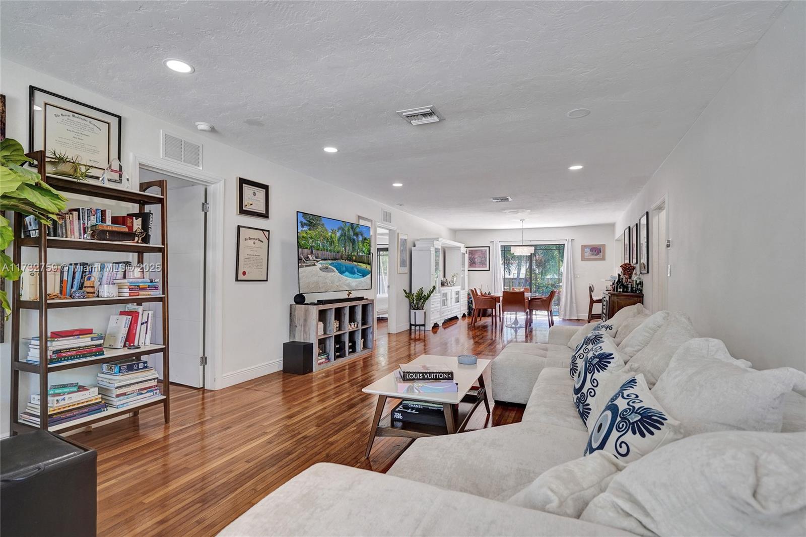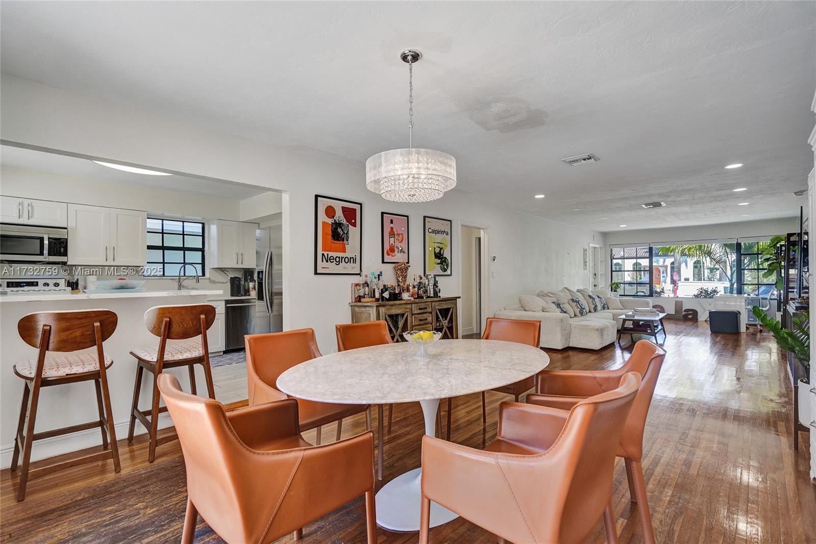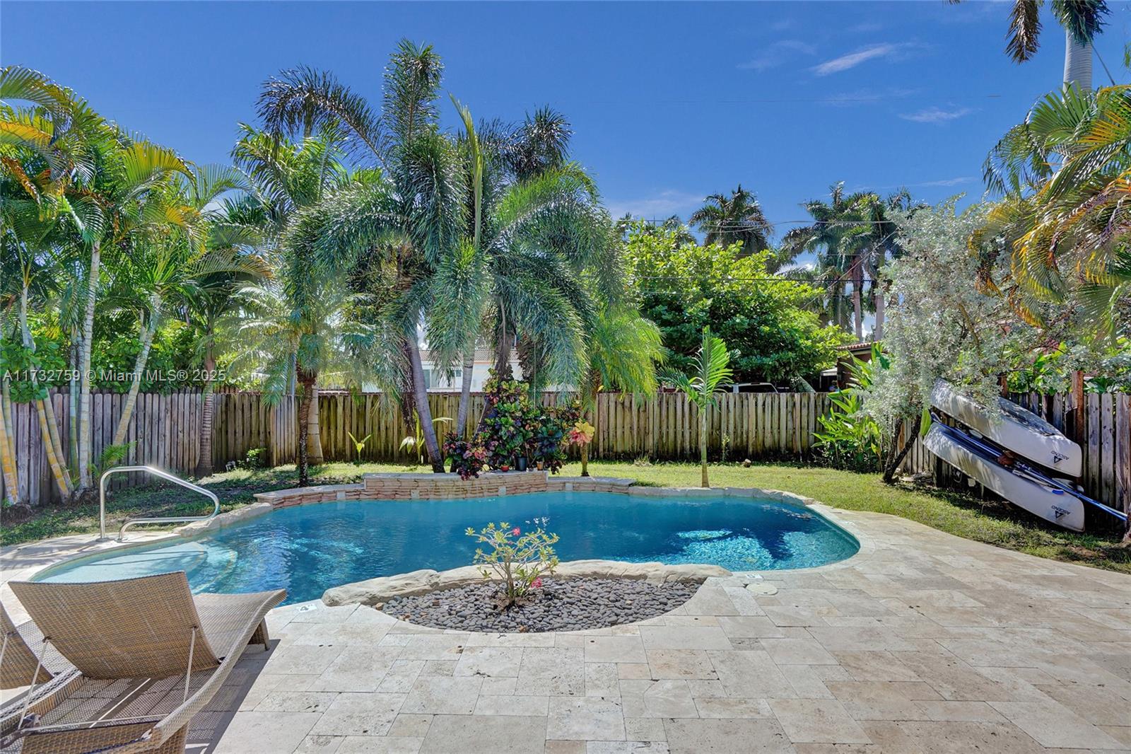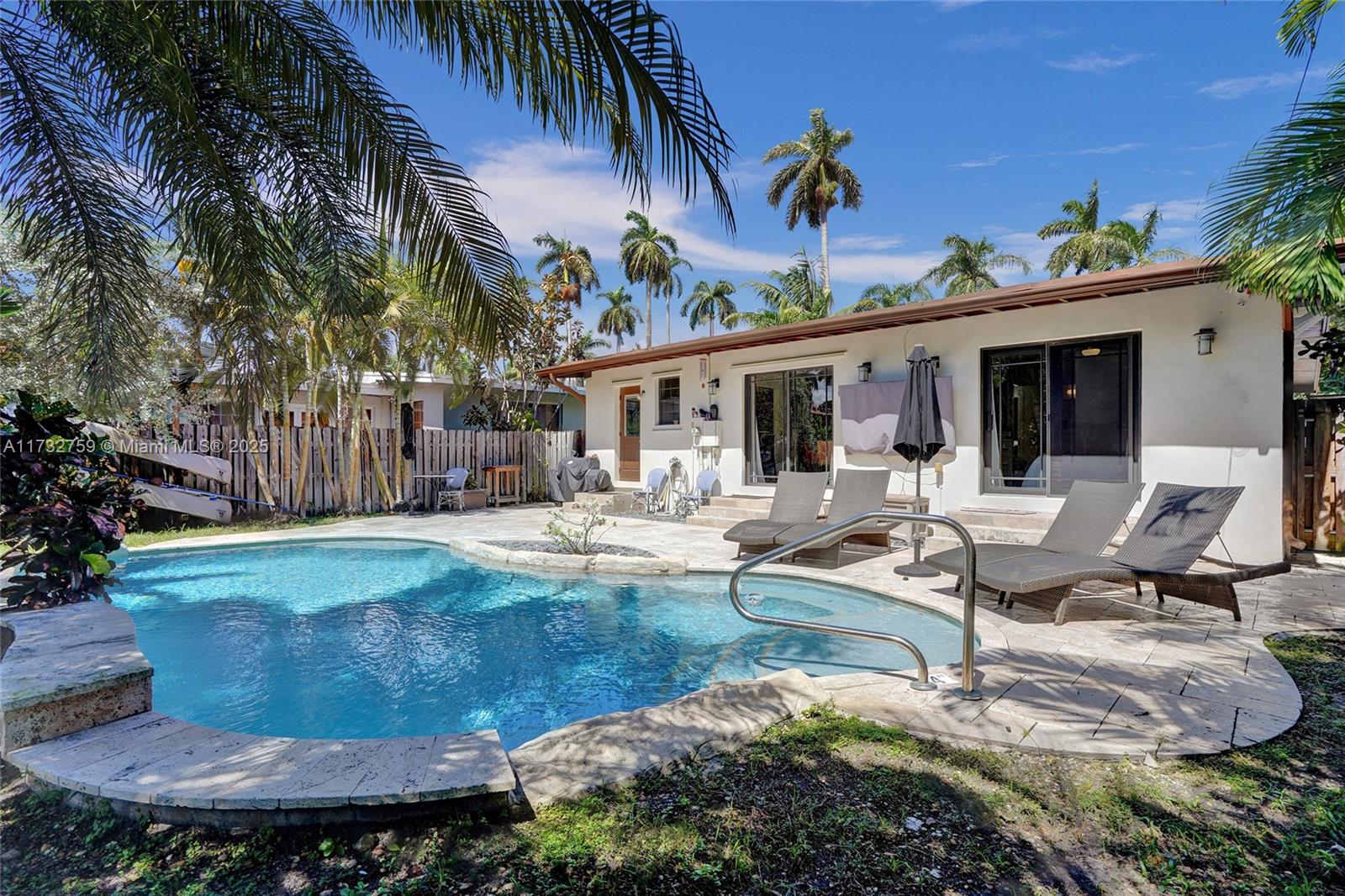 Welcome to spectacular turnkey pool home in prime location. Perfect for primary residence, second home, or vacation rental. Unique designers touch. Beautiful 3 bed, 3 bath features desirable open concept floor plan w/ natural light throughout and beautifully restored hardwood floor. 2 bedrooms have their own the ensuite. Located on coveted royal palm tree lined Tyler St. with circular driveway. Sliding glass doors lead to backyard that boasts a gorgeous saltwater pool w/ heater, safety fence, travertine deck, and lush tropical landscaping. New granite countertops and backsplash. Glass shower enclosures. New pool pump and HVAC 2023.