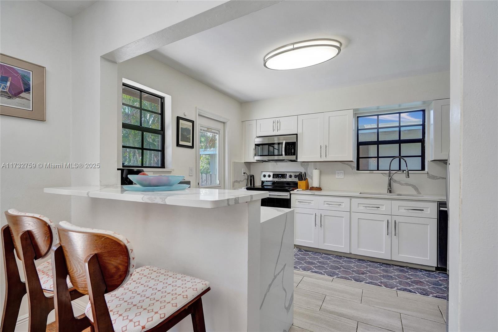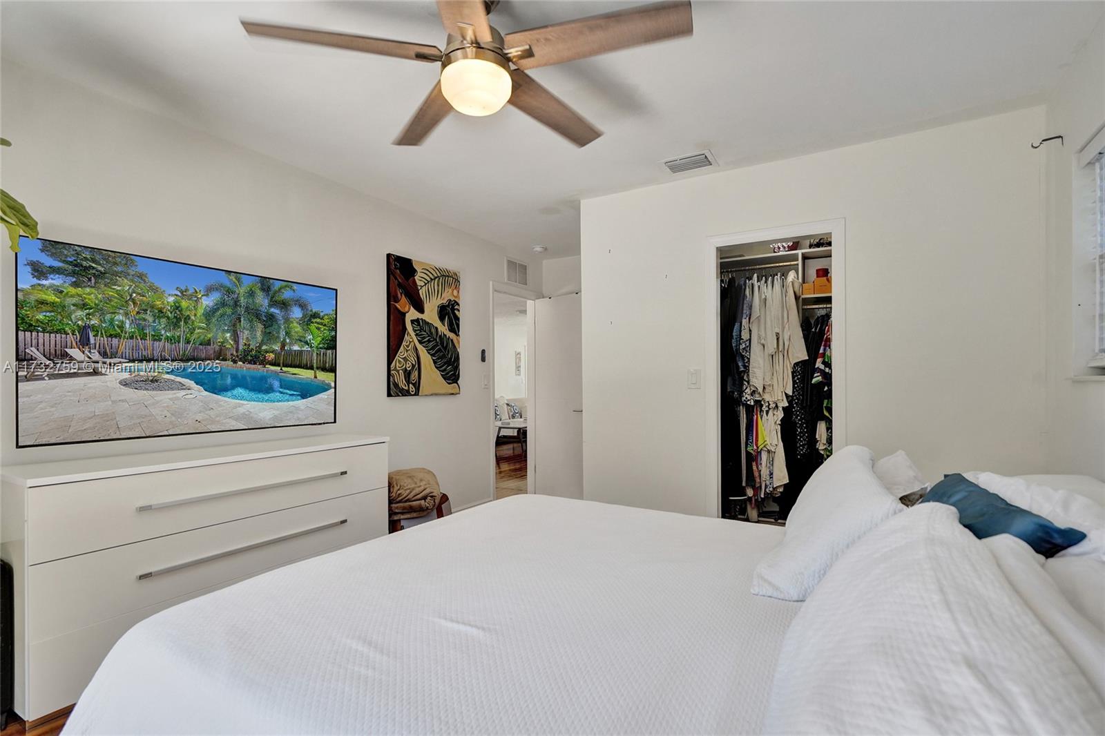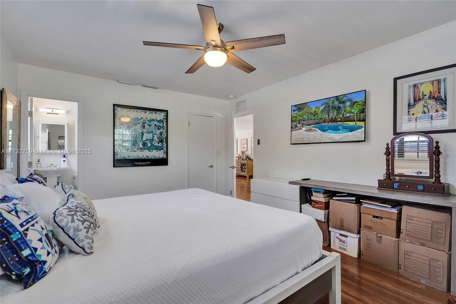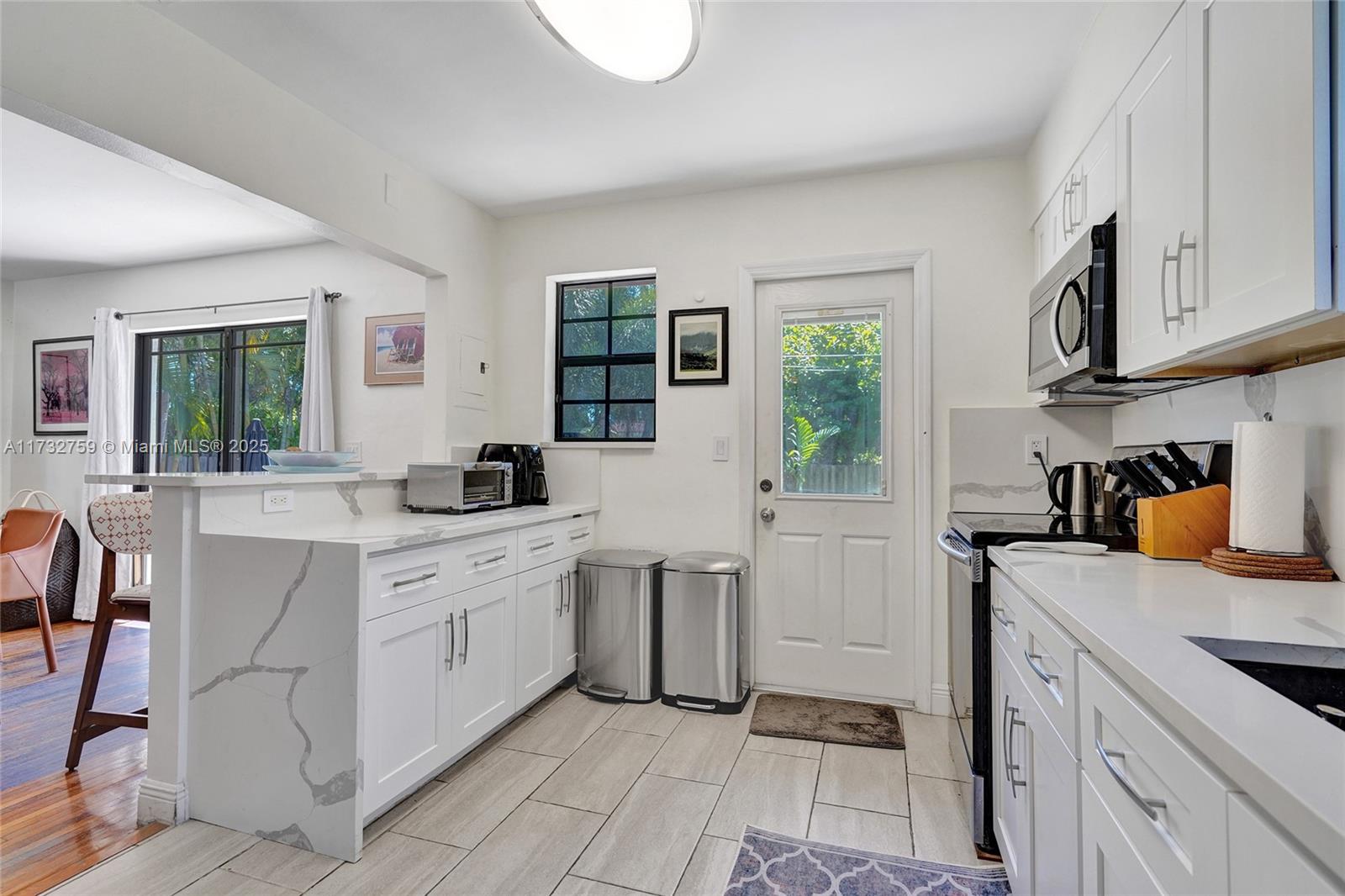 Welcome to spectacular turnkey pool home in prime location. Perfect for primary residence, second home, or vacation rental. Unique designers touch. Beautiful 3 bed, 3 bath features desirable open concept floor plan w/ natural light throughout and beautifully restored hardwood floor. 2 bedrooms have their own the ensuite. Located on coveted royal palm tree lined Tyler St. with circular driveway. Sliding glass doors lead to backyard that boasts a gorgeous saltwater pool w/ heater, safety fence, travertine deck, and lush tropical landscaping. New granite countertops and backsplash. Glass shower enclosures. New pool pump and HVAC 2023.